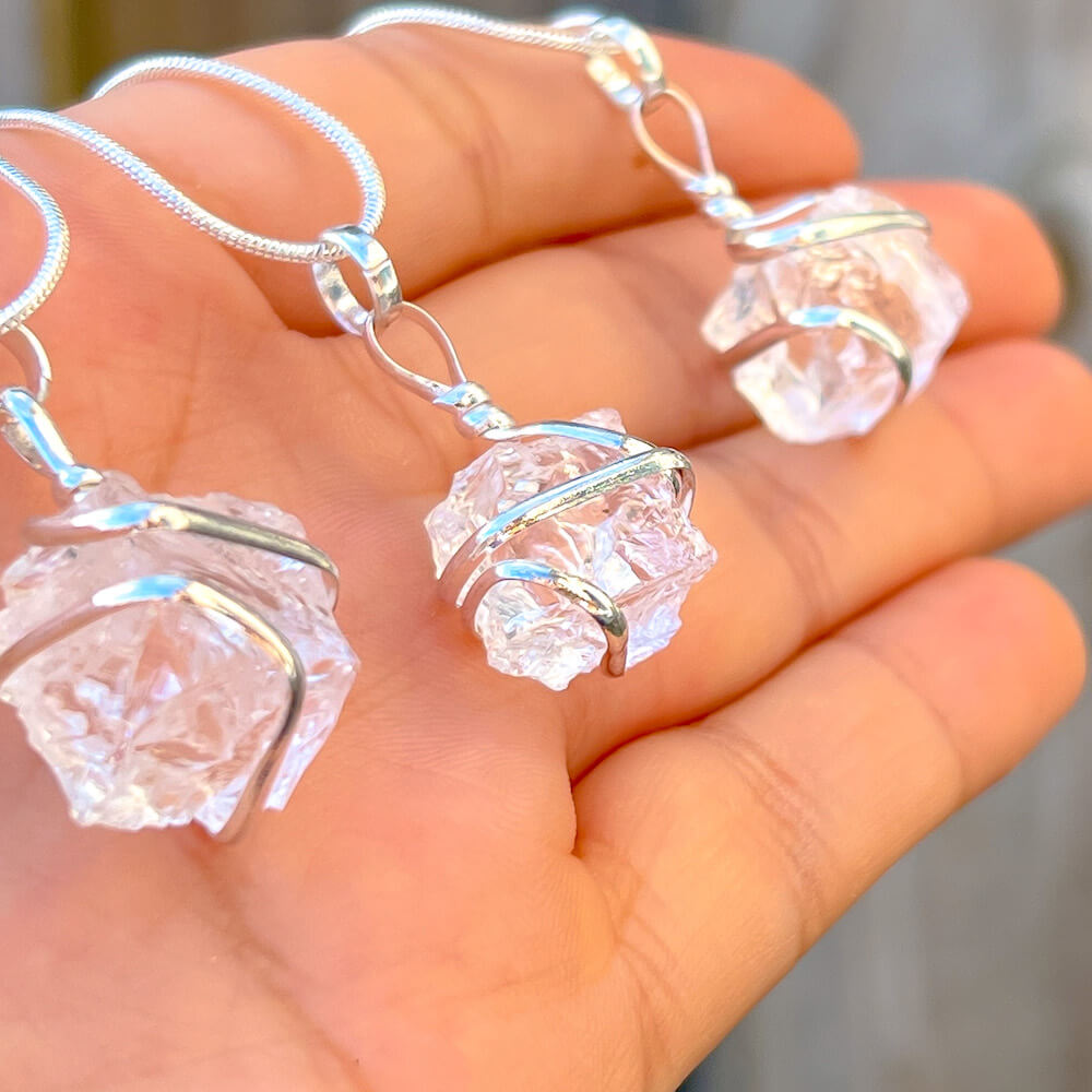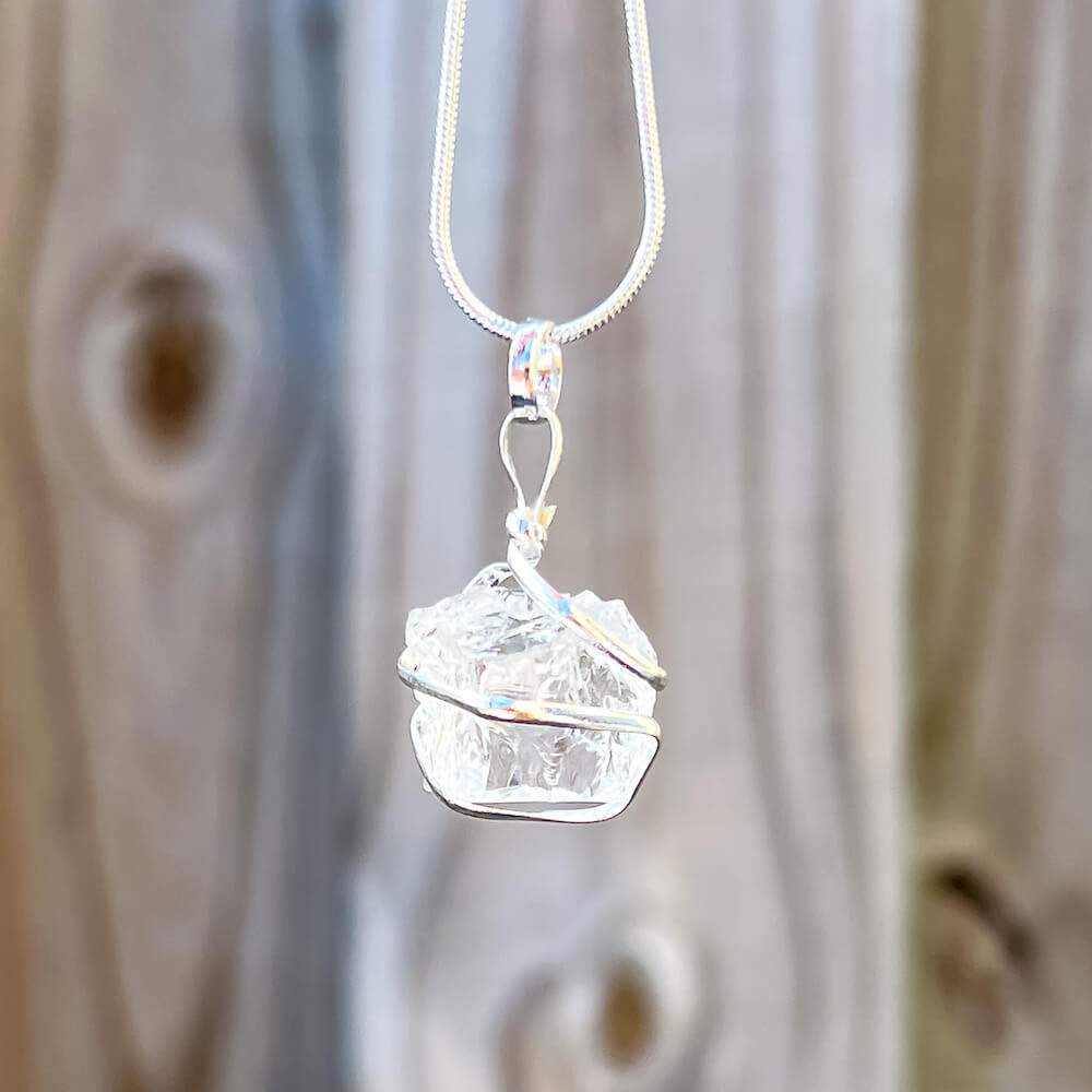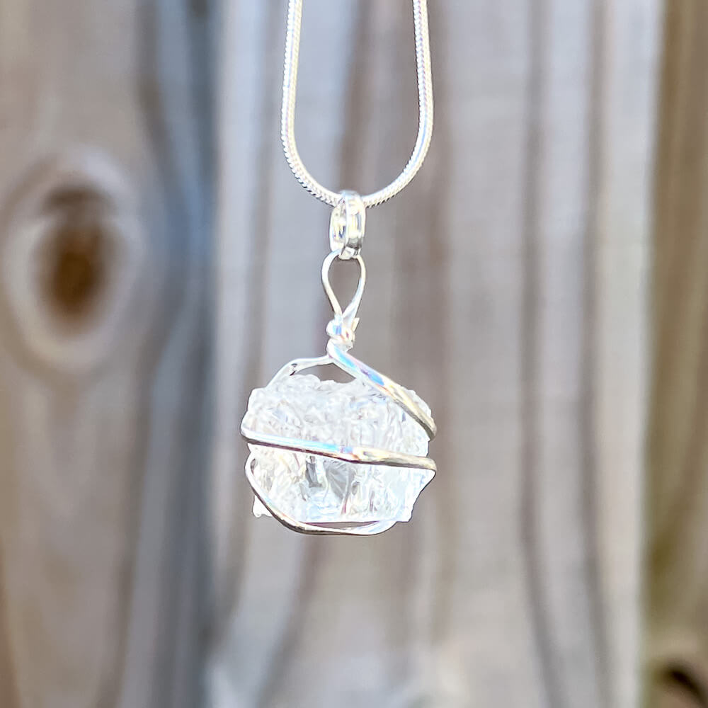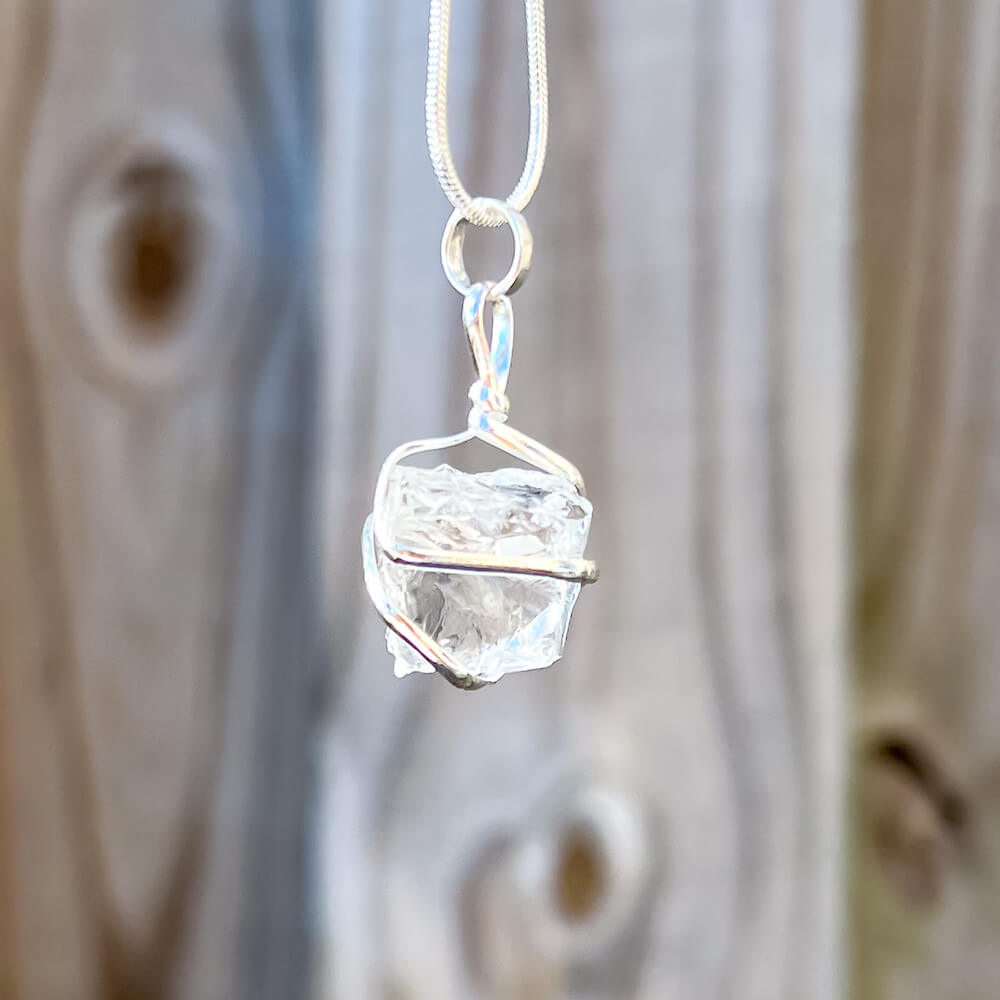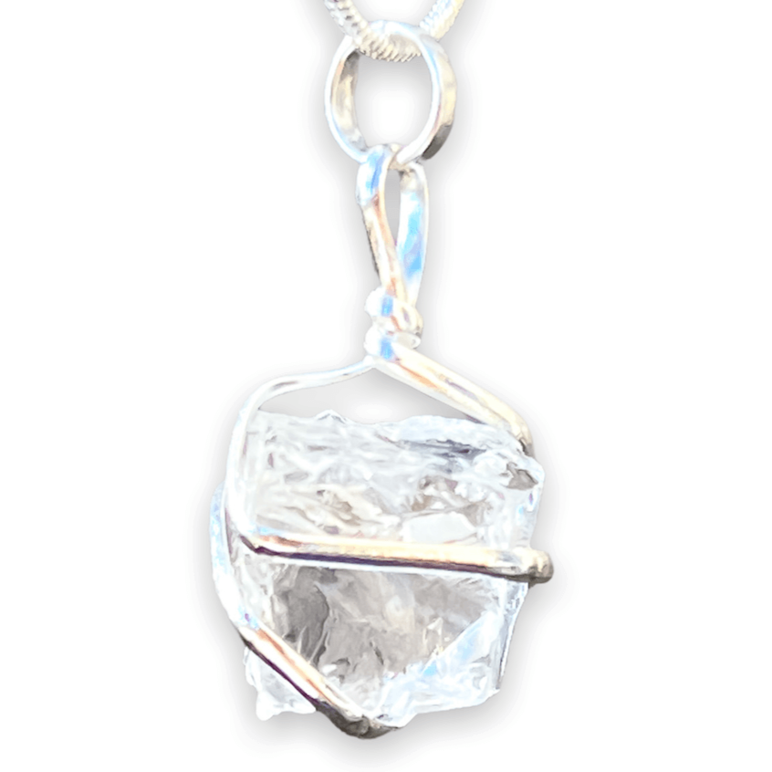 - Unpolished Authentic Clear Quartz Stone wrapped in silver
