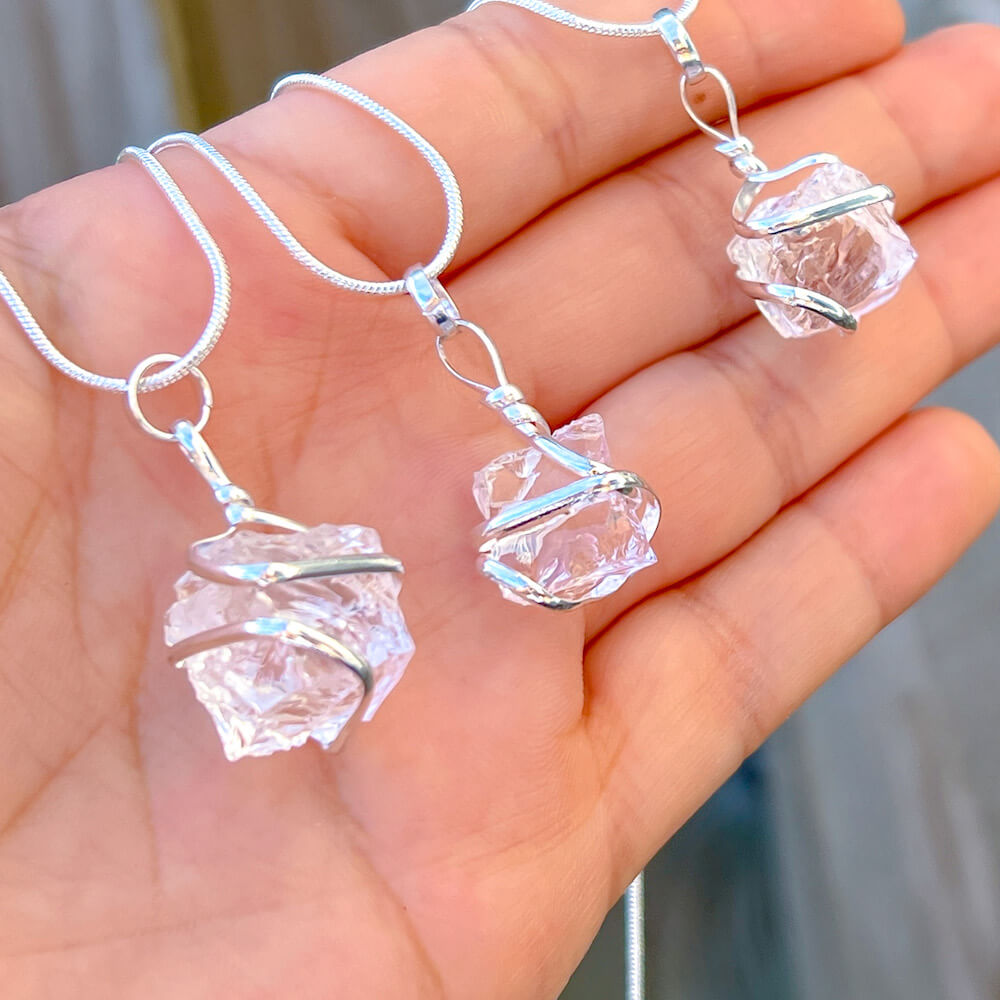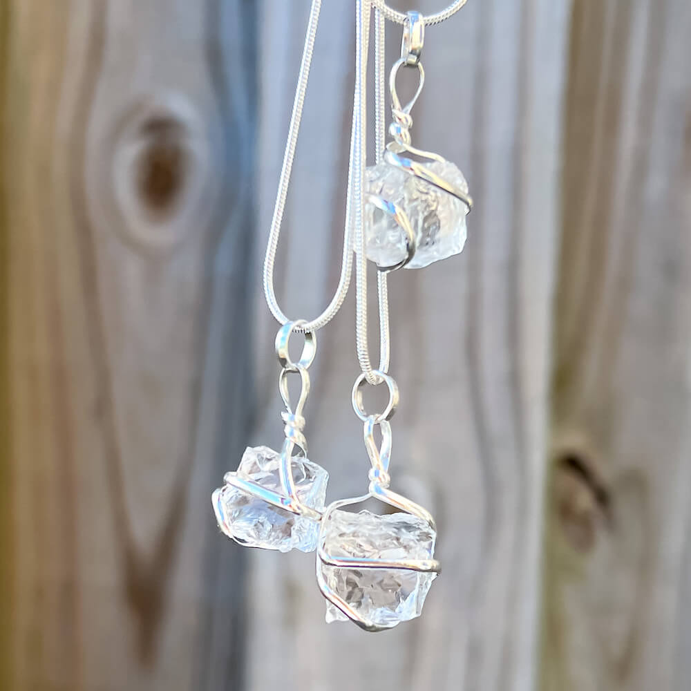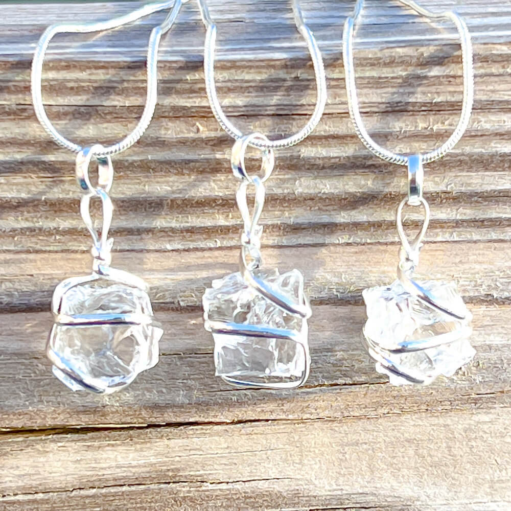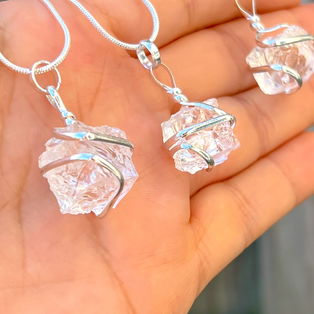 - Unpolished Authentic Clear Quartz Stone wrapped in silver