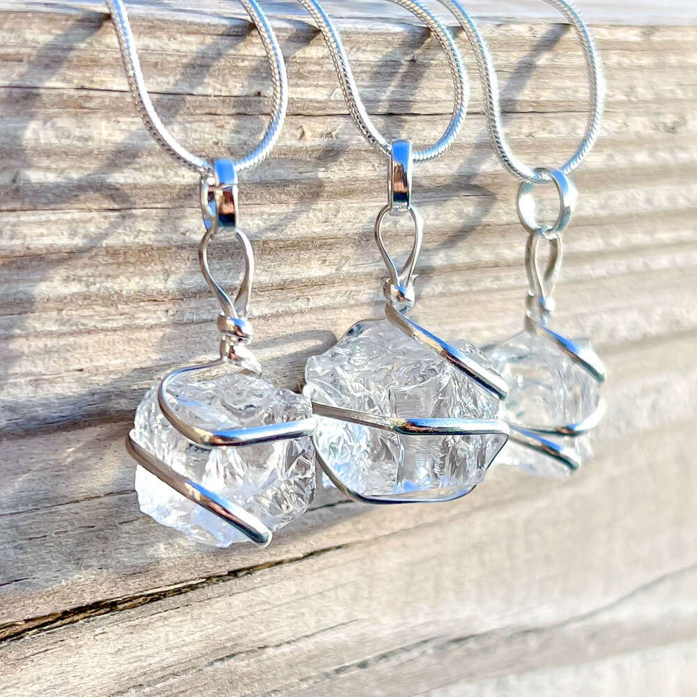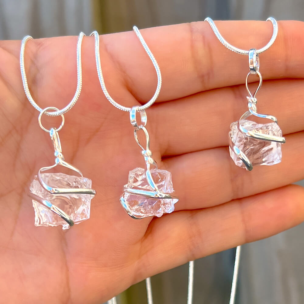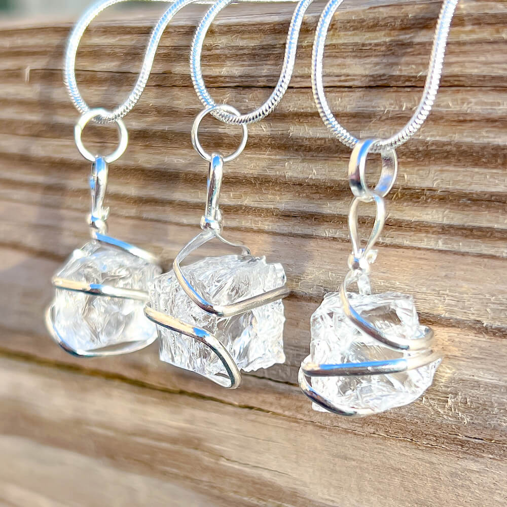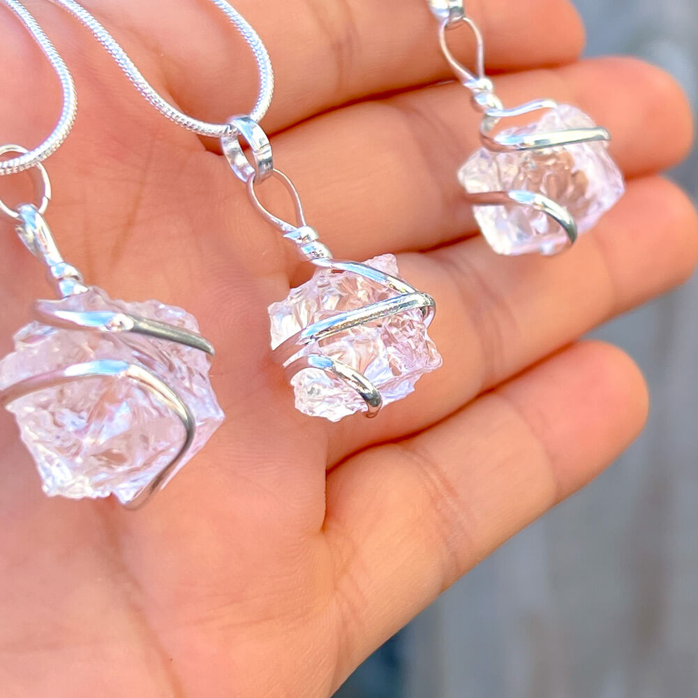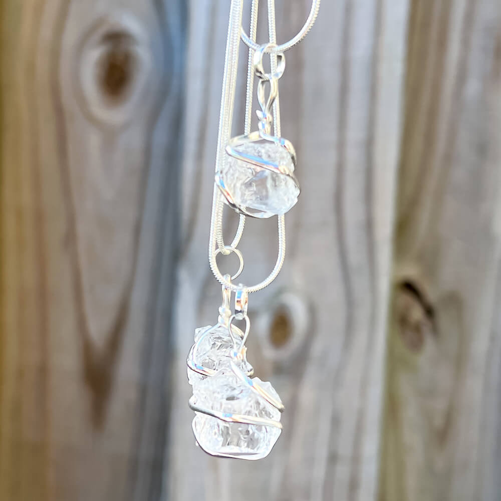 - Unpolished Authentic Clear Quartz Stone wrapped in silver
