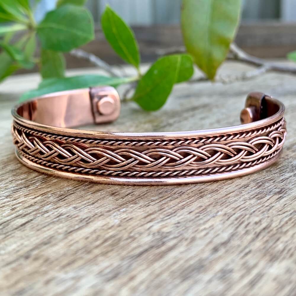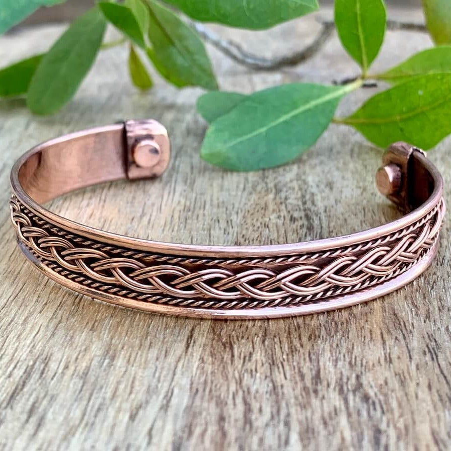 Wearing copper bracelets has been considered to have therapeutic effects on the human body. There are inscriptions and several recorded versions of the usage of copper in this regard from as early as the Egyptian civilization. A pure copper bracelet has for long been considered to have invisible properties that ease inflammation and pain. Unless there is no allergy to the metal, wearing a pure copper bracelet or ring can work wonders to the energy levels.