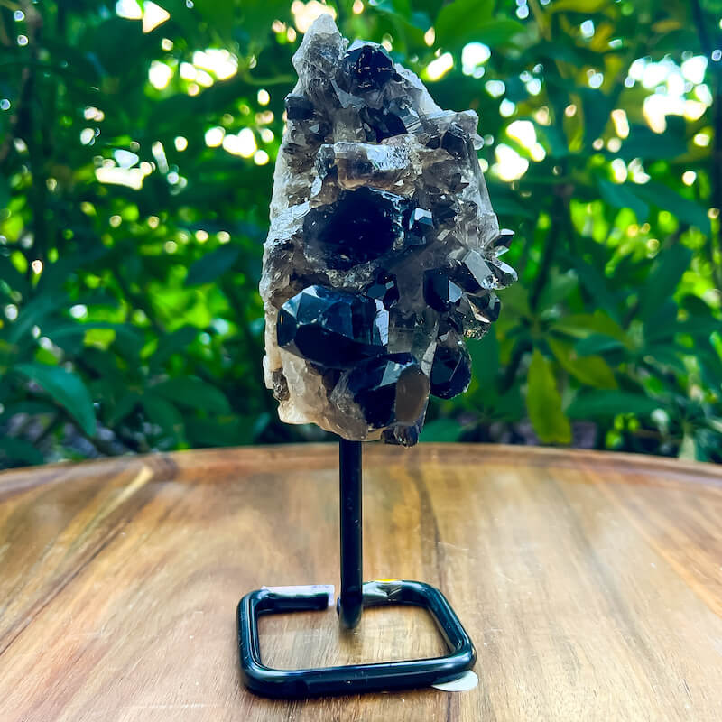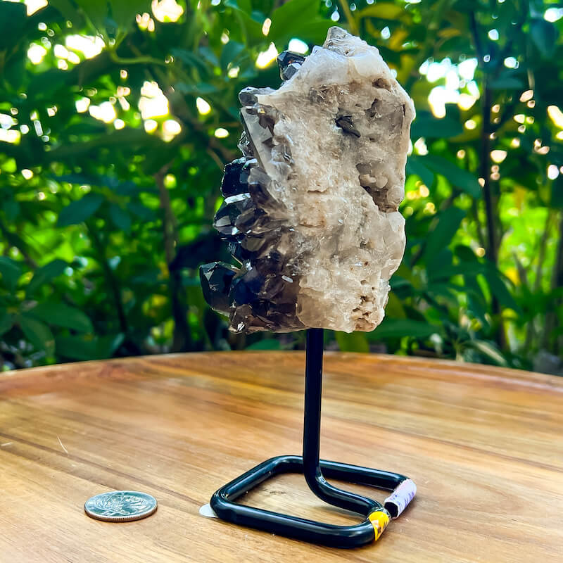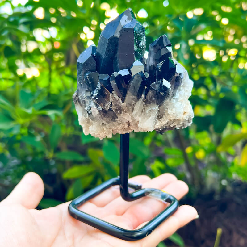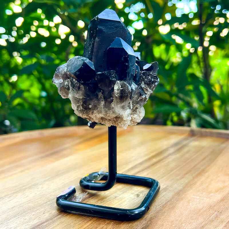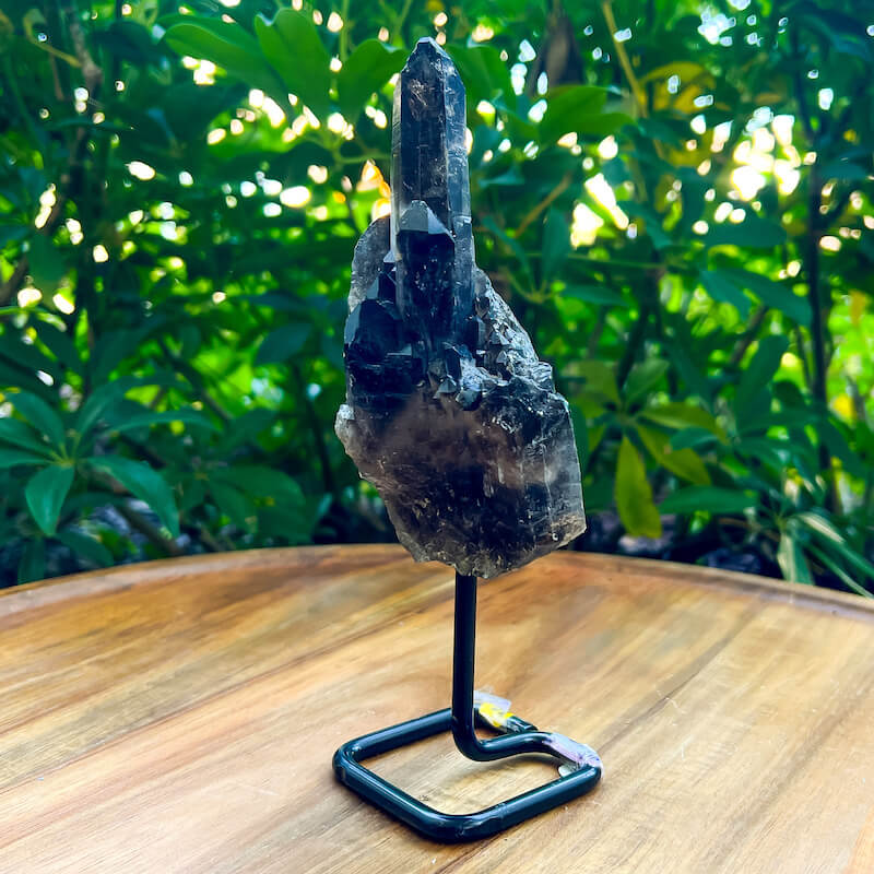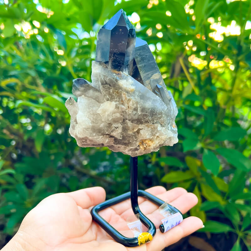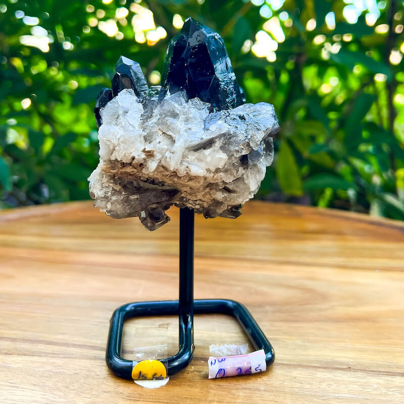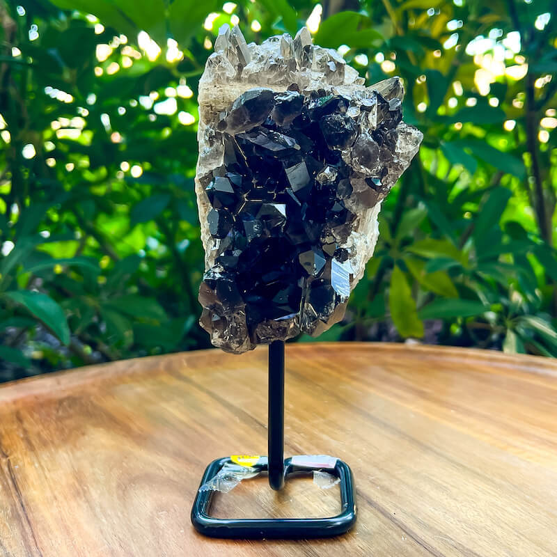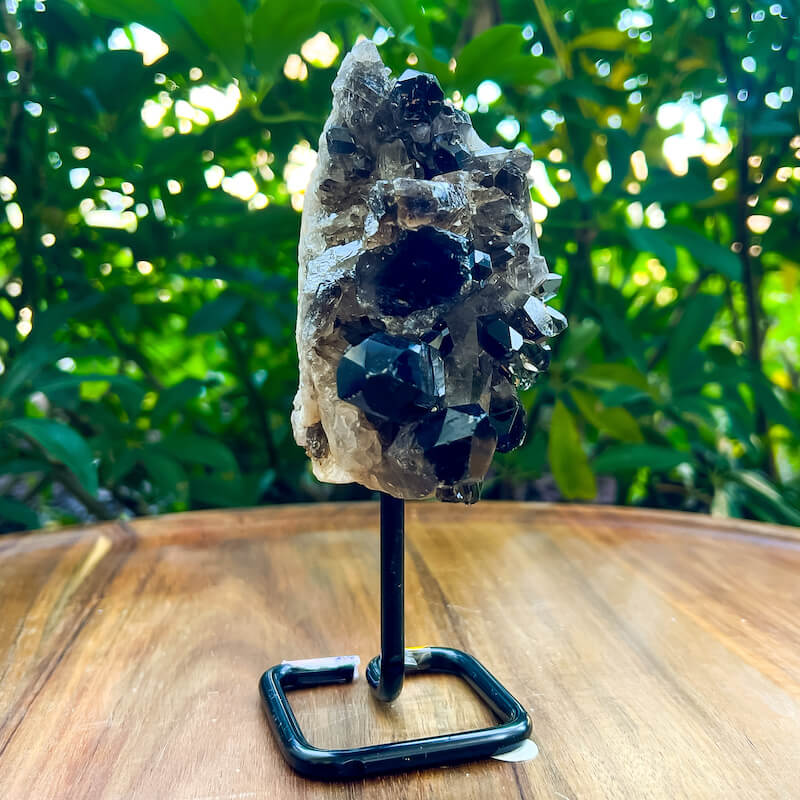These Smoky Quartz on a stand are a rustic beauty, that will fit your minimalist lifestyle. A spiritual piece that emits incredible energy. This crystal is very grounding and helps in balancing energy. It is thought to aid in concentration and to clear your mind of clutter. By stabilizing your energy, it helps to overcome negativity.