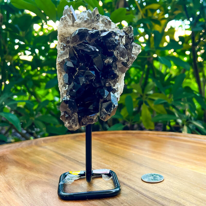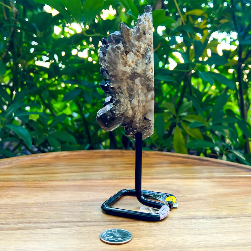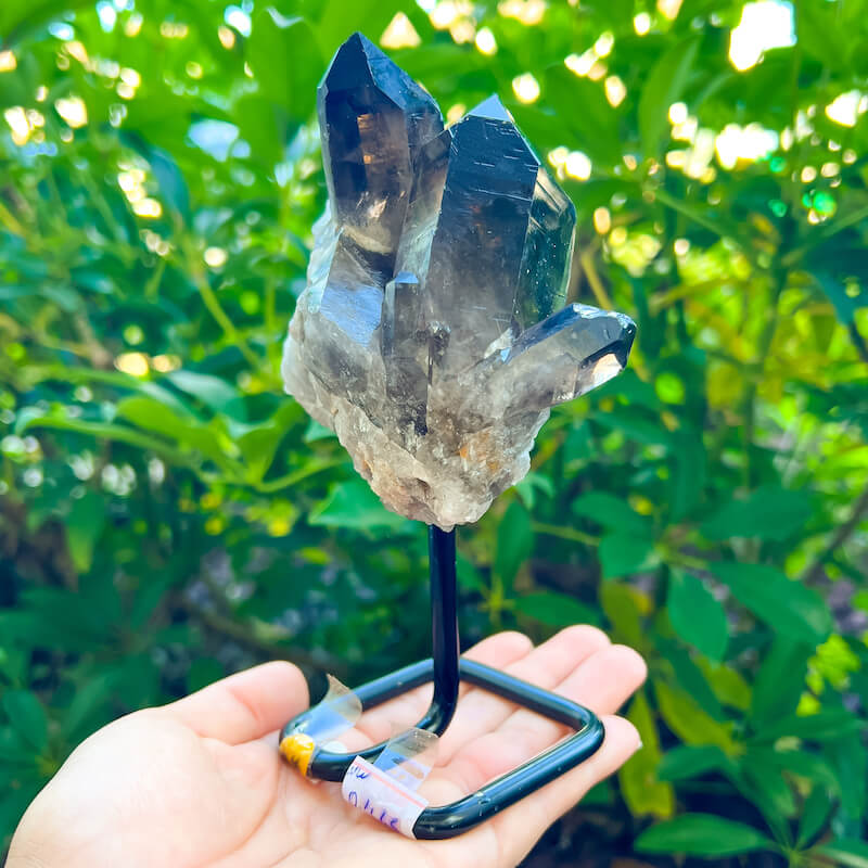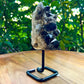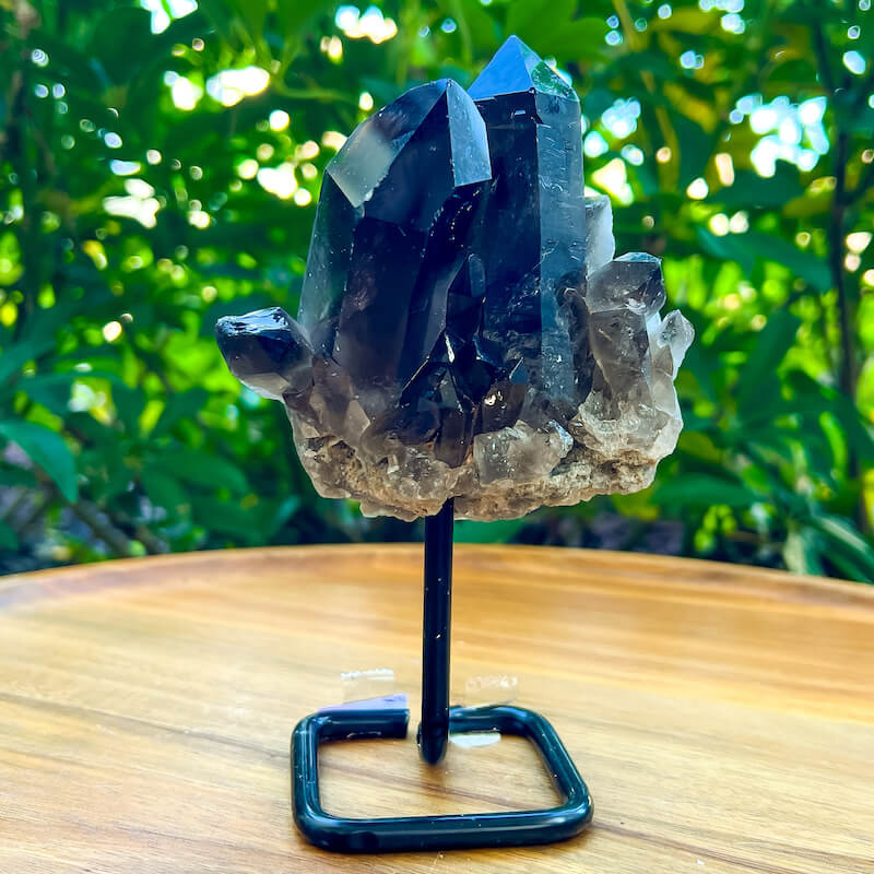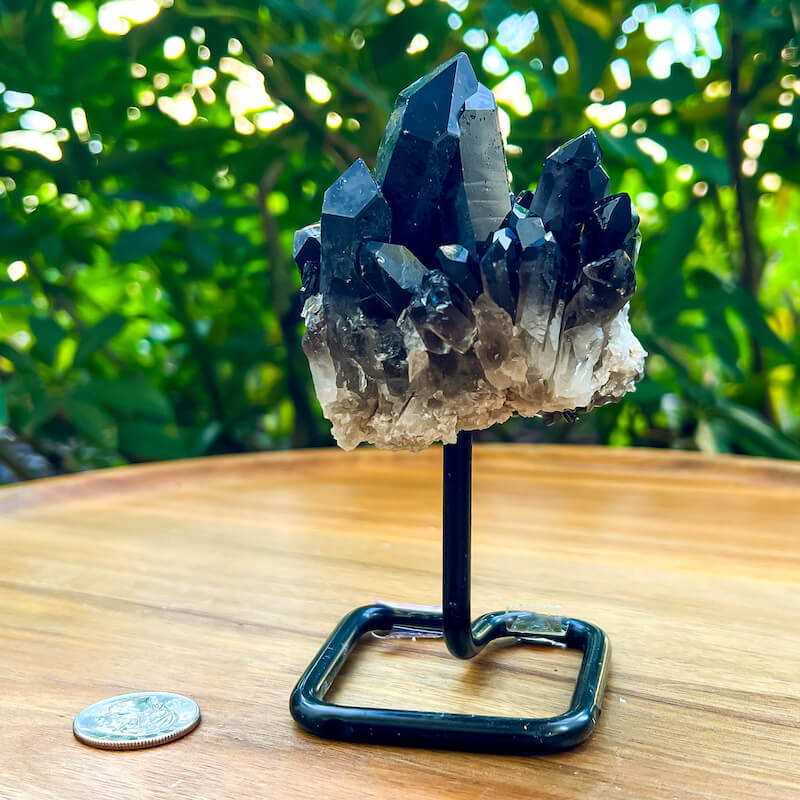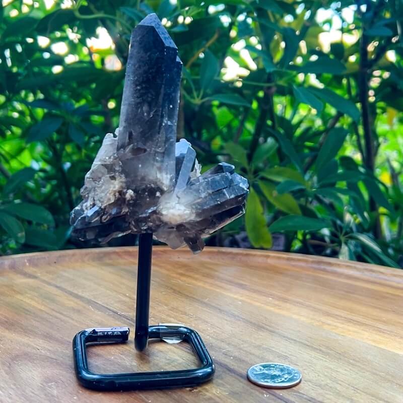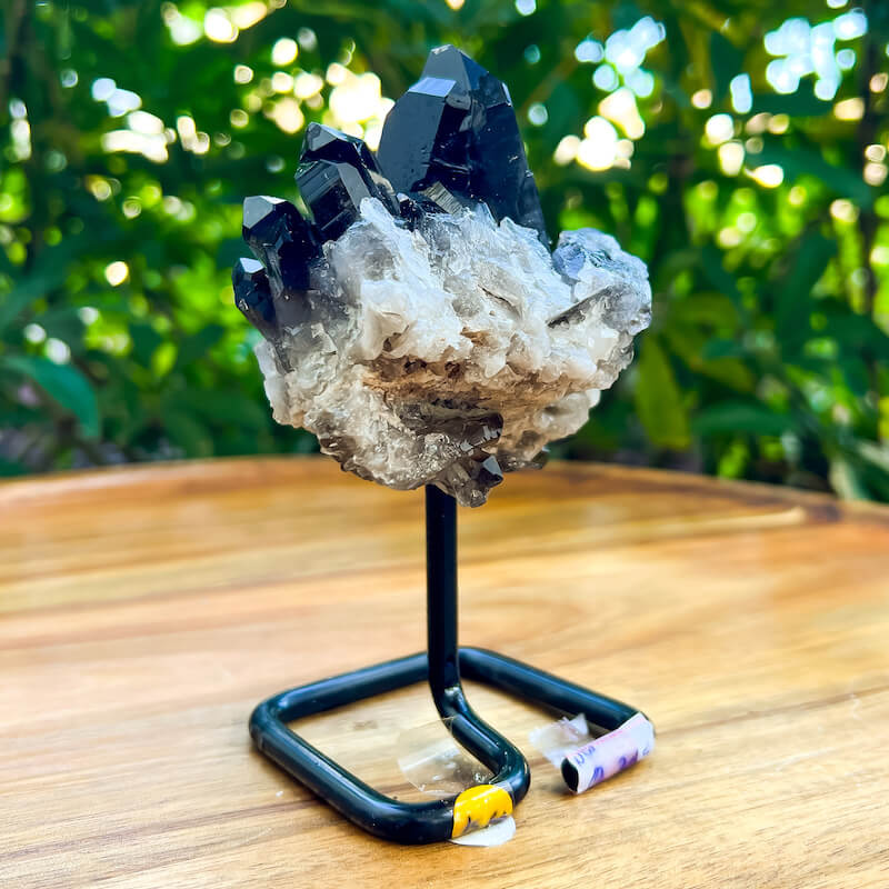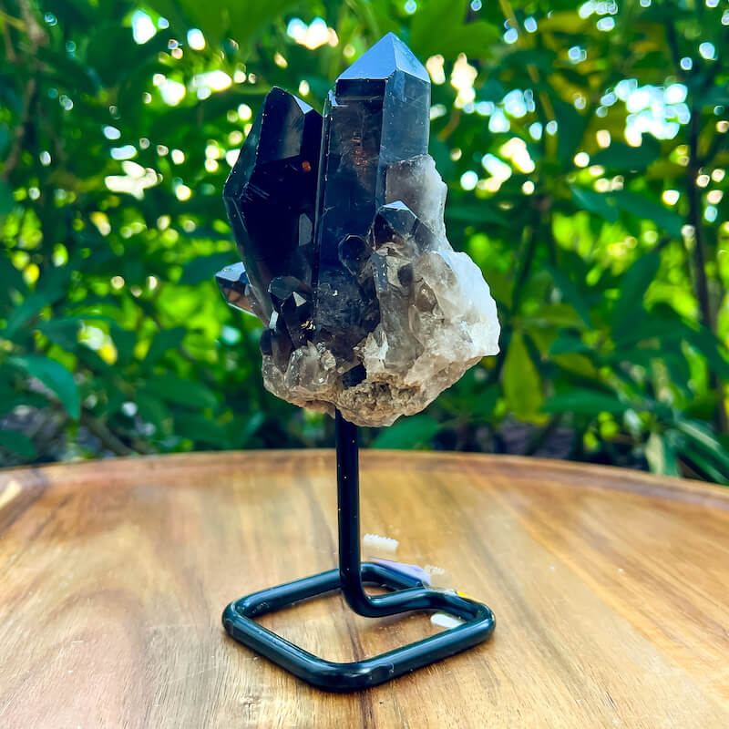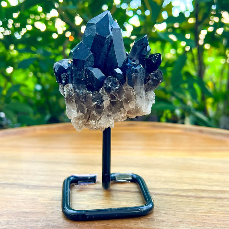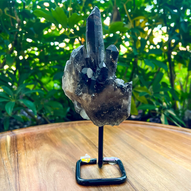 These Smoky Quartz on a stand are a rustic beauty, that will fit your minimalist lifestyle. A spiritual piece that emits incredible energy. This crystal is very grounding and helps in balancing energy. It is thought to aid in concentration and to clear your mind of clutter. By stabilizing your energy, it helps to overcome negativity.