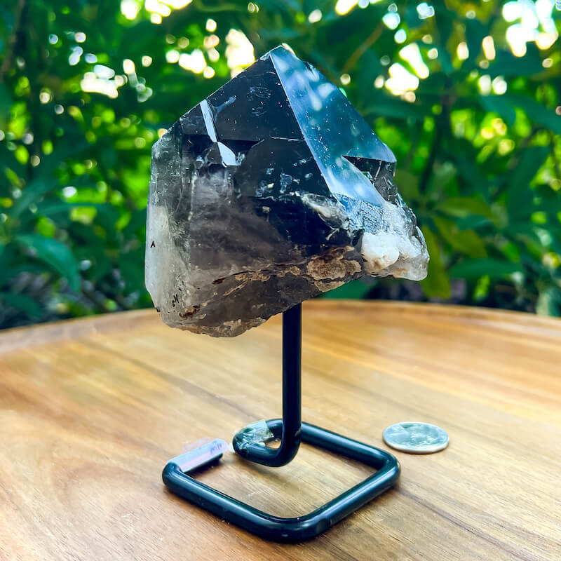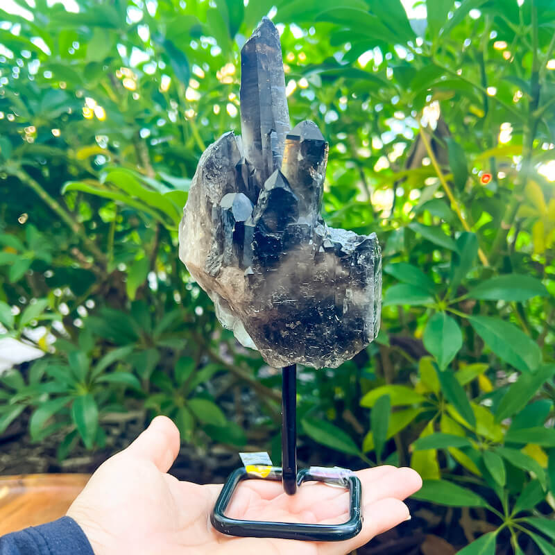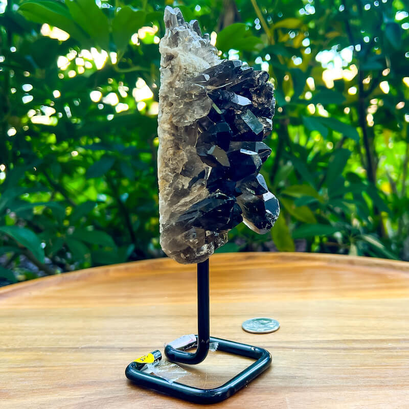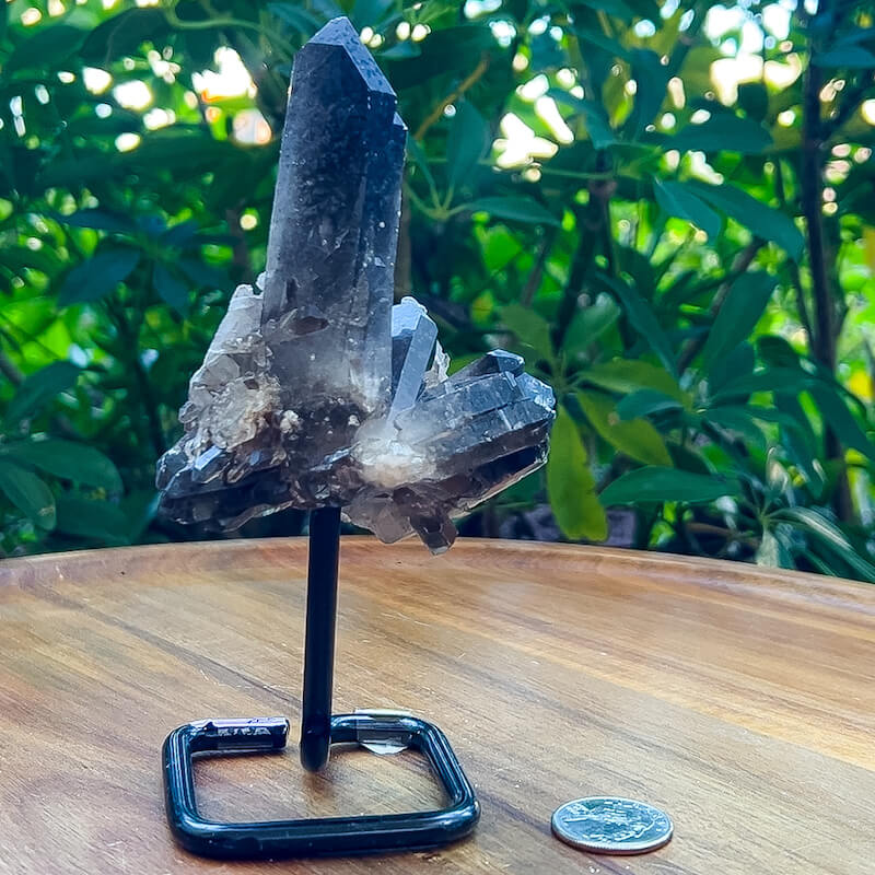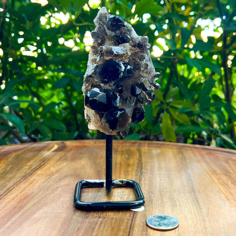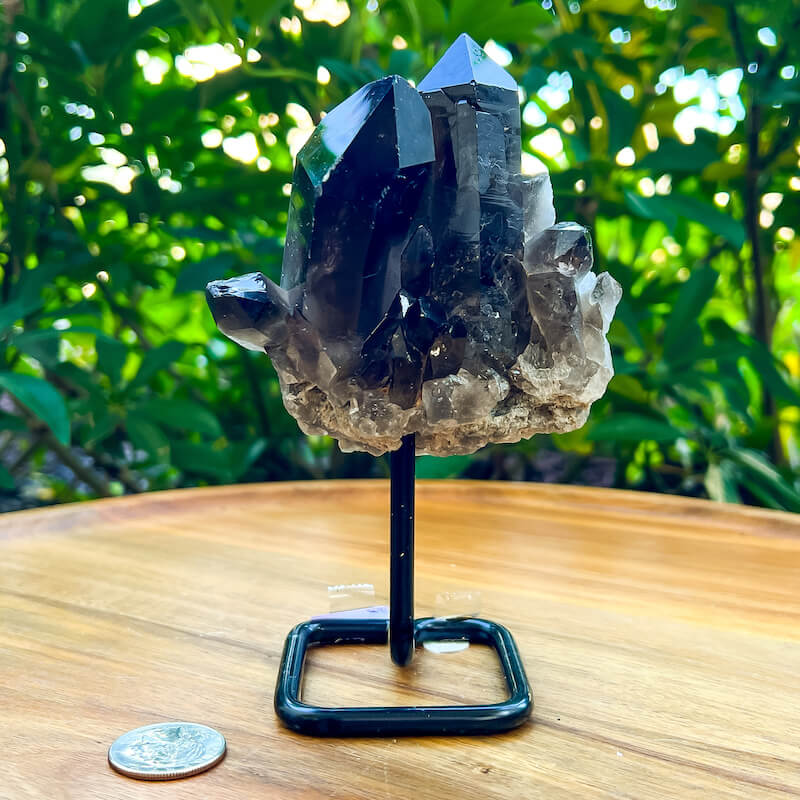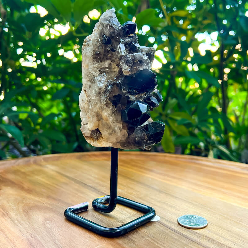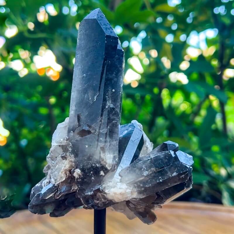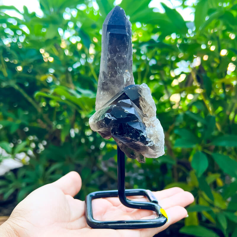 These Smoky Quartz on a stand are a rustic beauty, that will fit your minimalist lifestyle. A spiritual piece that emits incredible energy. This crystal is very grounding and helps in balancing energy. It is thought to aid in concentration and to clear your mind of clutter. By stabilizing your energy, it helps to overcome negativity.