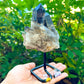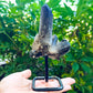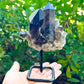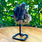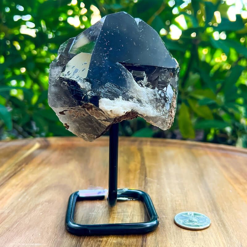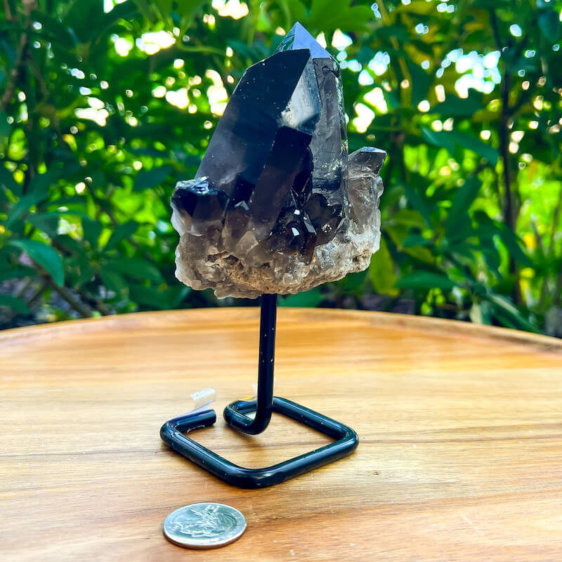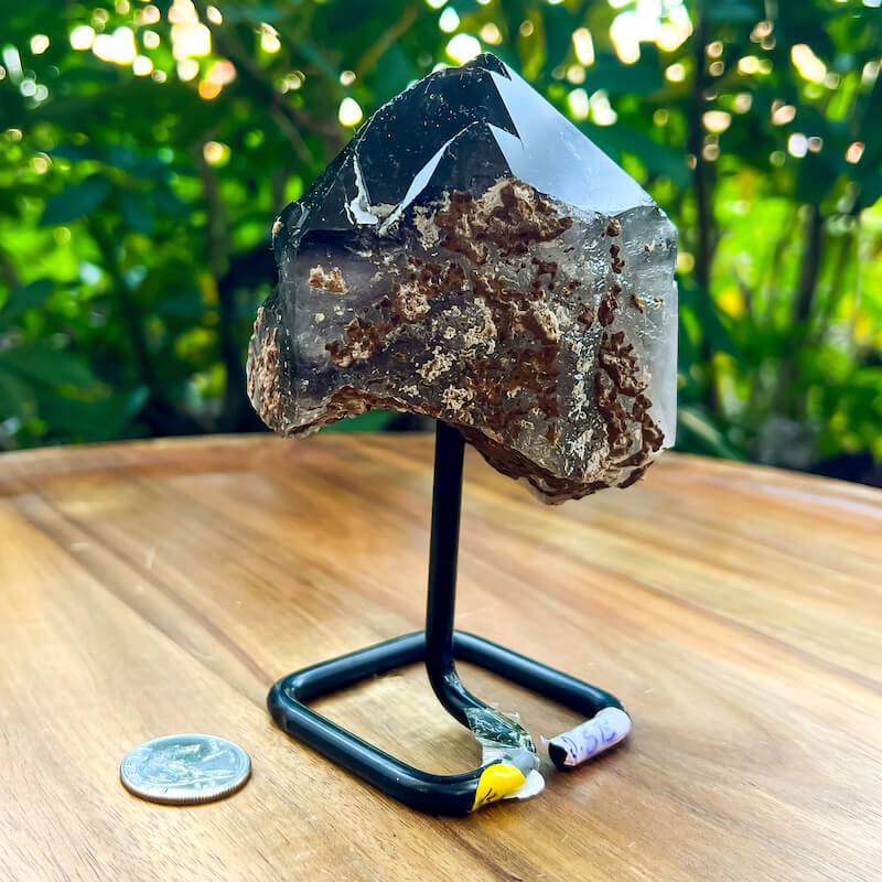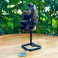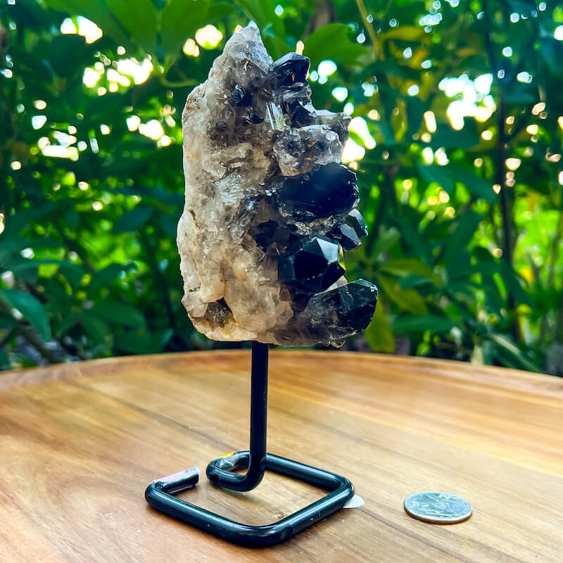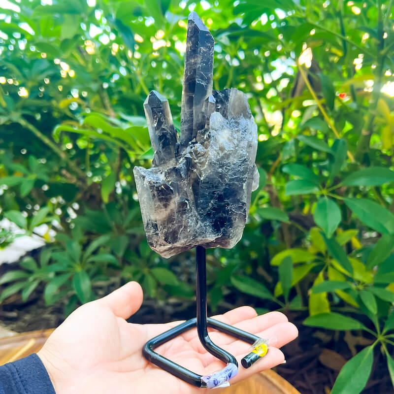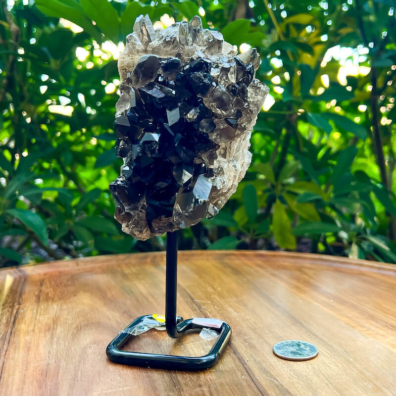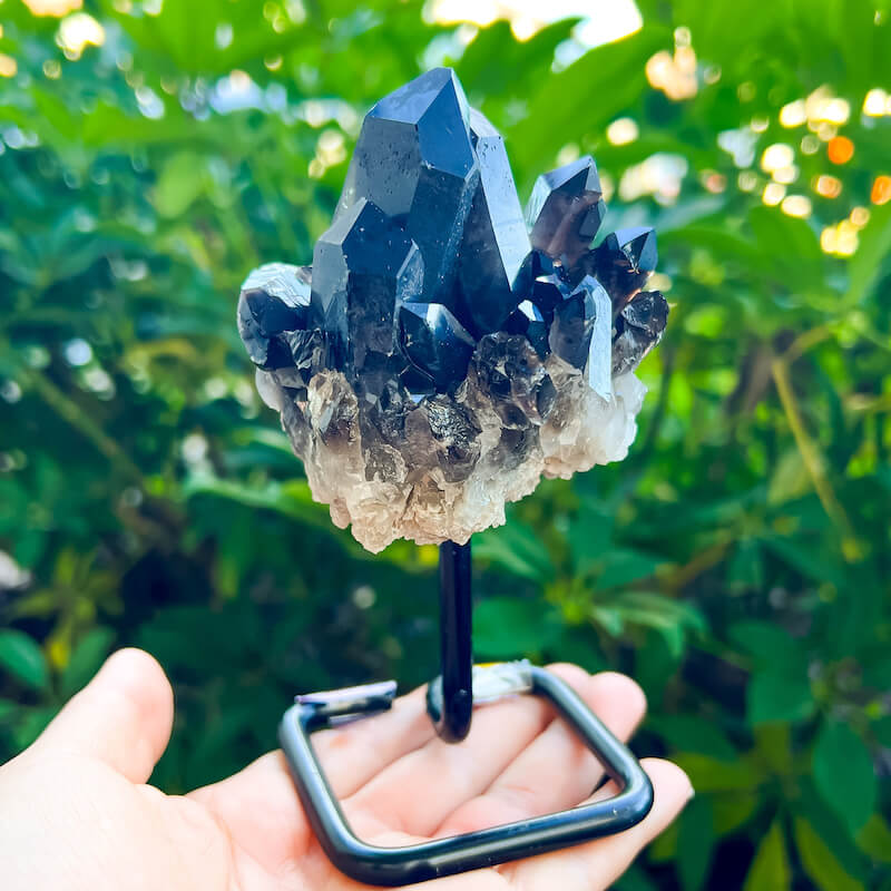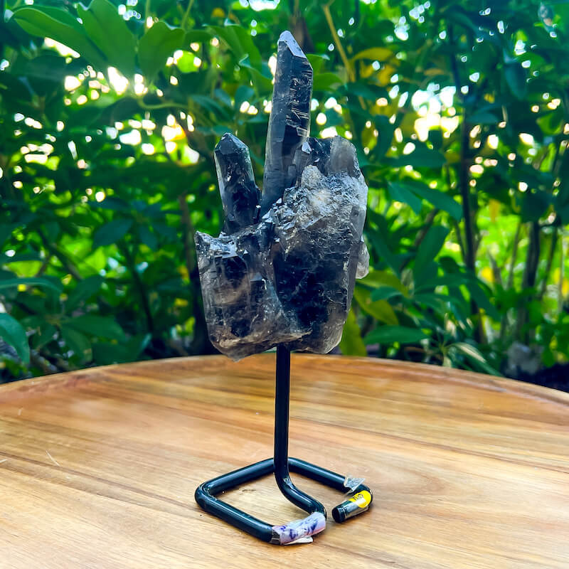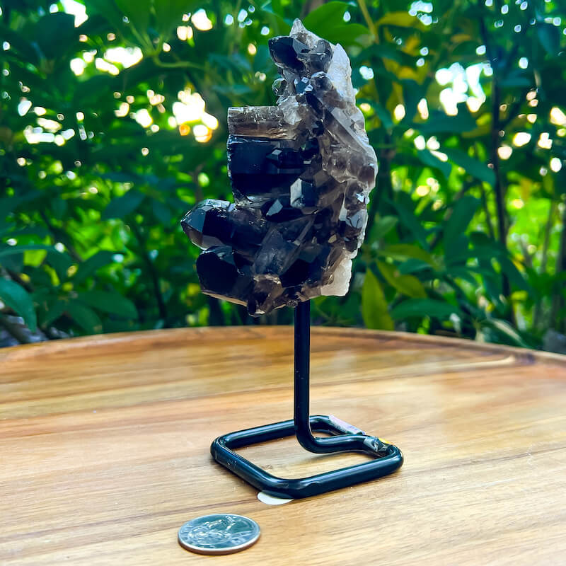 These Smoky Quartz on a stand are a rustic beauty, that will fit your minimalist lifestyle. A spiritual piece that emits incredible energy. This crystal is very grounding and helps in balancing energy. It is thought to aid in concentration and to clear your mind of clutter. By stabilizing your energy, it helps to overcome negativity.