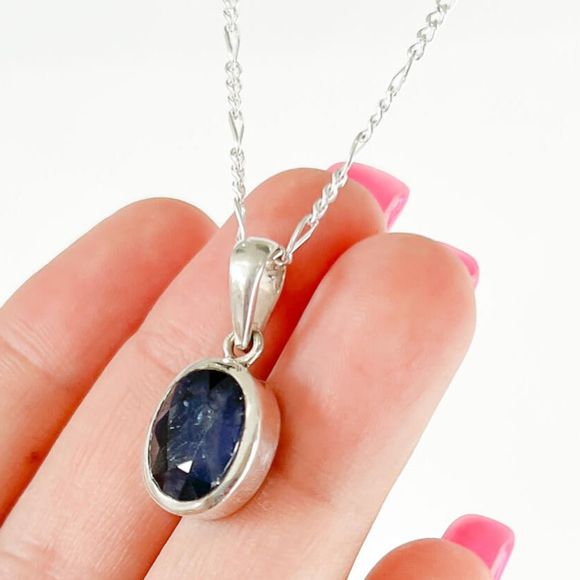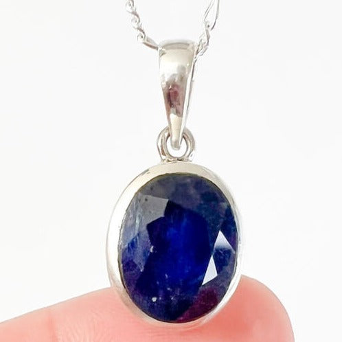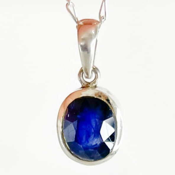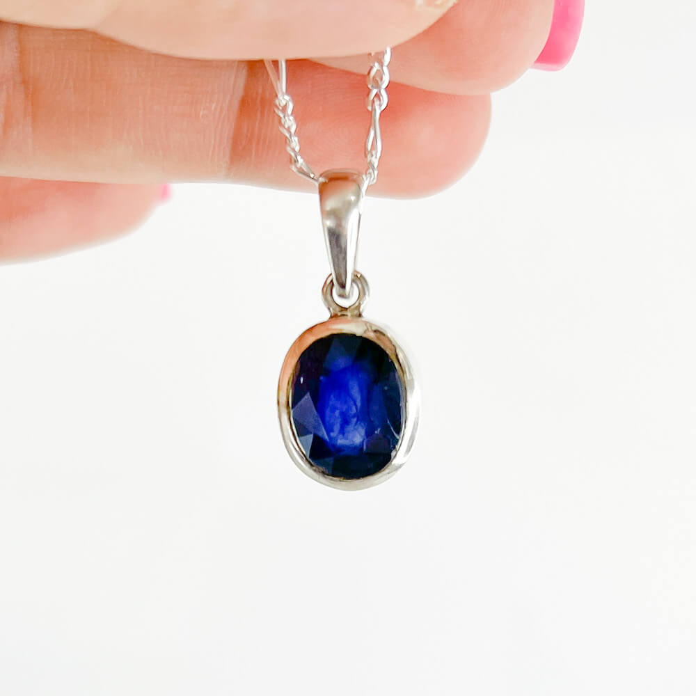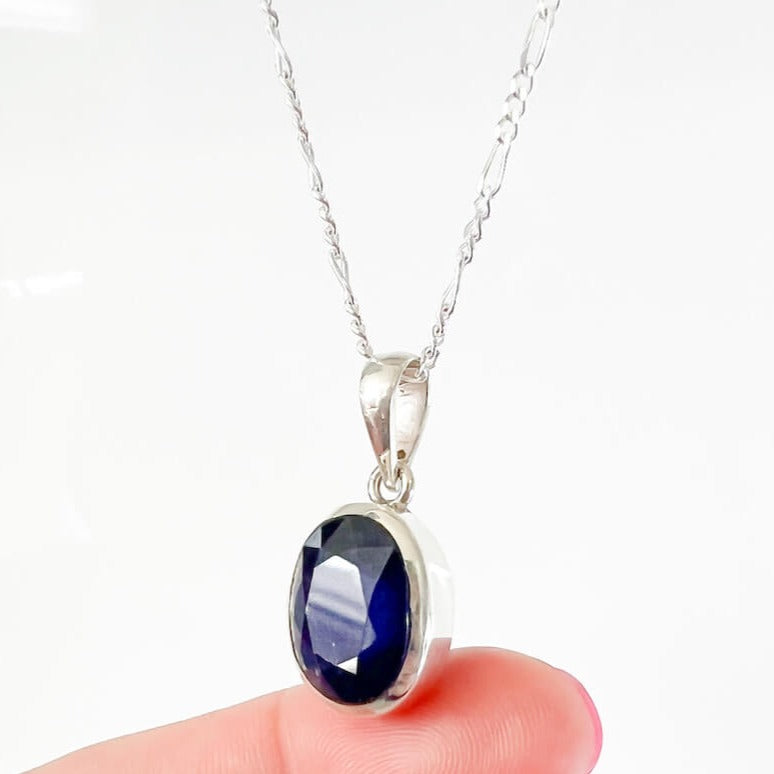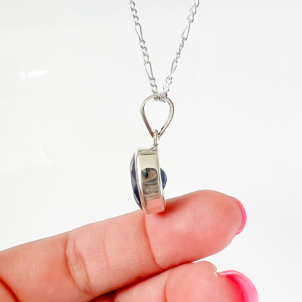 Faceted Sapphire Sterling Silver Pendant Necklace