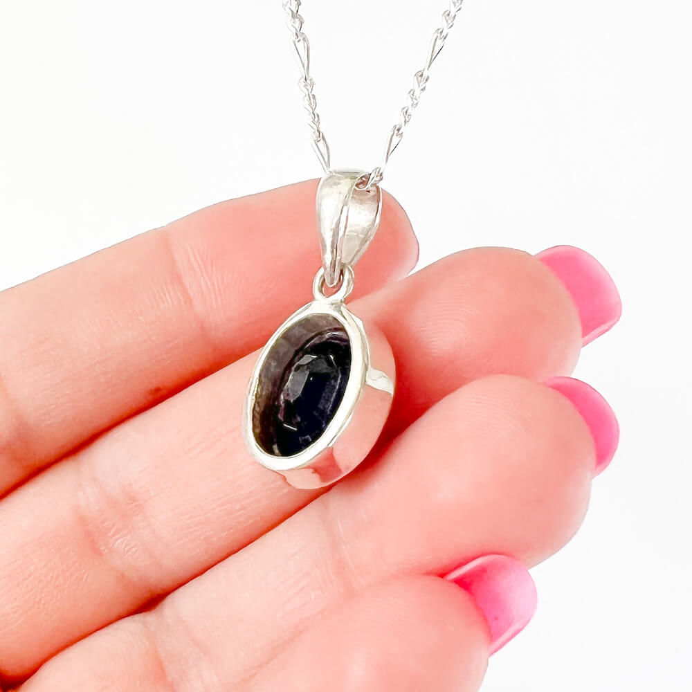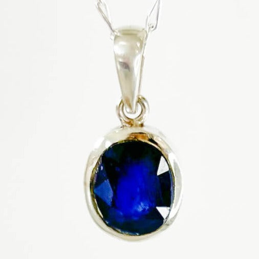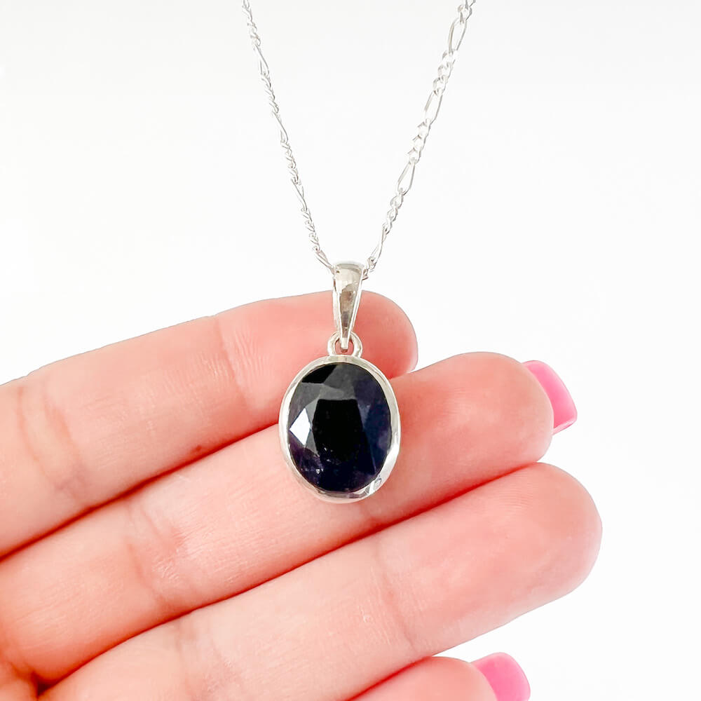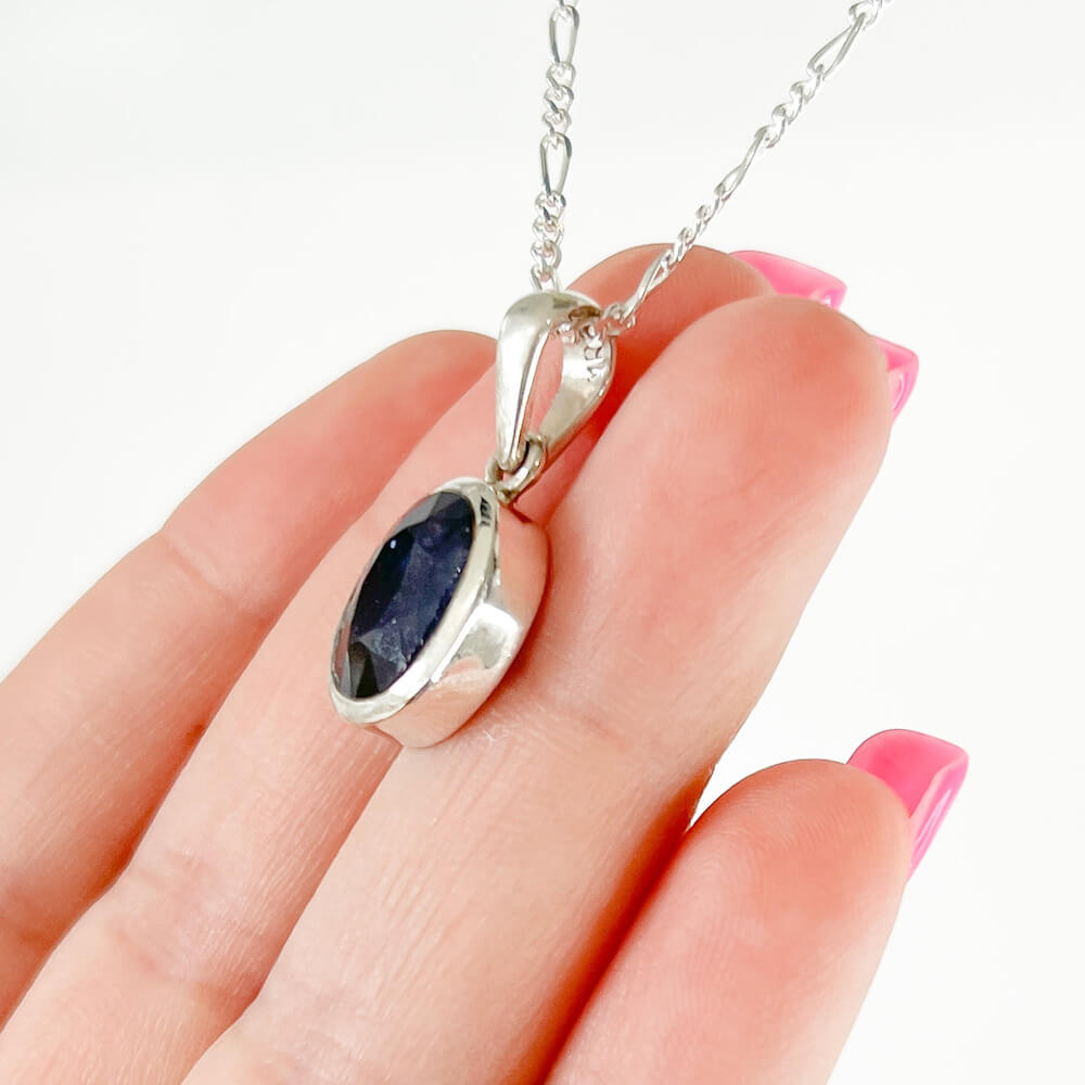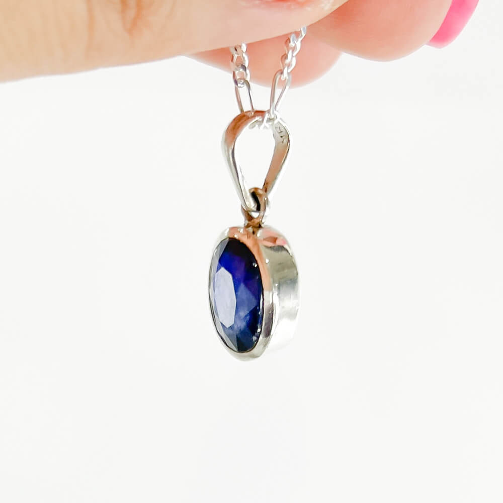 Faceted Sapphire Sterling Silver Pendant Necklace