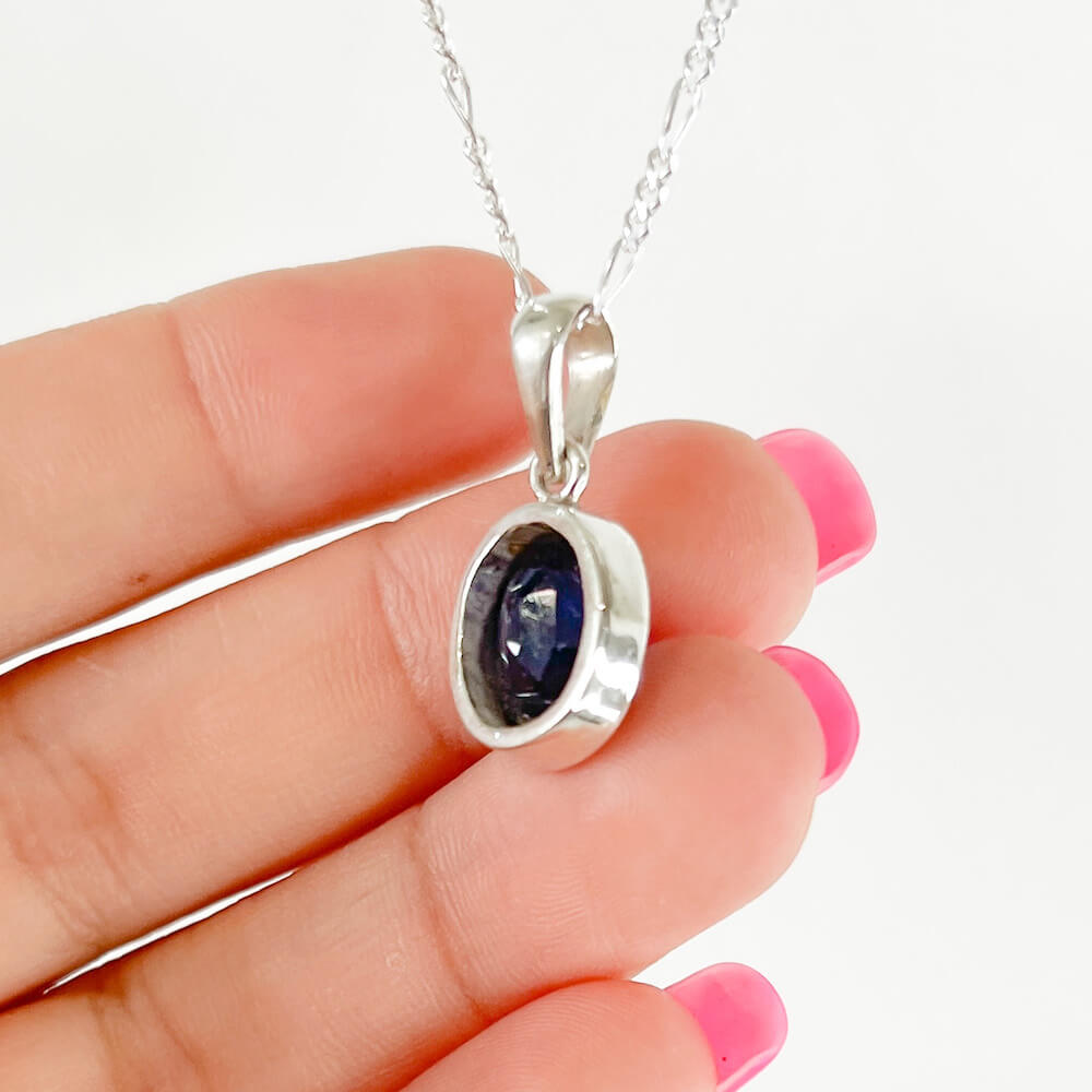 Amazing simple genuine sapphire necklace in solid sterling silver! Absolutely great for every day or formal wear. This sapphire necklace will add class to every outfit! Sapphire is one of the most precious stones in the world and sapphire jewelry have been used by royals for centuries. A beautiful and modern pendant necklace crafted in 925 sterling silver featuring an oval cut genuine blue sapphire gemstone in a bezel setting. Each piece was hand-selected to guarantee quality and beauty.