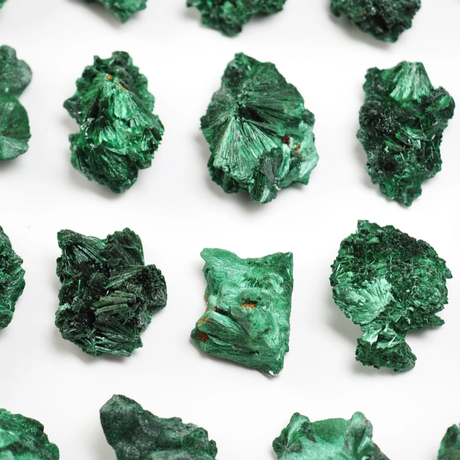 Fall in love with our new collection of beautiful fibrous Malachite specimens. These Fibrous Malachite pieces comes to us all the way from Katanga Province, Democratic Republic of the Congo and contain vibrant shades of green from dark to light. What makes these Malachite specimens unforgettable and gorgeous is the mesmerizing velvet like appearance which covers each lovely specimen!
