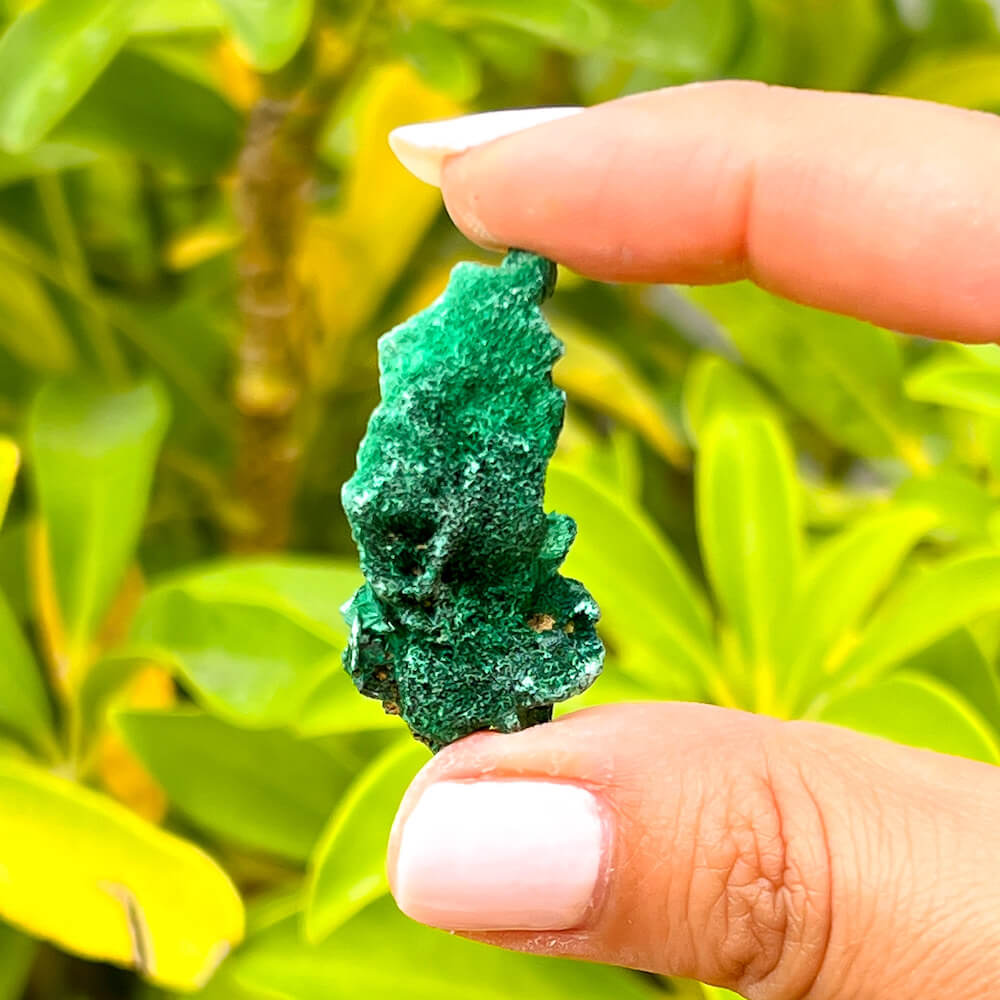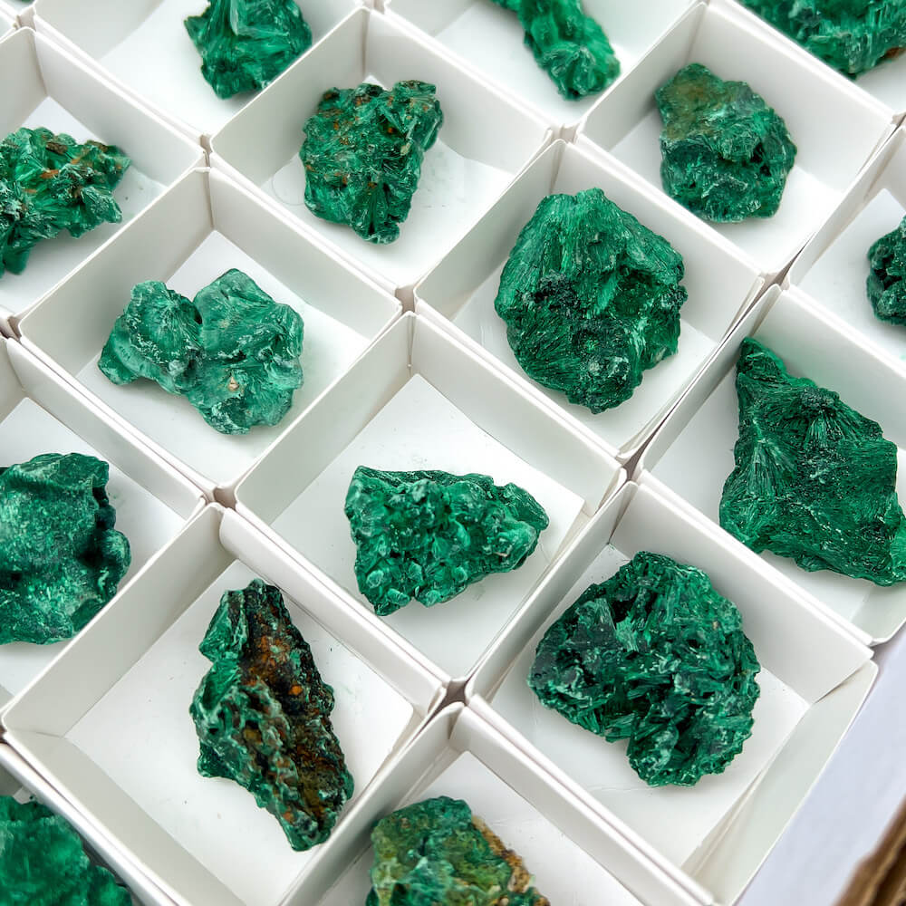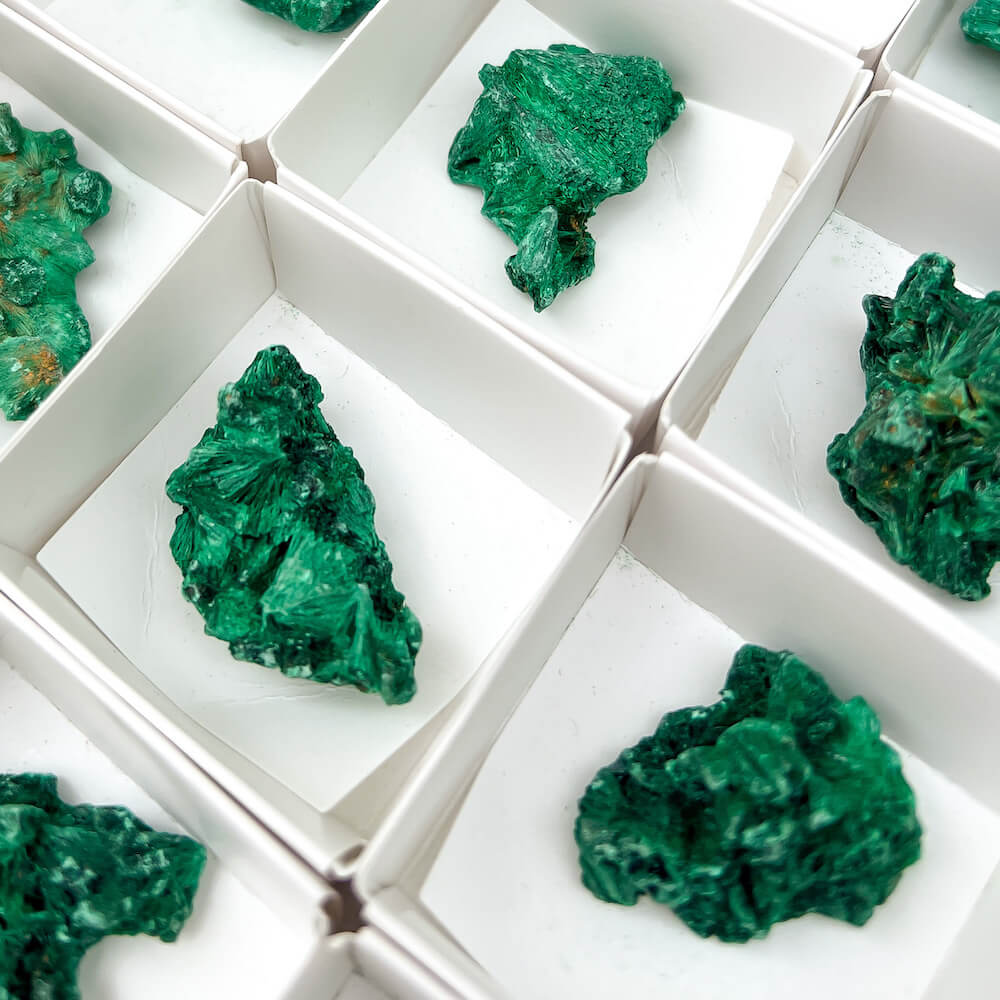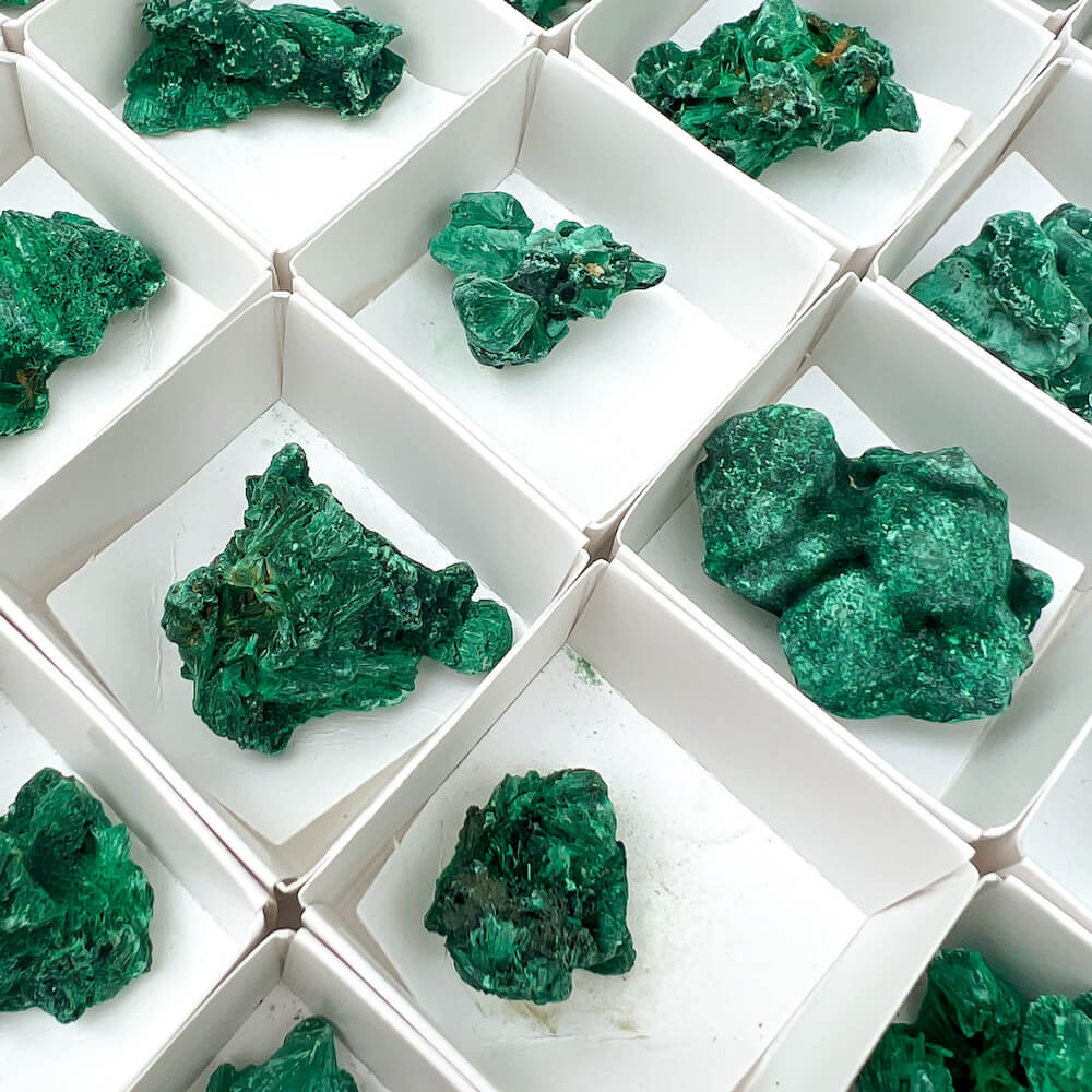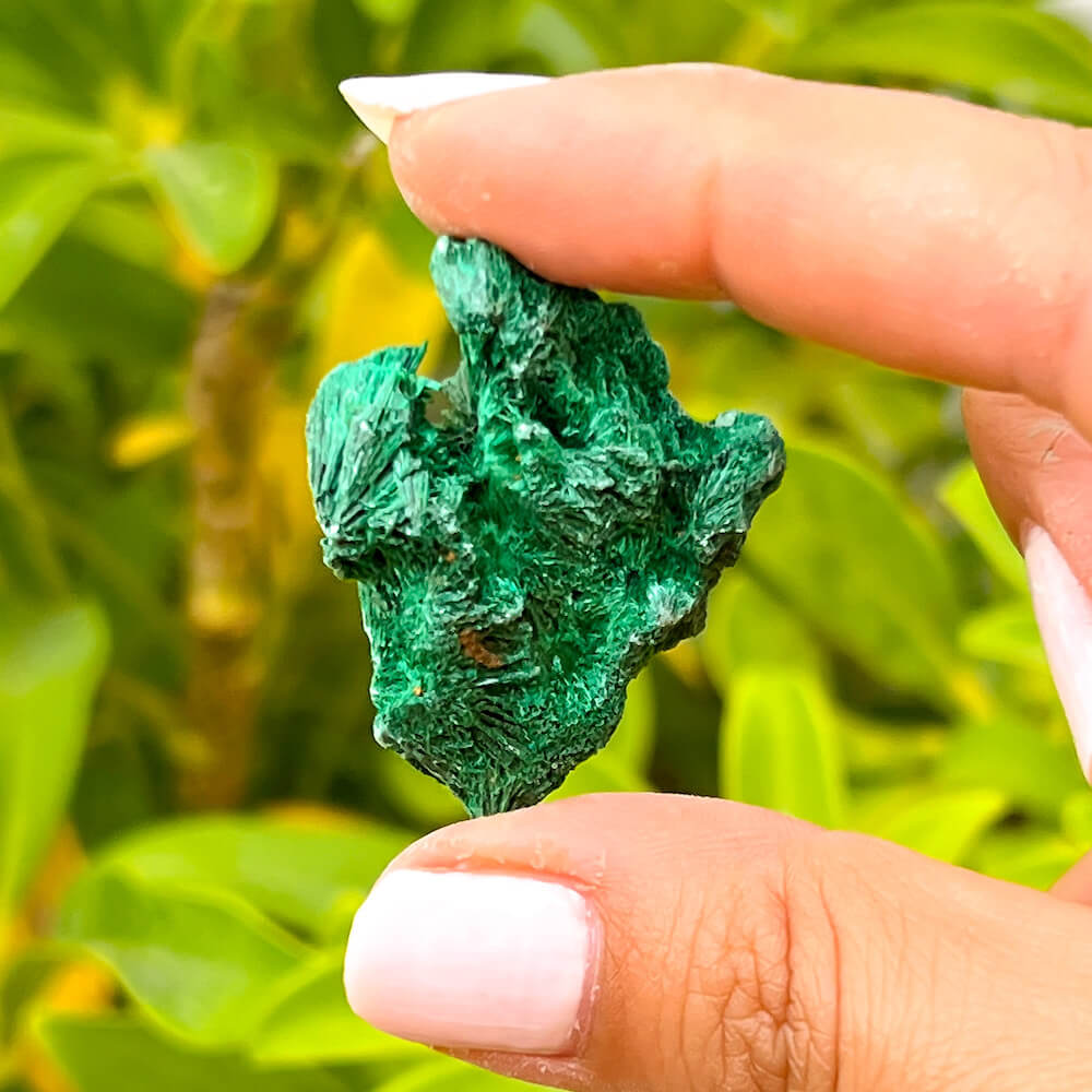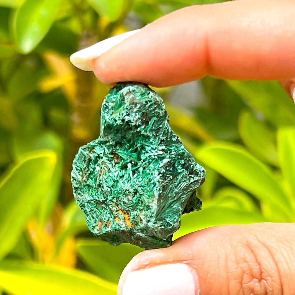 Warning: Unpolished Malachite releases toxic fumes when wet, so be sure to store it safely in a dry area. Polished Malachite can break apart in hot water.
