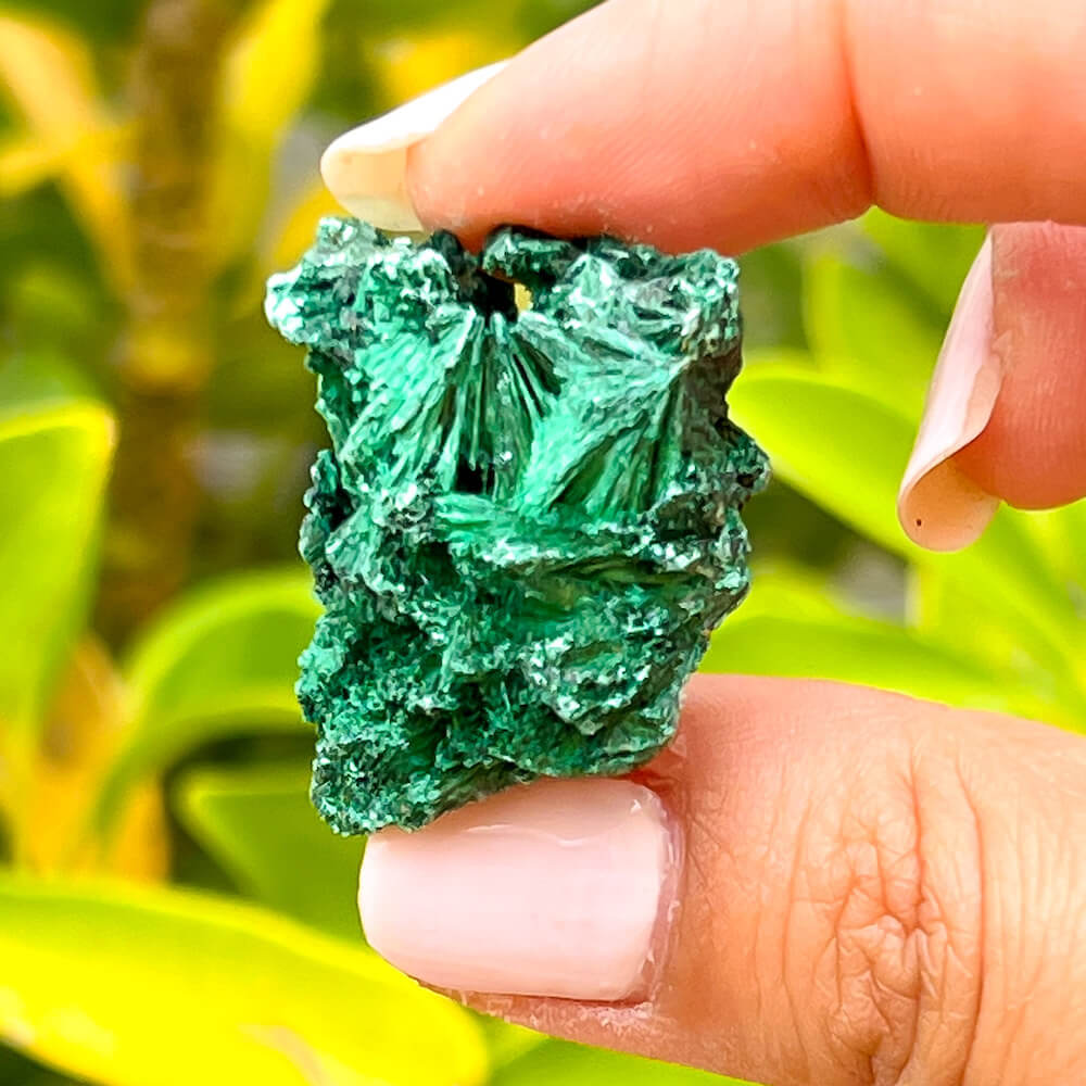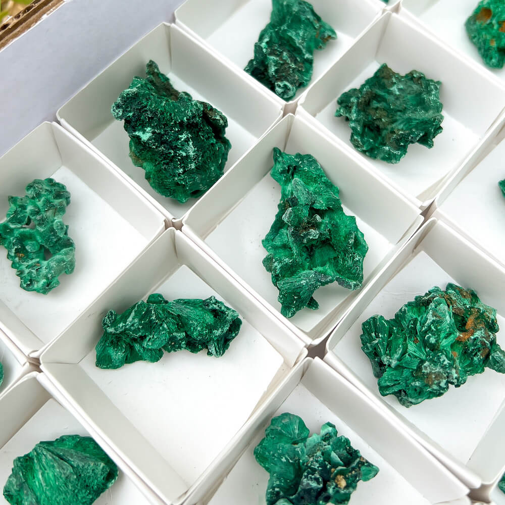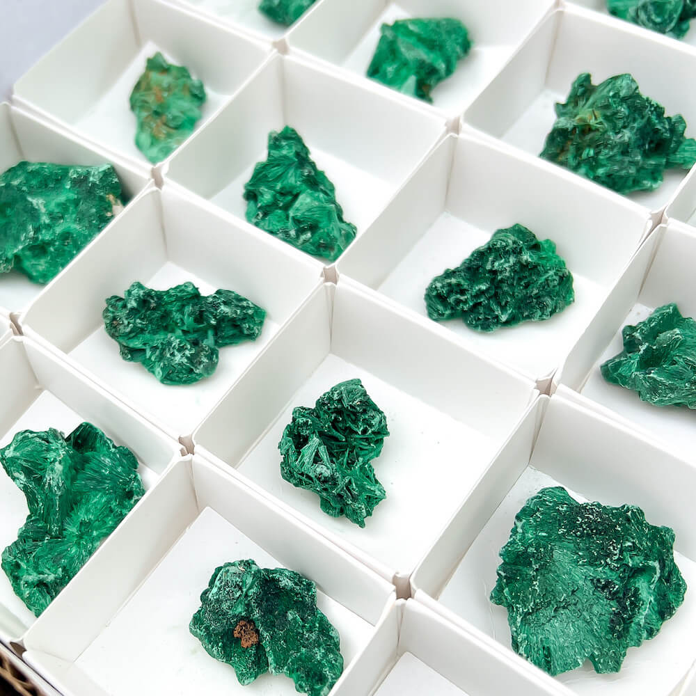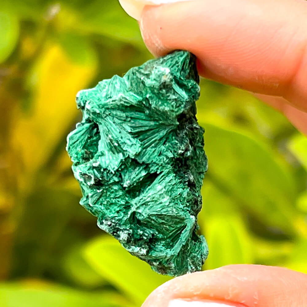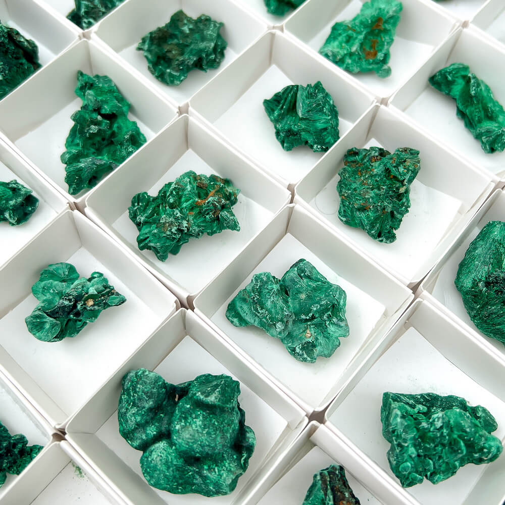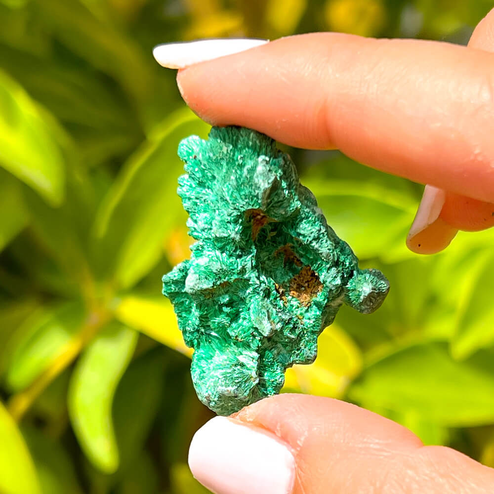 Warning: Unpolished Malachite releases toxic fumes when wet, so be sure to store it safely in a dry area. Polished Malachite can break apart in hot water.