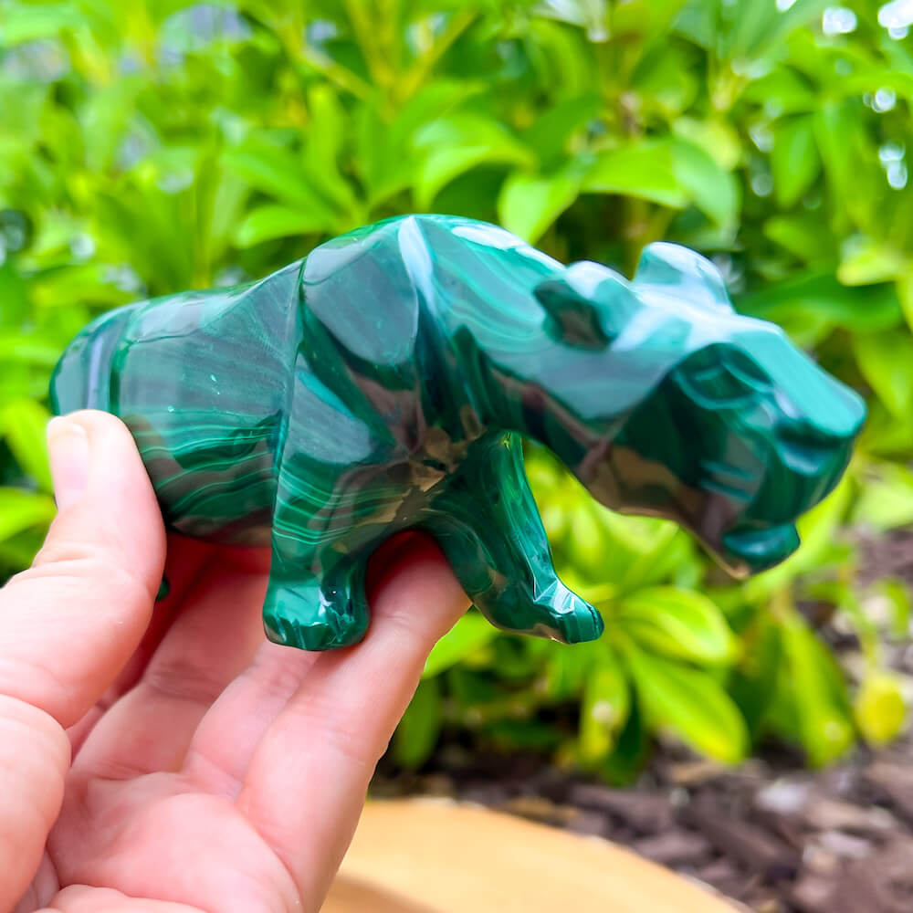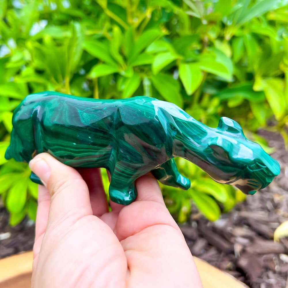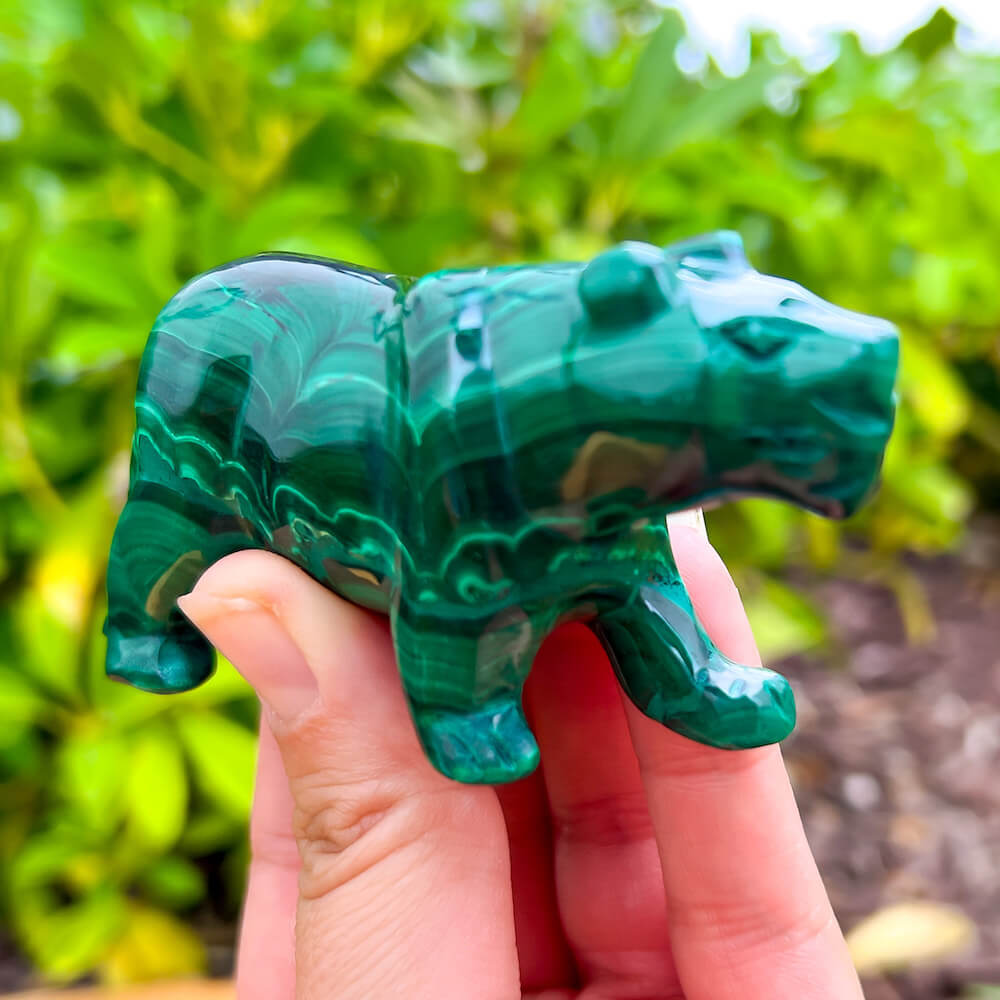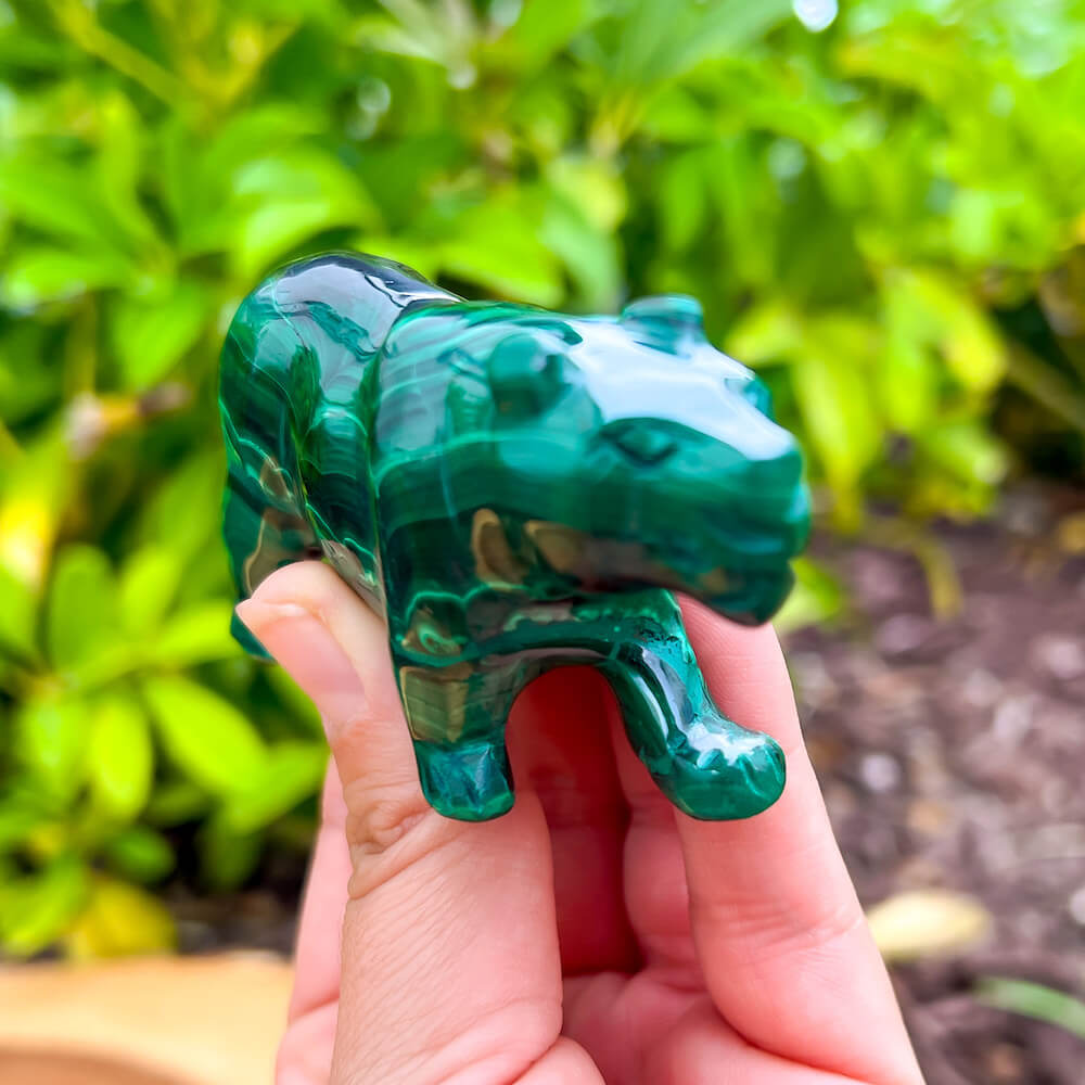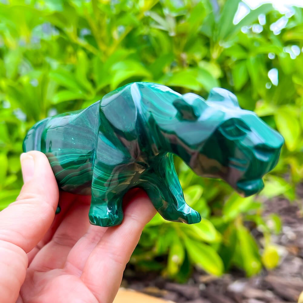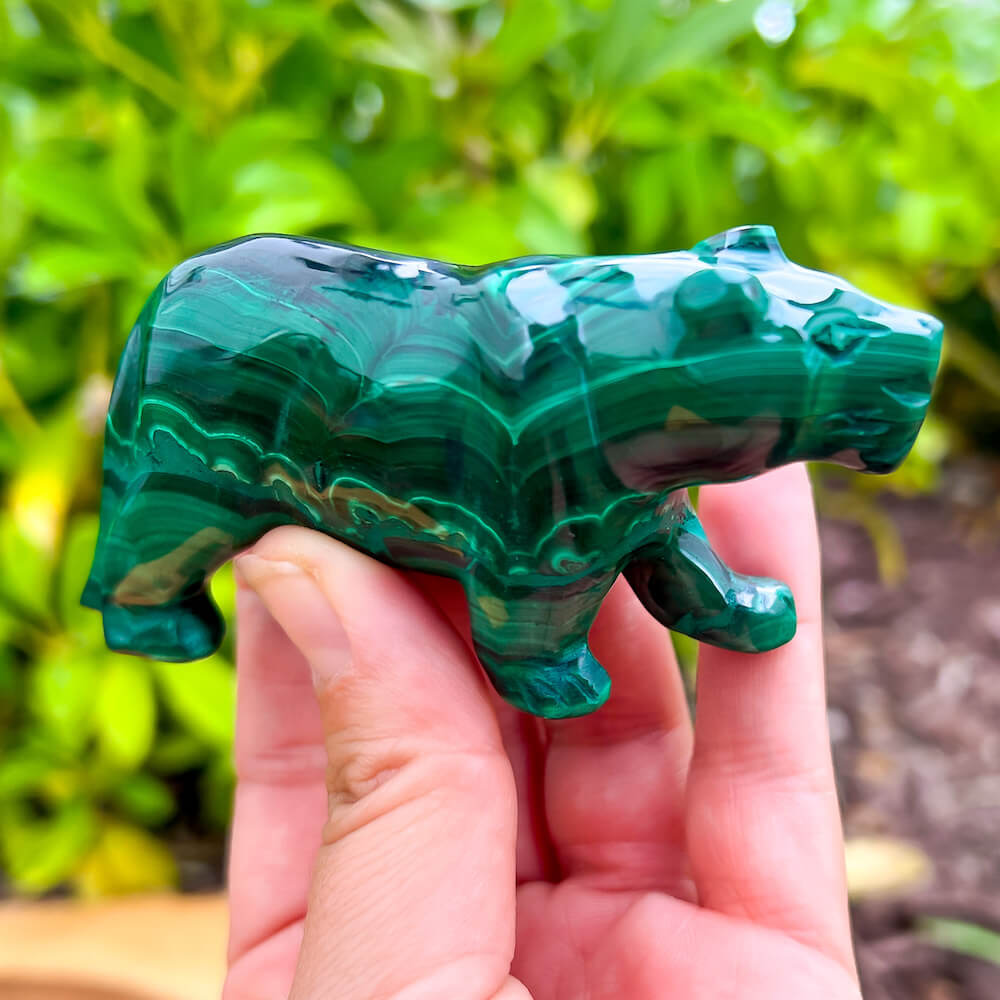 One of a kind Leopard Carving from Congo. Malachite natural, a genuine semiprecious stone from the Democratic Republic of the Congo. You will receive the exact Malachite piece is shown.  Malachite is such a cool stone. It is a copper carbonate hydroxide mineral that forms the most splendid patterns and designs, often forming in botryoidal masses. When looking at Malachite, remember that it is never uniform in its patterns. It will have thin lines, thick lines, circles, swirls, and those patterns form in light mint to the darkest hunter green shades. It is such an awesome stone to look at, spectacular in all of its twisty turvy patterns. - Genuine Malachite will never just line in a similar formation and will not have black in it. Beware of some fake Malachite pieces floating around.