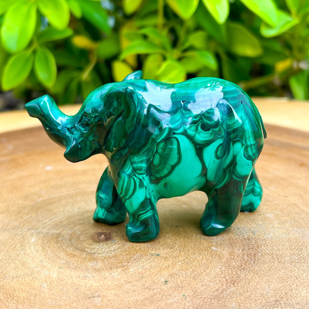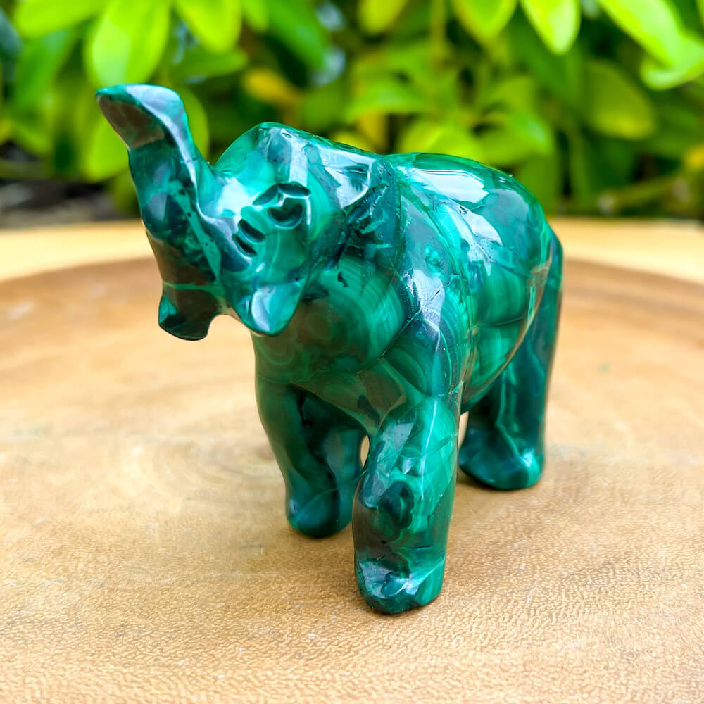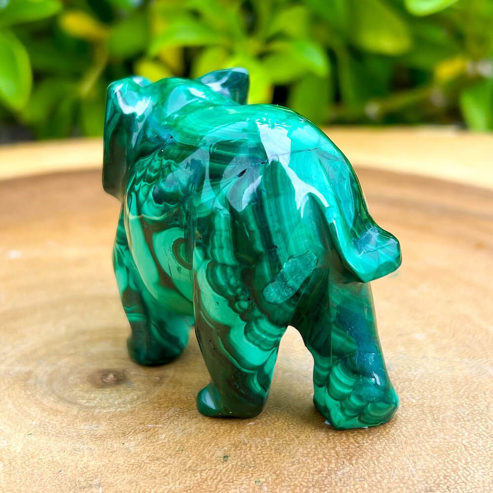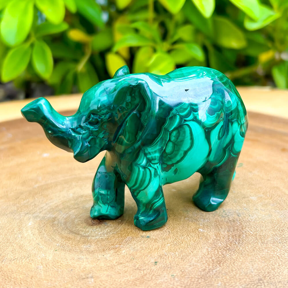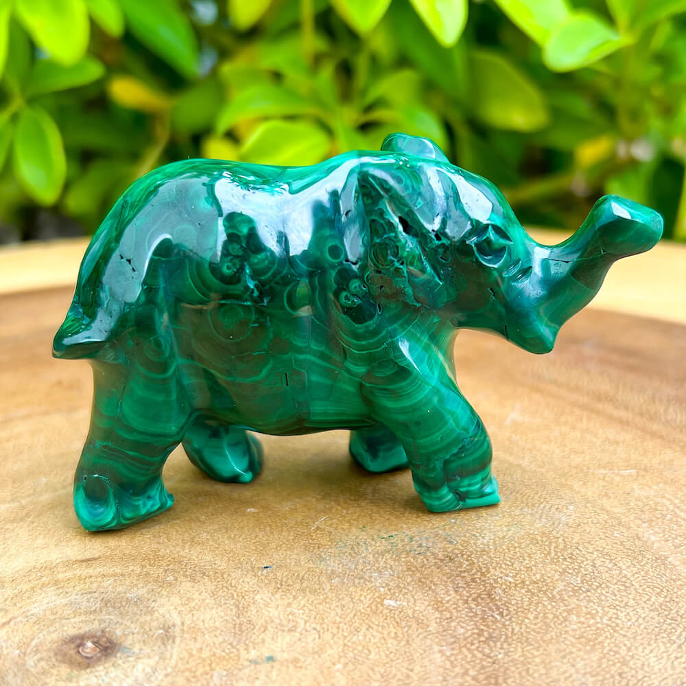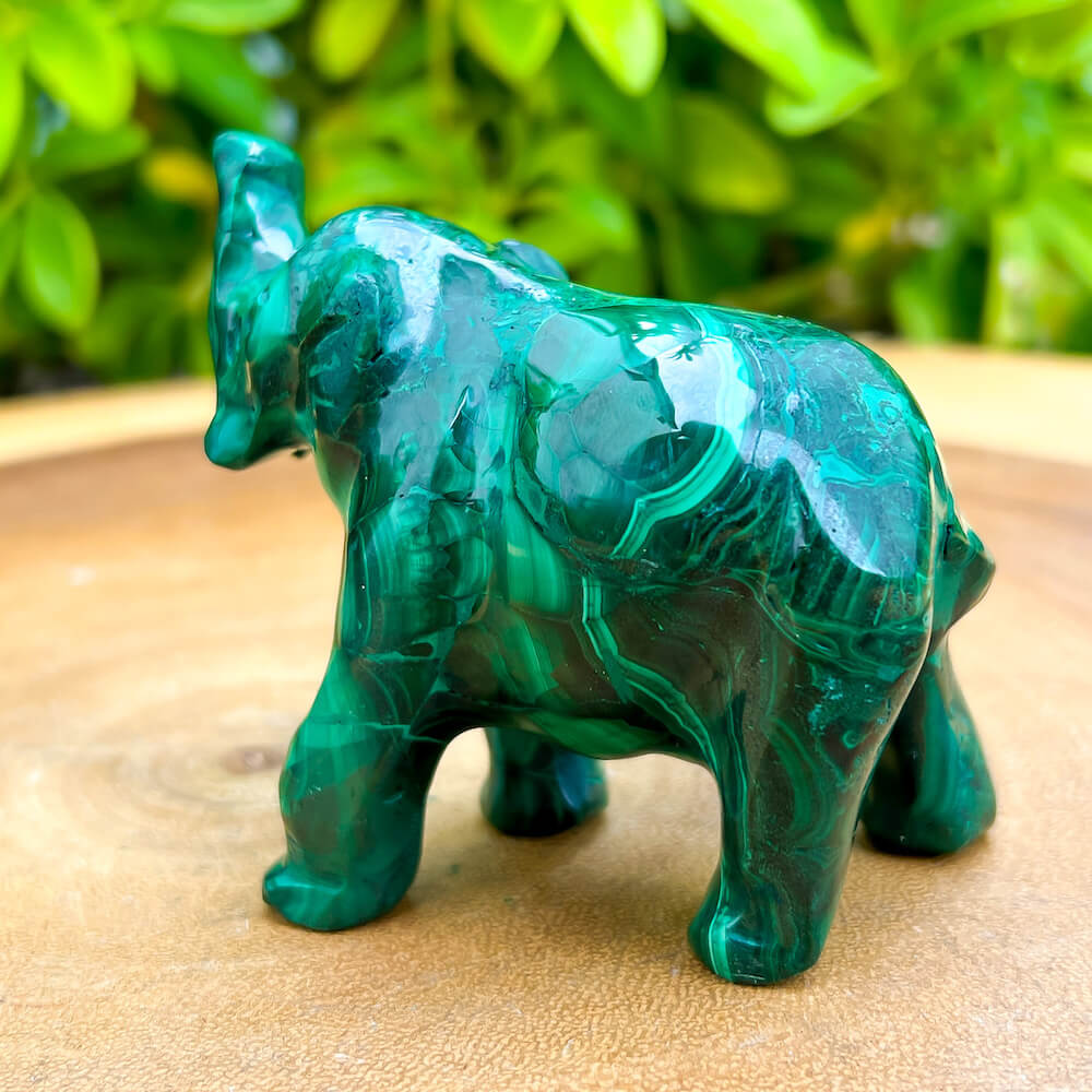 One of a kind Elephant Carving from Congo. Malachite natural, a genuine semiprecious stone from the Democratic Republic of the Congo. You will receive the exact Malachite piece is shown. Malachite is such a cool stone. It is a copper carbonate hydroxide mineral that forms the most splendid patterns and designs, often forming in botryoidal masses. When looking at Malachite, remember that it is never uniform in its patterns. It will have thin lines, thick lines, circles, swirls, and those patterns form in light mint to the darkest hunter green shades. It is such an awesome stone to look at, spectacular in all of its twisty turvy patterns. - Genuine Malachite will never just line in a similar formation and will not have black in it. Beware of some fake Malachite pieces floating around.