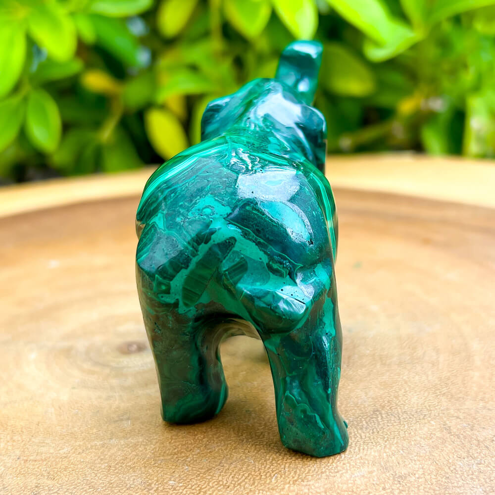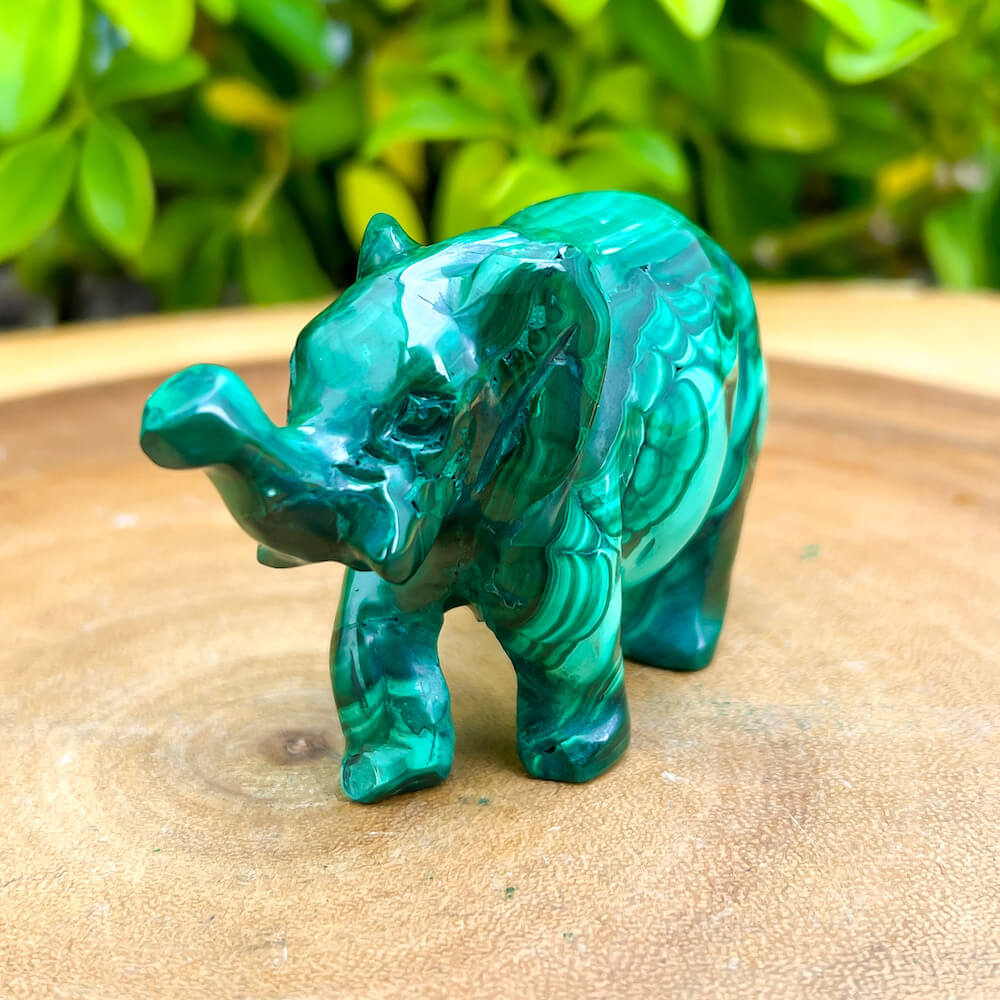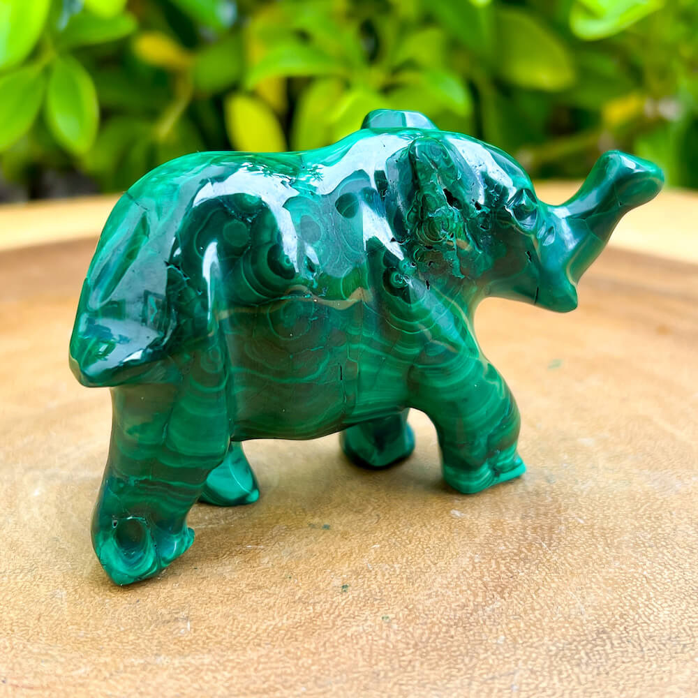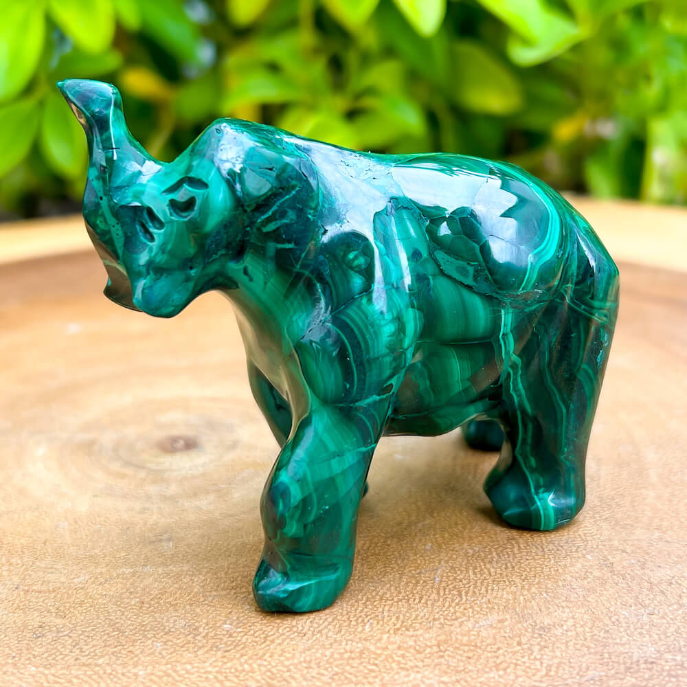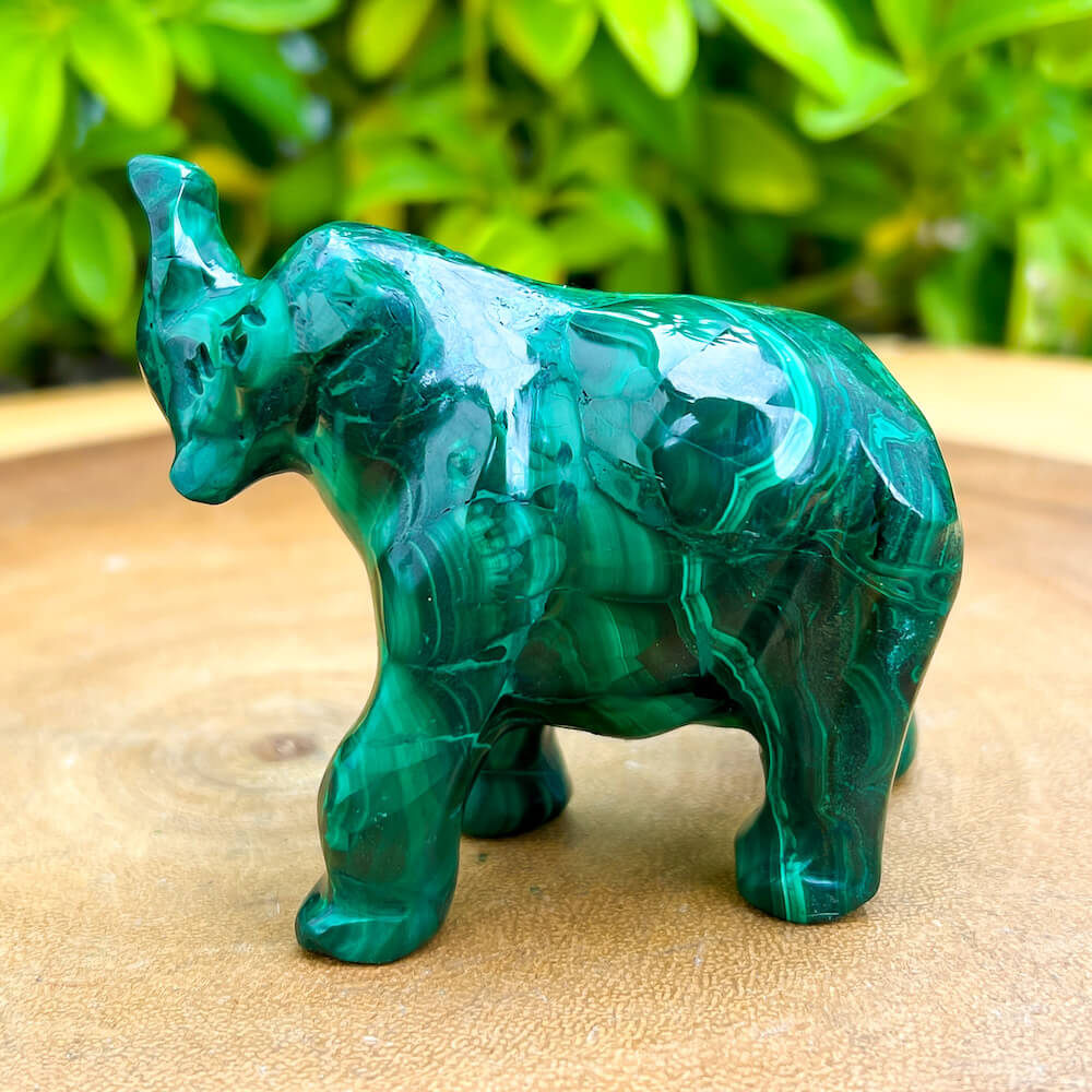 One of a kind Elephant Carving from Congo. Malachite natural, a genuine semiprecious stone from the Democratic Republic of the Congo. You will receive the exact Malachite piece is shown. Malachite is such a cool stone. It is a copper carbonate hydroxide mineral that forms the most splendid patterns and designs, often forming in botryoidal masses. When looking at Malachite, remember that it is never uniform in its patterns. It will have thin lines, thick lines, circles, swirls, and those patterns form in light mint to the darkest hunter green shades. It is such an awesome stone to look at, spectacular in all of its twisty turvy patterns. - Genuine Malachite will never just line in a similar formation and will not have black in it. Beware of some fake Malachite pieces floating around.