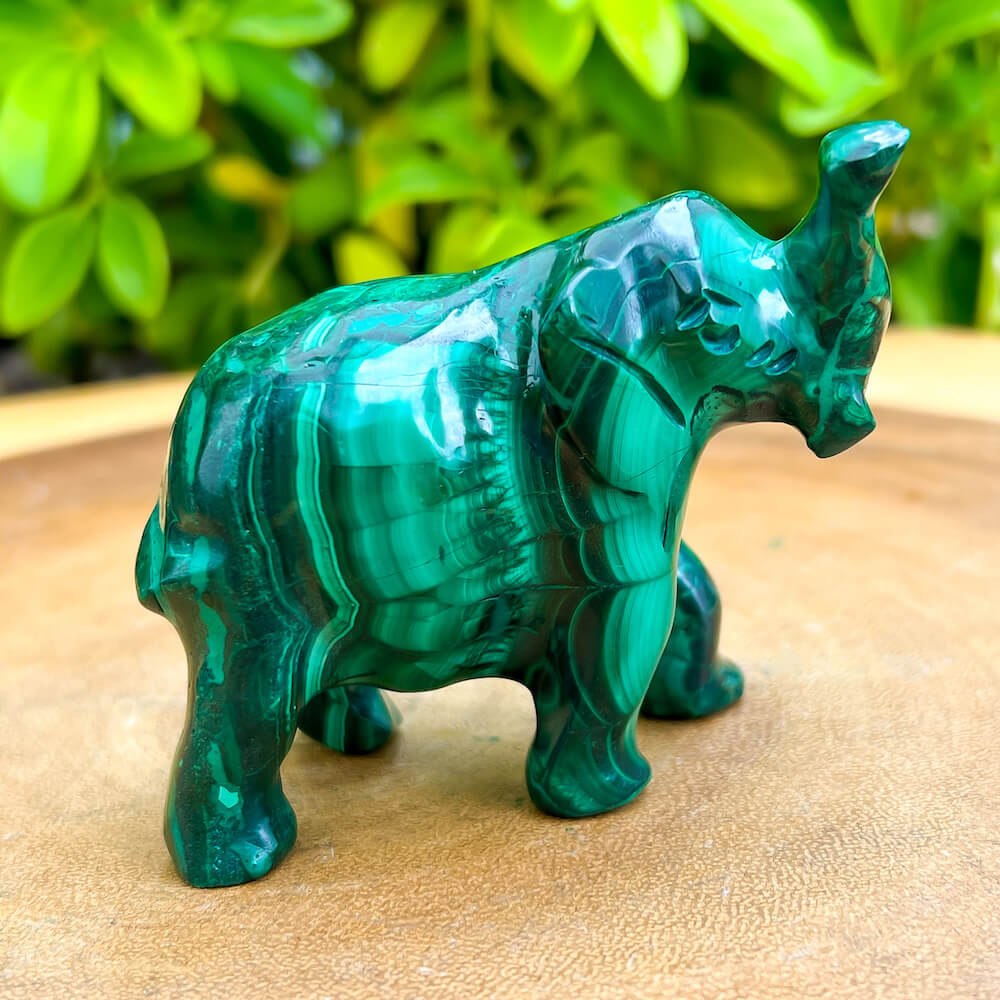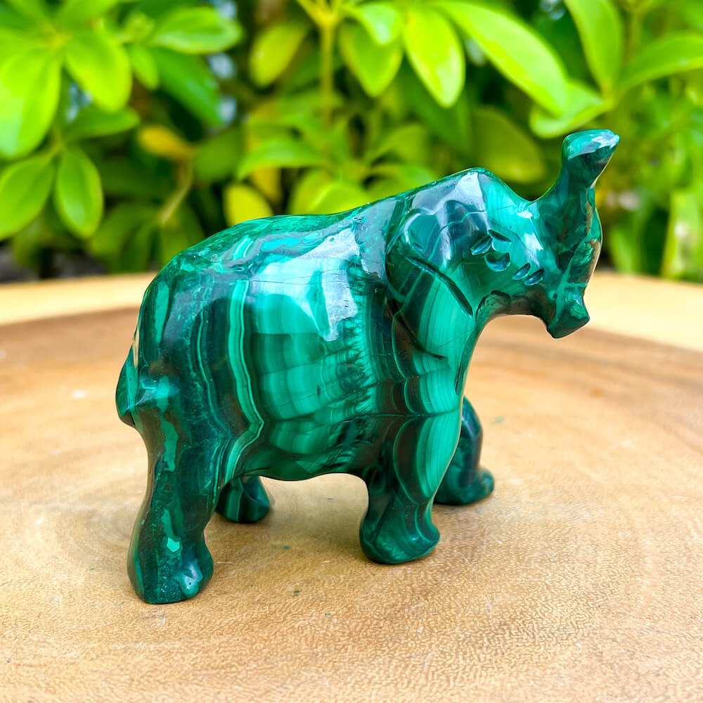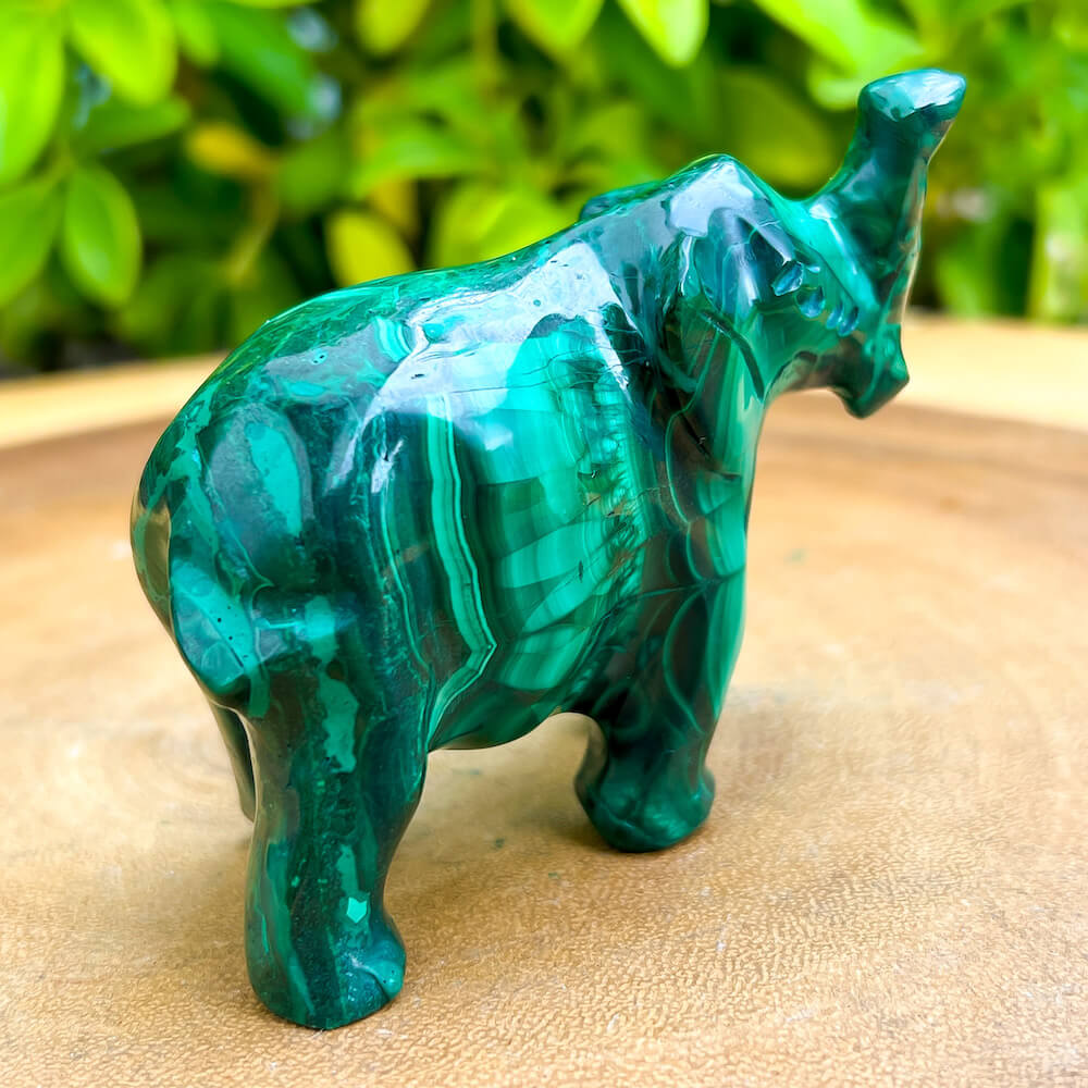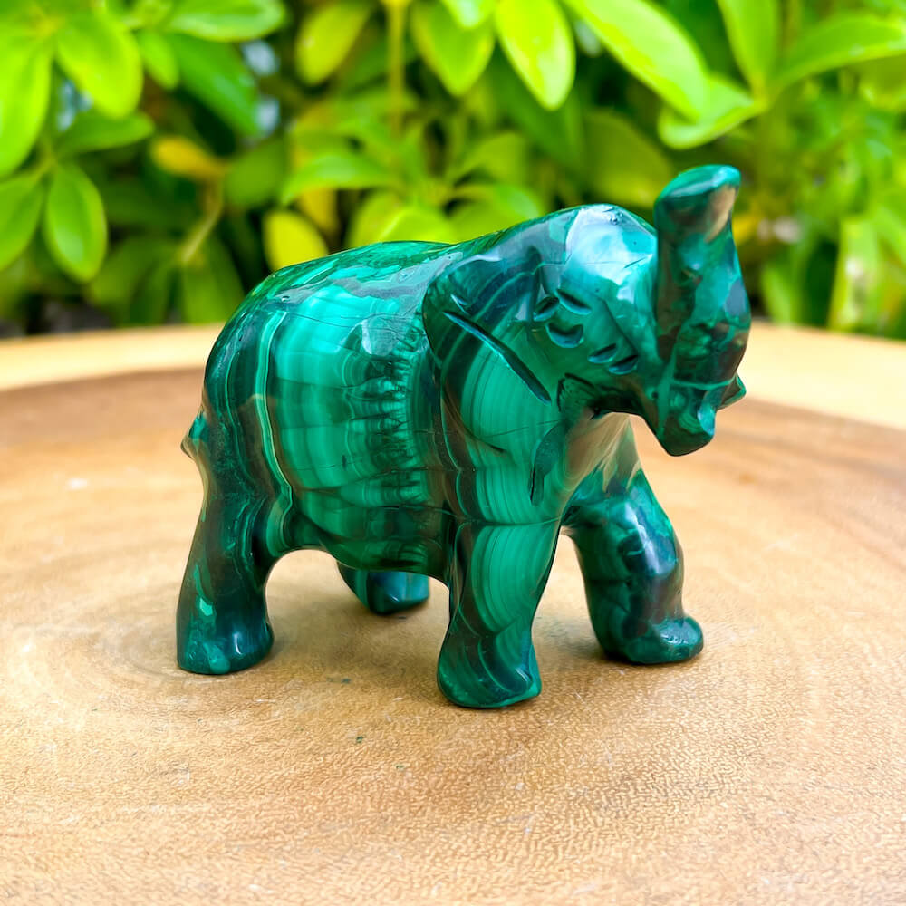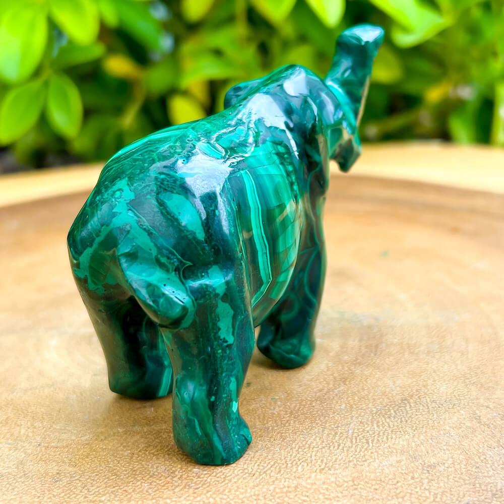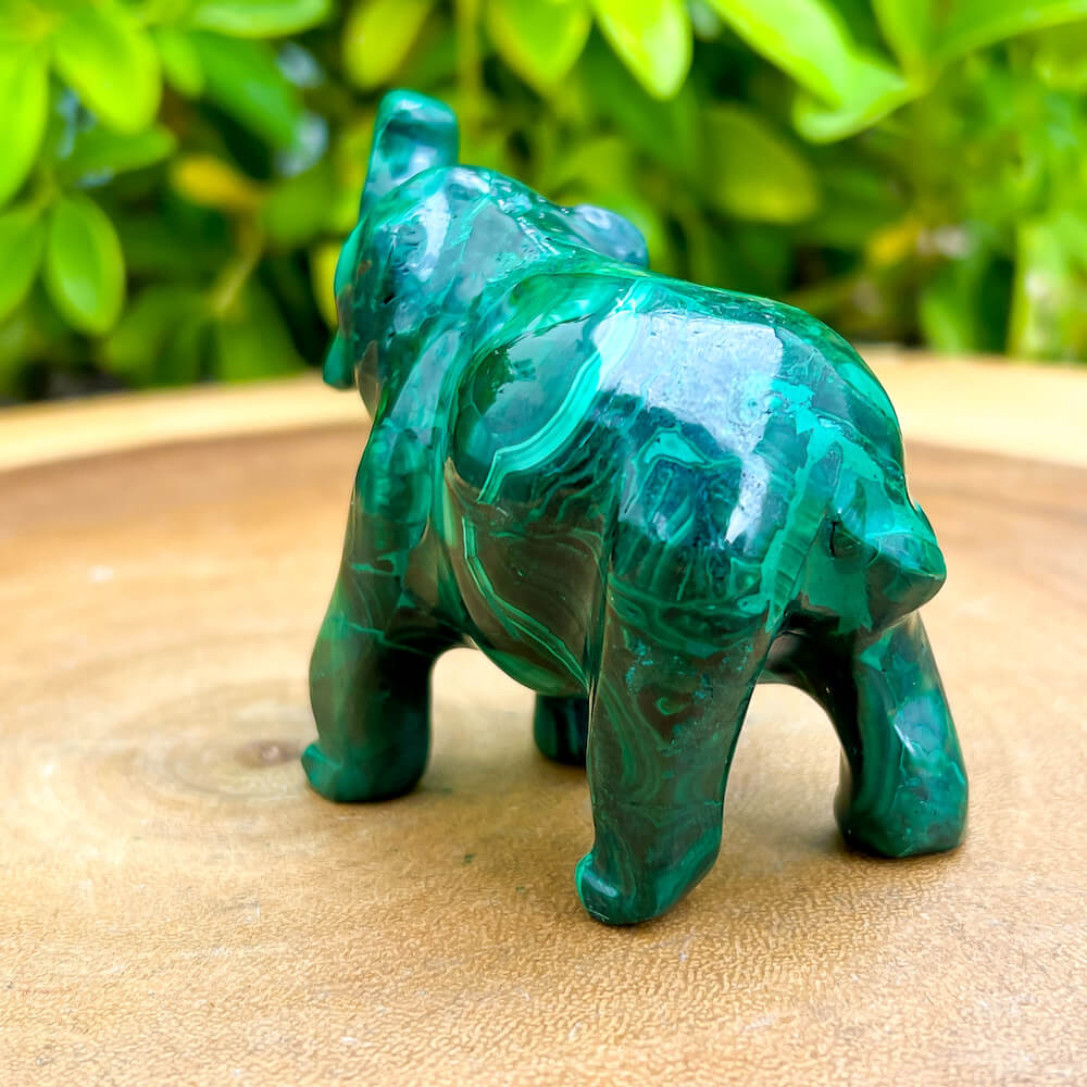 One of a kind Elephant Carving from Congo. Malachite natural, a genuine semiprecious stone from the Democratic Republic of the Congo. You will receive the exact Malachite piece is shown. Malachite is such a cool stone. It is a copper carbonate hydroxide mineral that forms the most splendid patterns and designs, often forming in botryoidal masses. When looking at Malachite, remember that it is never uniform in its patterns. It will have thin lines, thick lines, circles, swirls, and those patterns form in light mint to the darkest hunter green shades. It is such an awesome stone to look at, spectacular in all of its twisty turvy patterns. - Genuine Malachite will never just line in a similar formation and will not have black in it. Beware of some fake Malachite pieces floating around.