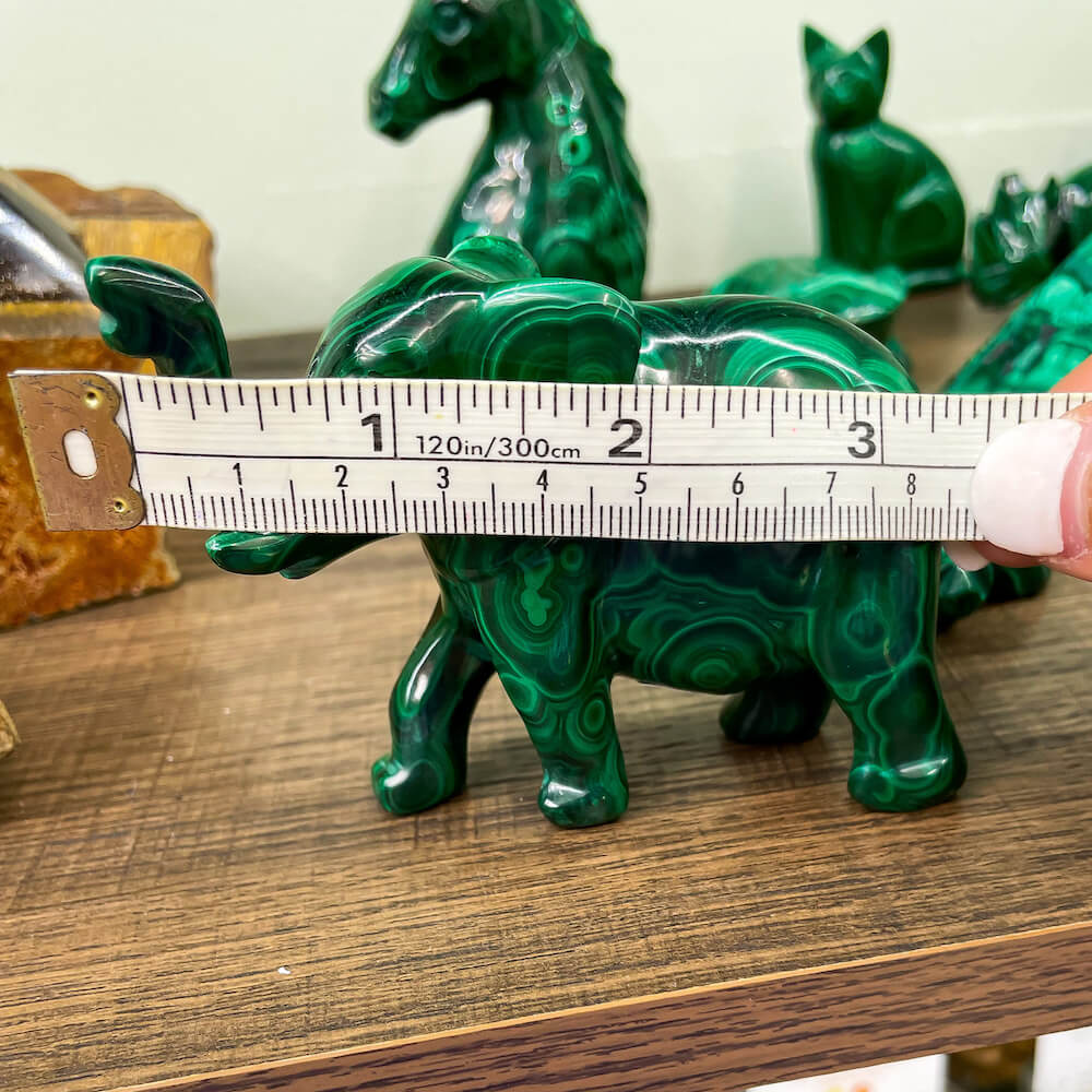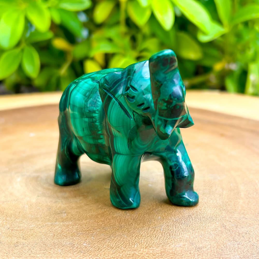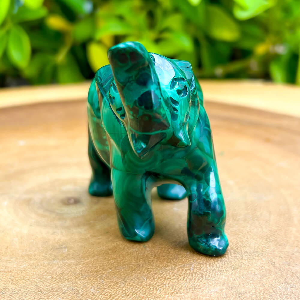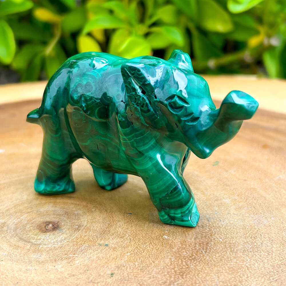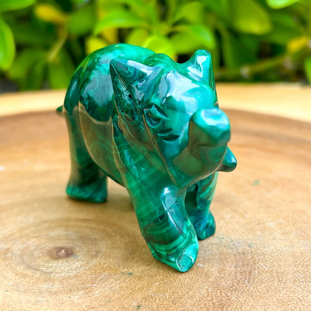One of a kind Elephant Carving from Congo. Malachite natural, a genuine semiprecious stone from the Democratic Republic of the Congo. You will receive the exact Malachite piece is shown. Malachite is such a cool stone. It is a copper carbonate hydroxide mineral that forms the most splendid patterns and designs, often forming in botryoidal masses. When looking at Malachite, remember that it is never uniform in its patterns. It will have thin lines, thick lines, circles, swirls, and those patterns form in light mint to the darkest hunter green shades. It is such an awesome stone to look at, spectacular in all of its twisty turvy patterns. - Genuine Malachite will never just line in a similar formation and will not have black in it. Beware of some fake Malachite pieces floating around.