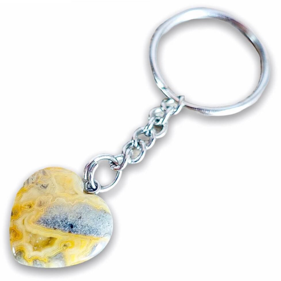 Put your keys on your Crazy Lace Agate Keychain and connect with the stone when you need a moment of joy, and happiness.
