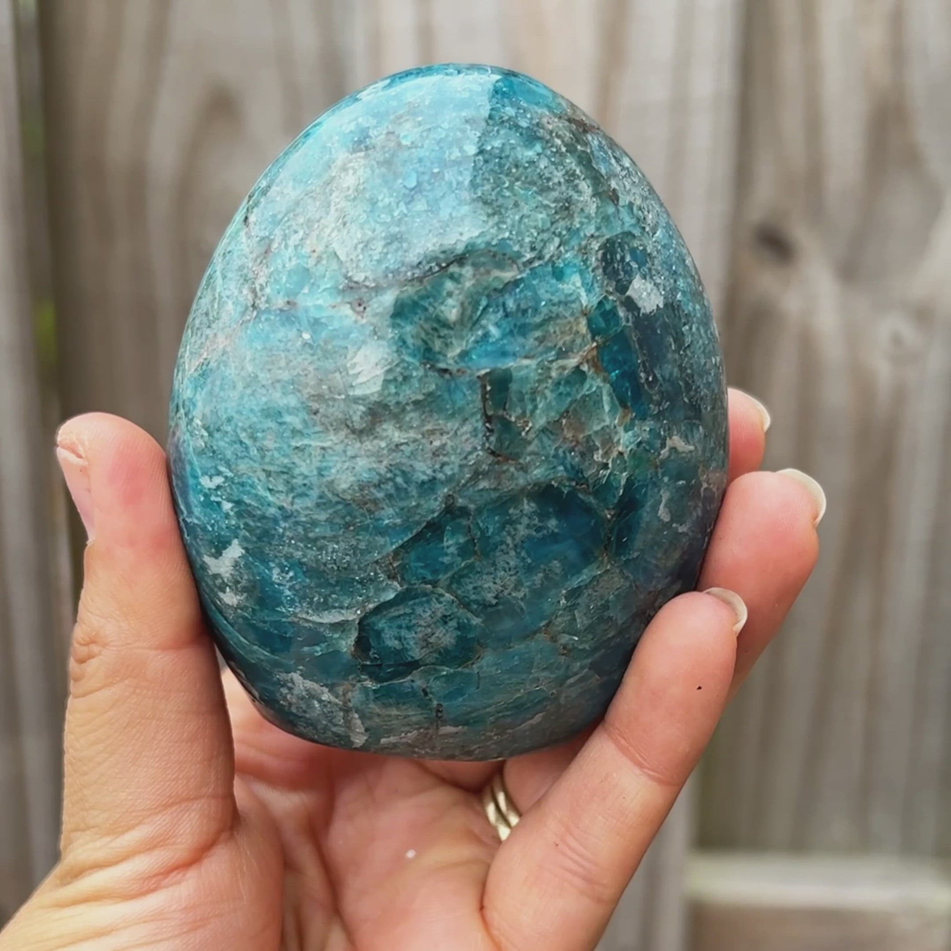 Apatite is a stone of manifestation.  It is related to service and to humanitarian pursuits.  Apatite is attuned to the future, yet connects to past lives.  It stimulates the development of our psychic gifts and spiritual attunement, deepening meditation and aiding communication and self-expression on all levels.  It balances the physical, emotional, mental, and spiritual bodies, and the chakras, eliminating overactivity and stimulating under-activity.