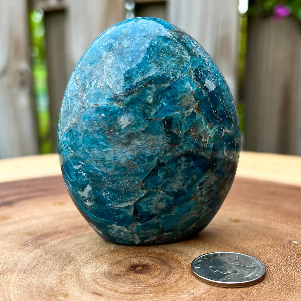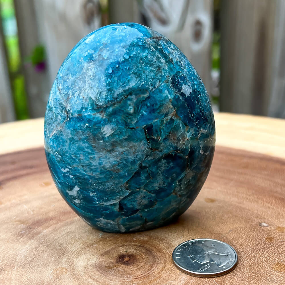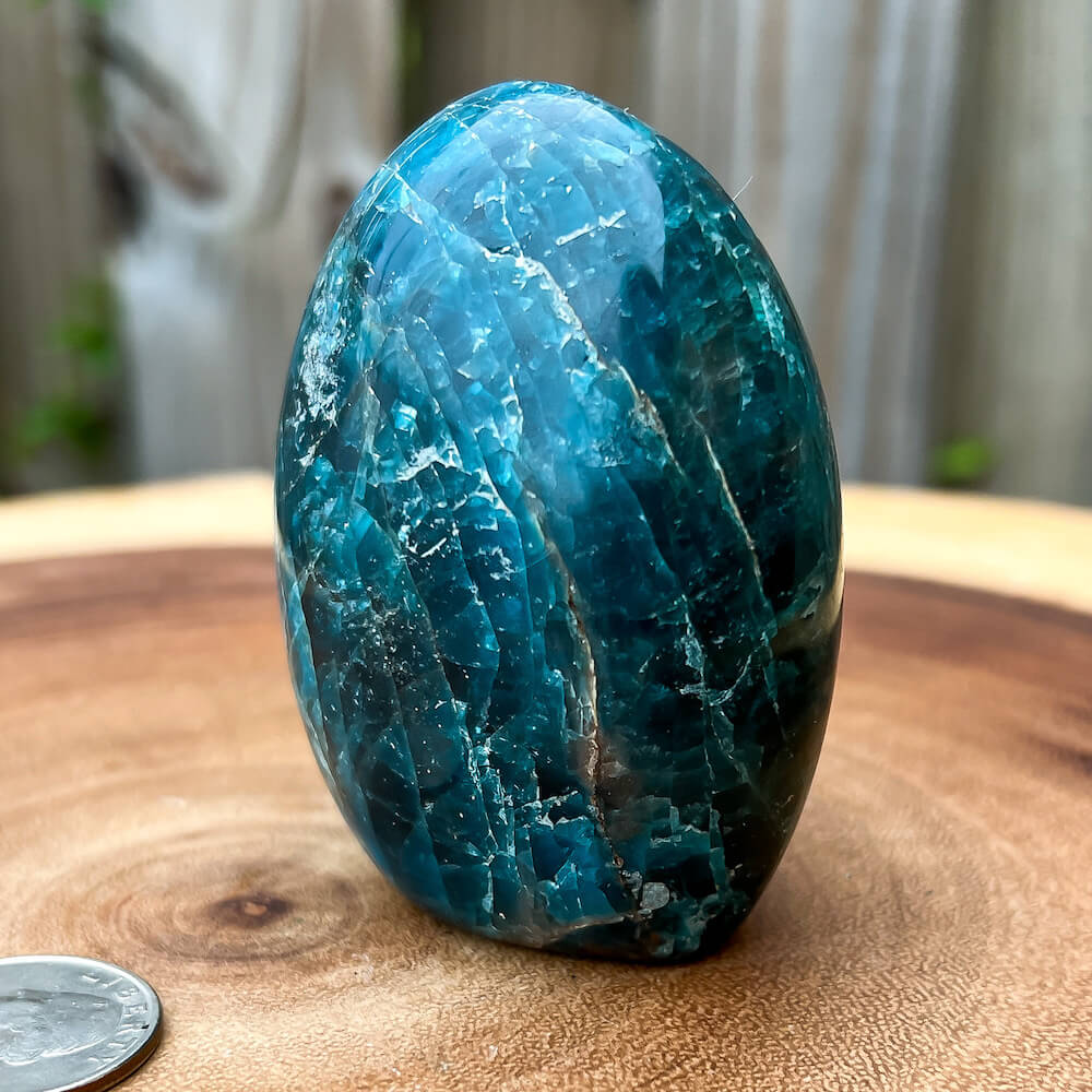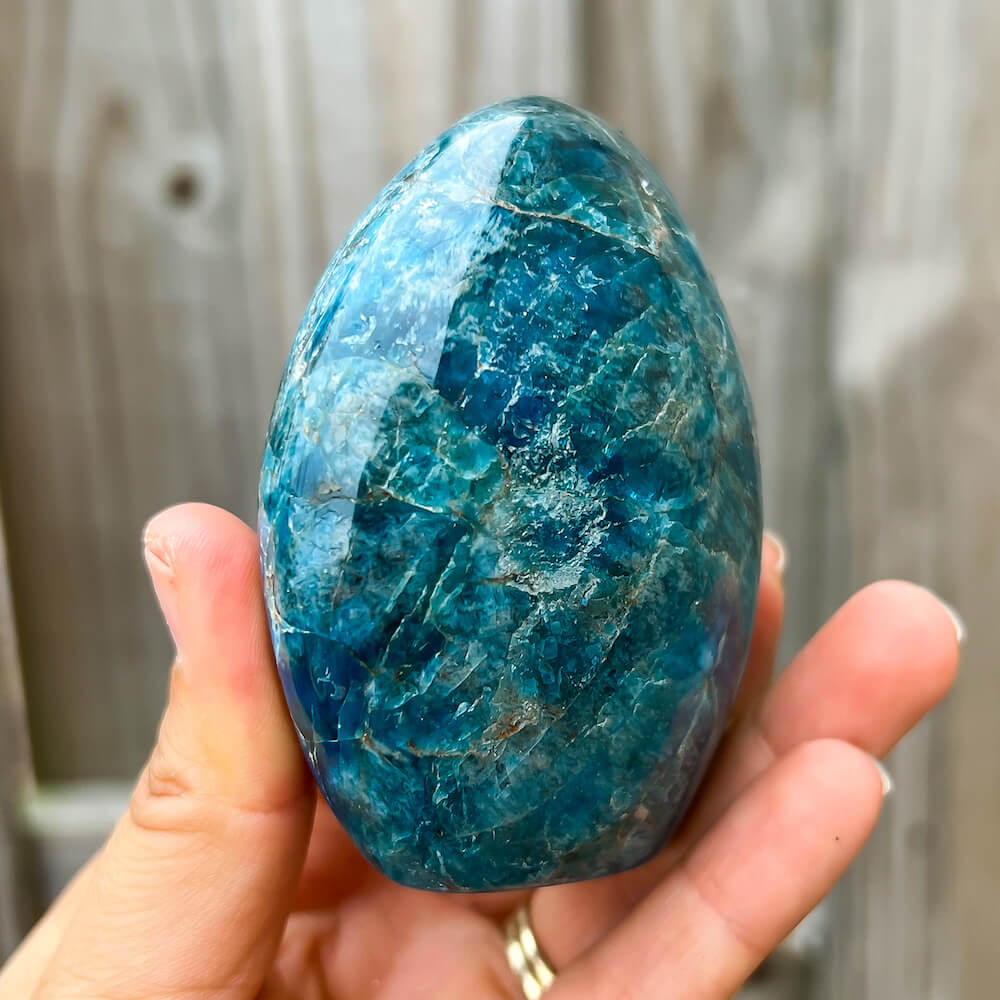 Who couldn’t fall in love with the deep, shimmery, bold, royal blue color of Blue Apatite? Blue Apatite is one of our personal favorite crystals. The bluest, glistening, shimmering hue is intoxicating to look at!! Our Grade A Blue Apatite Freeforms from Madagascar are an excellent addition to your office, living room, shrine, altar, or mantle!