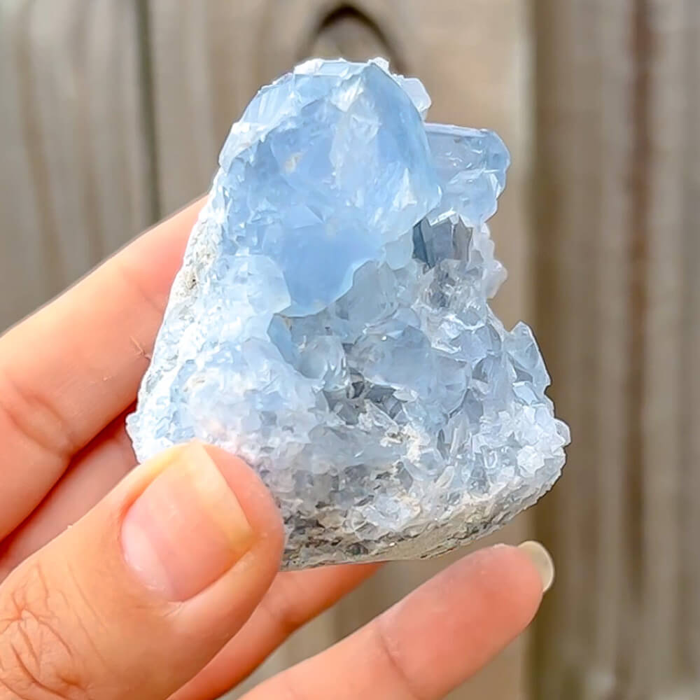 Remember to always charge pieces with celestial energy: the sun or the moon. The sun is good for encouraging life-affirming energy, good for mindfulness practices for daily activities. The moon for emotional intuitive power, good for encouraging emotional intelligence and reminders of thoughtfulness. *Do not leave Celestite in strong or direct sunlight for prolonged periods of time, as this will fade the color *