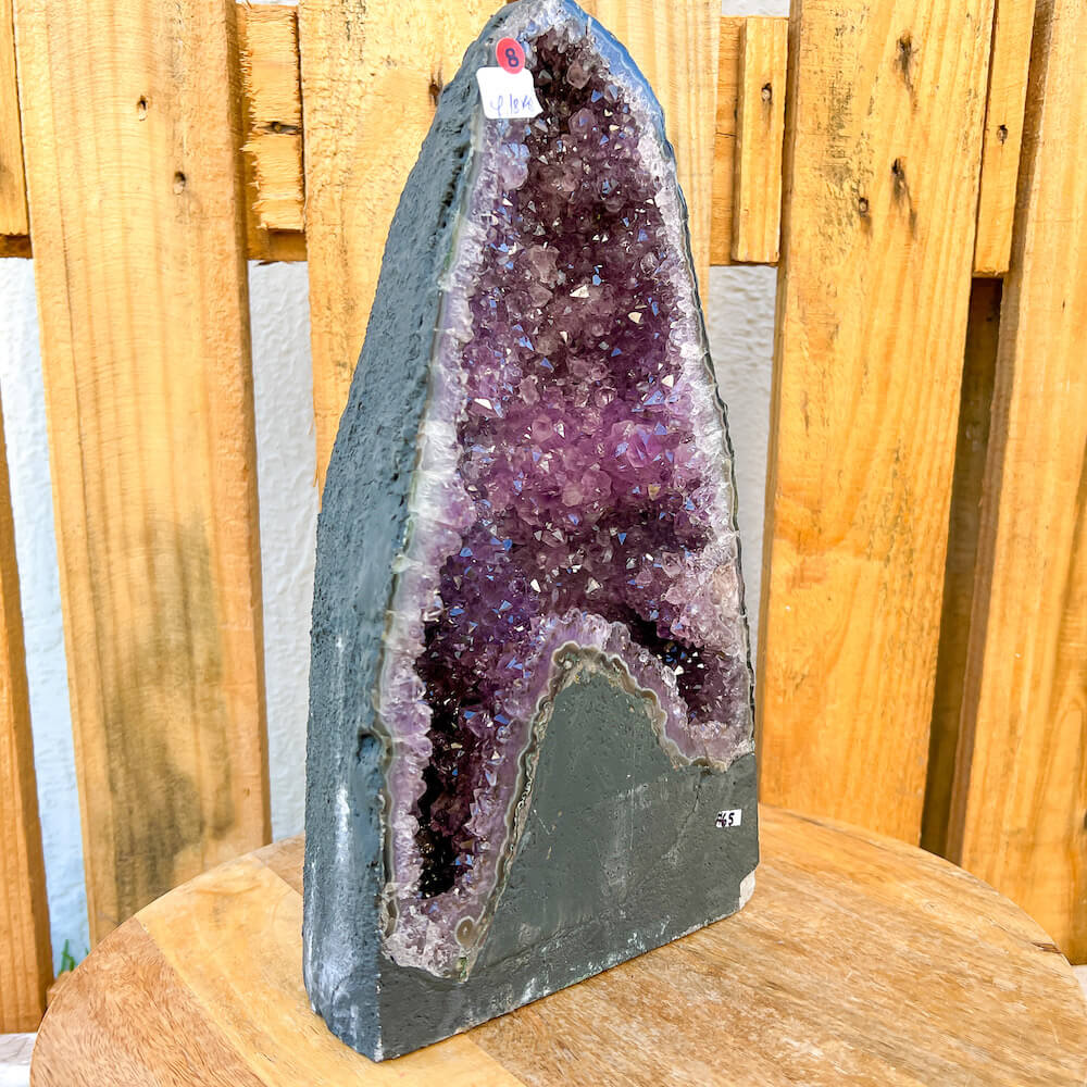 Amethyst is a powerful and protective stone. It guards against psychic attack, transmuting the energy into love and protecting the wearer from all types of harm, including geopathic or electromagnetic stress and ill wishes from others.