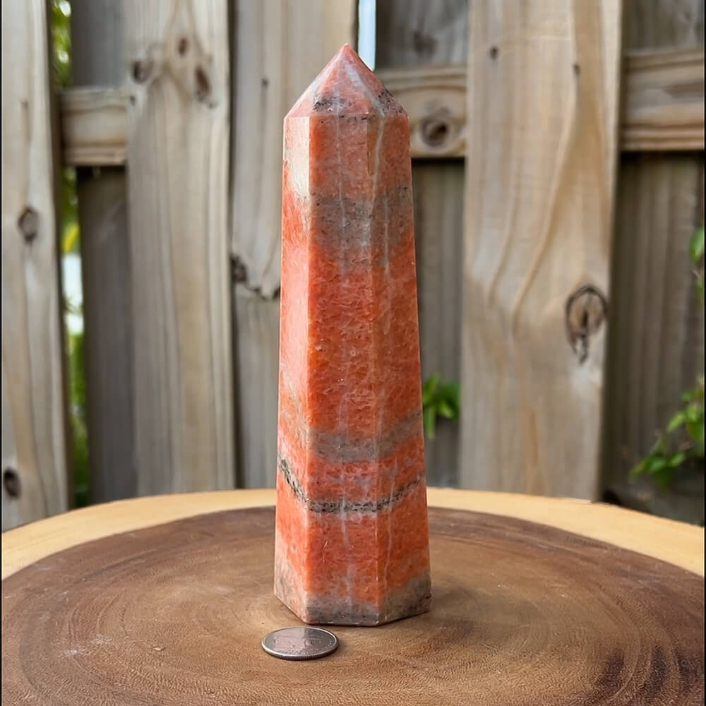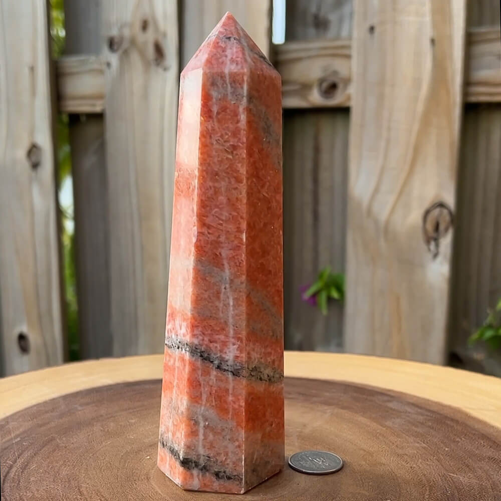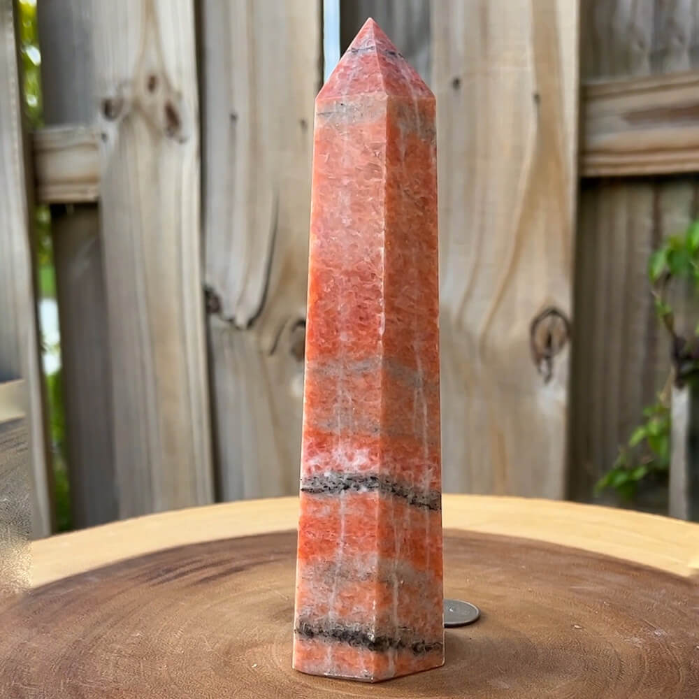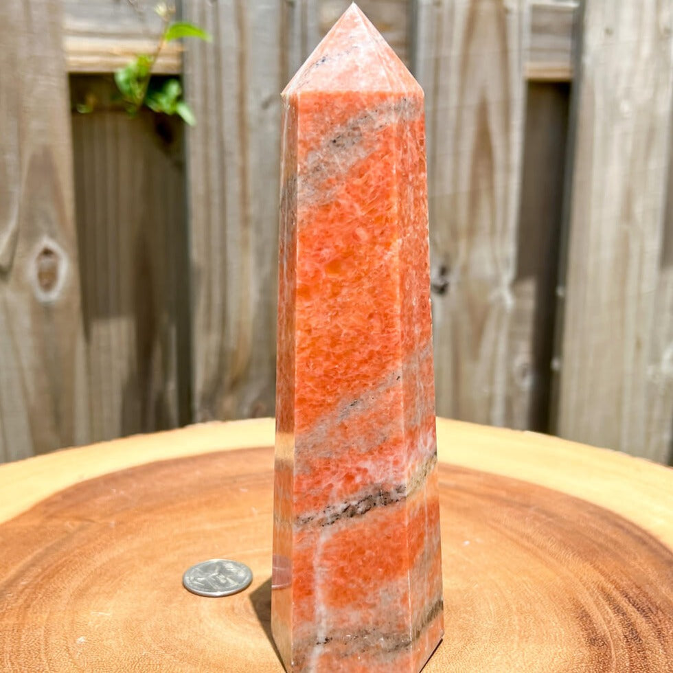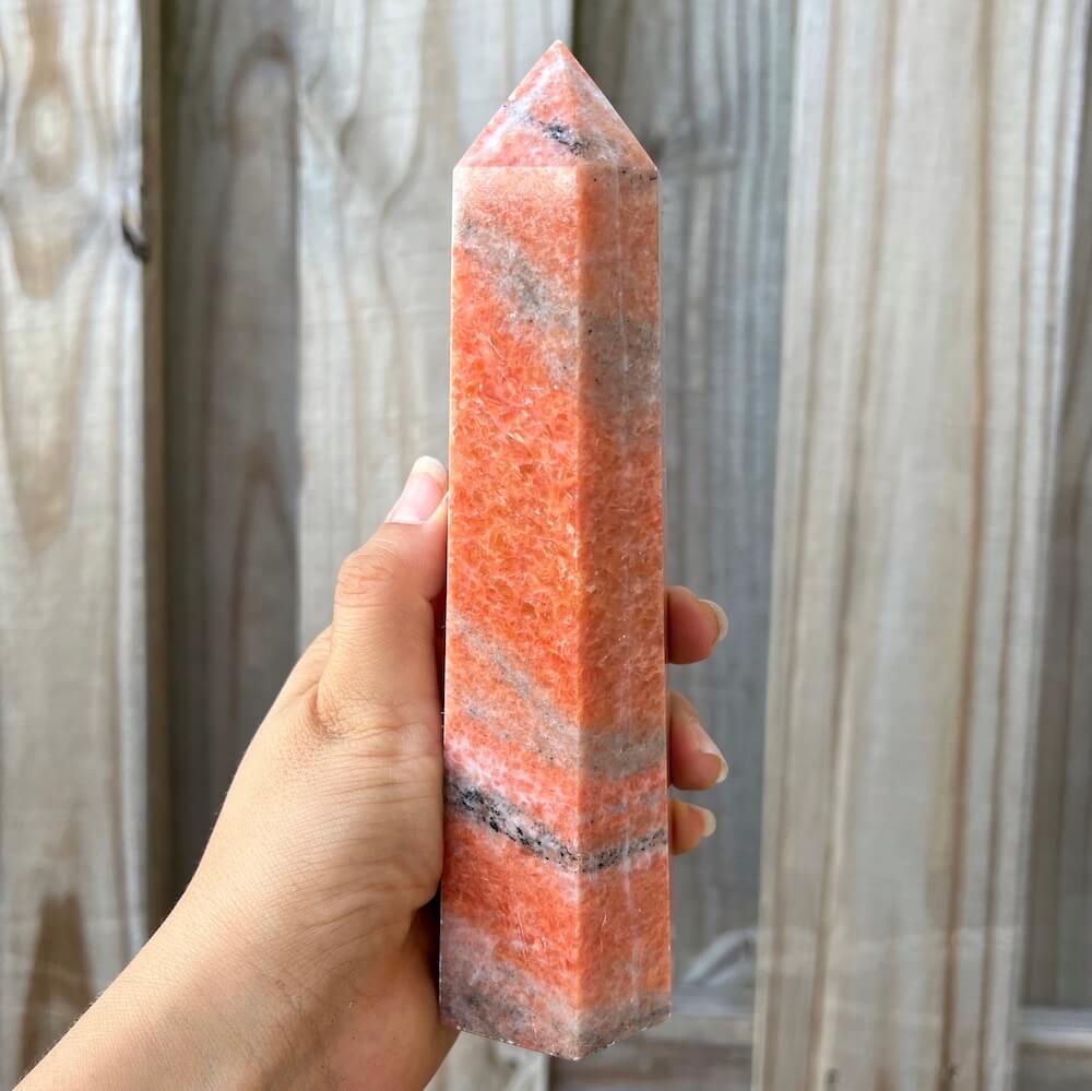 Orange  Calcite is radiating with extraordinary energies of passion, creativity, grounding, and inspiration. This gem is a combination of two powerhouse crystals: Orange calcite and black tourmaline, which makes for a protective yet surprisingly sensual stone.