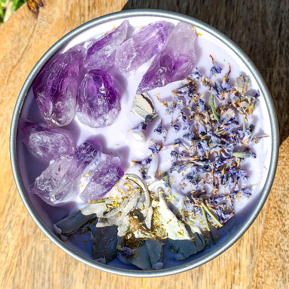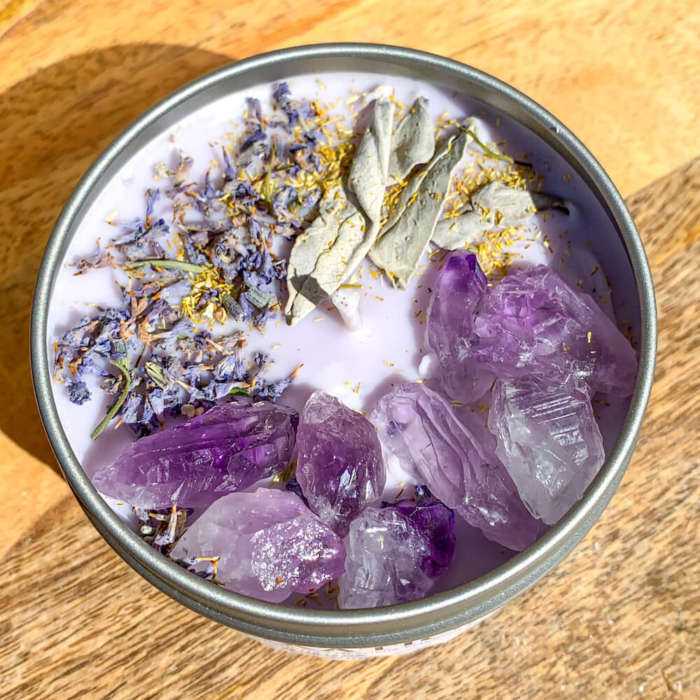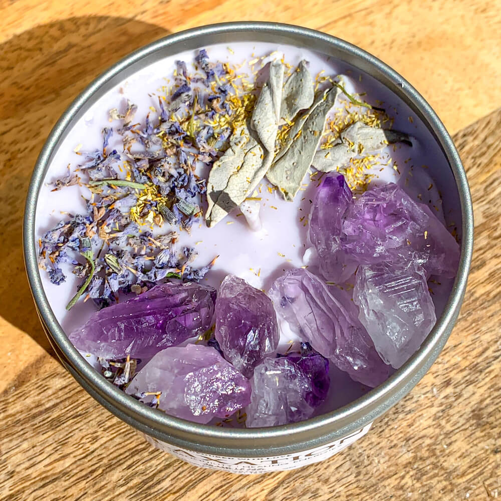 • Made with all-natural ingredients: White Sage and Lavender, Infused With Natural 8 Amethyst Crystals & Herbs/Flowers