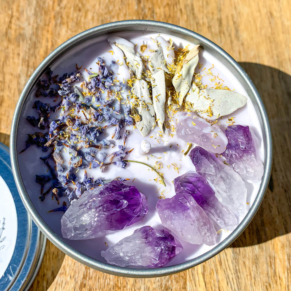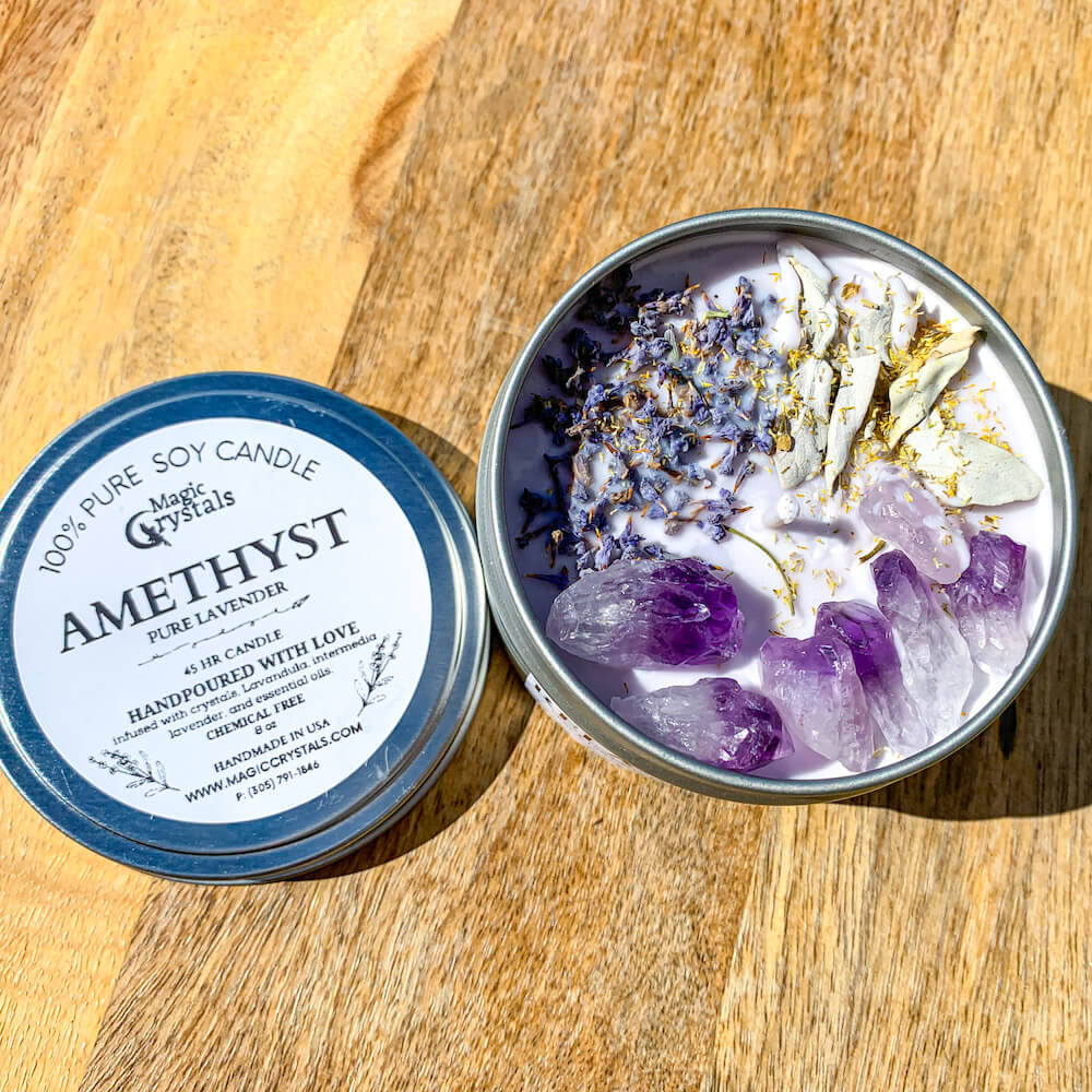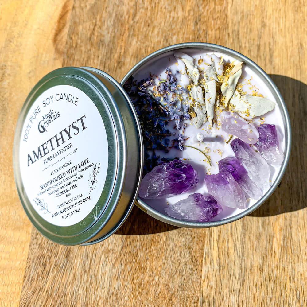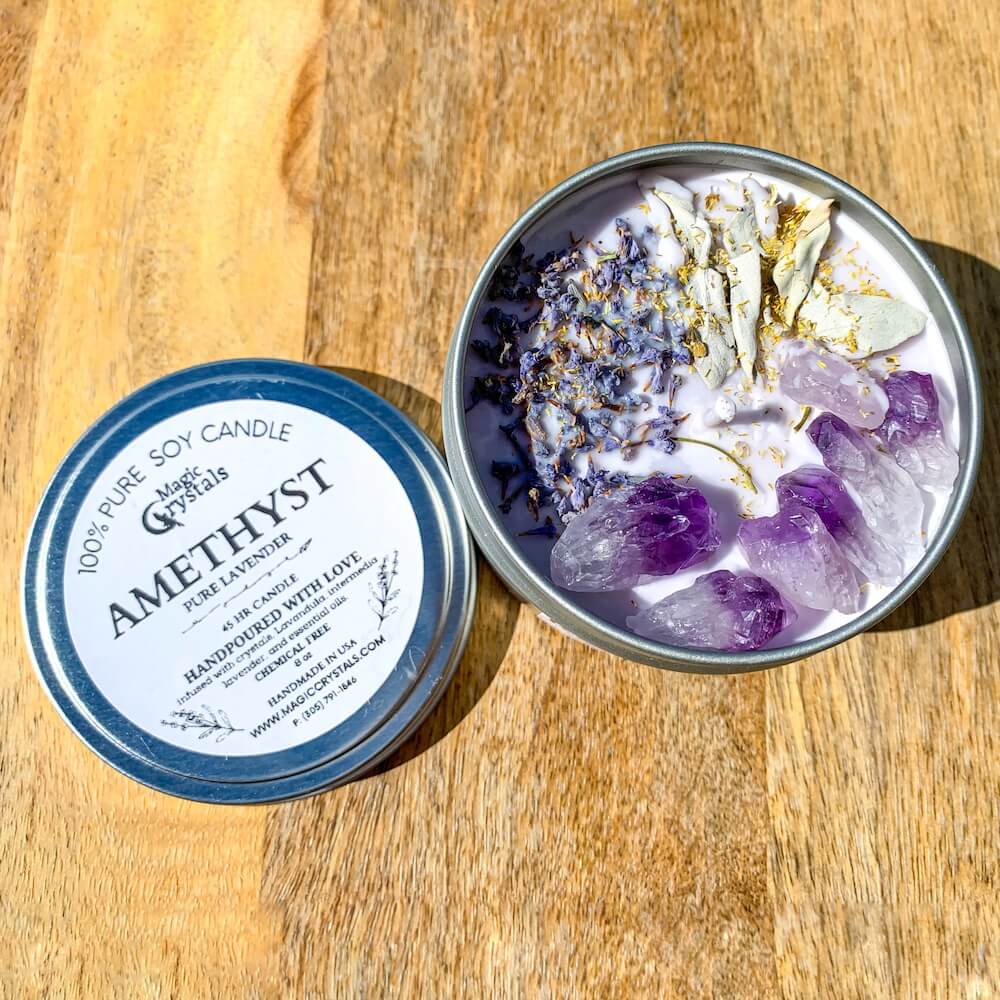 • Made with all-natural ingredients: White Sage and Lavender, Infused With Natural 8 Amethyst Crystals & Herbs/Flowers