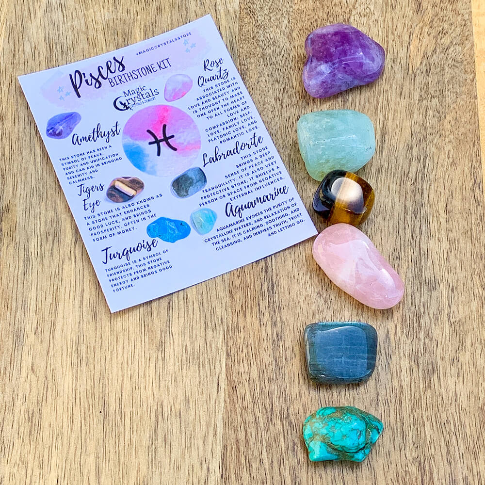 A set of birthstone crystals for the star sign Pisces. This selection of crystals has been hand-selected to blend with and complement the energy and traits of your sign. Celebrate our zodiac crystal sets, designed just for your sign!