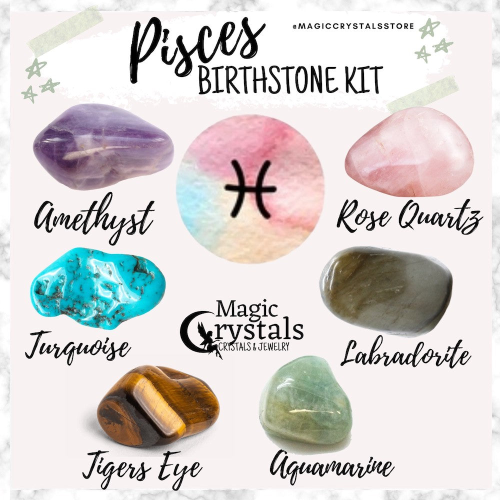 The Pisces Kit, handpicked by Magic Crystals is made up of several uniquely paired gemstones that resonate strongly with the  Pisces ♓️ sign (Feb 19 - Mar 20).j