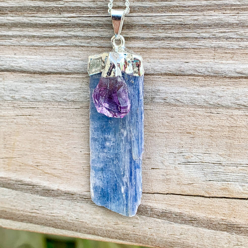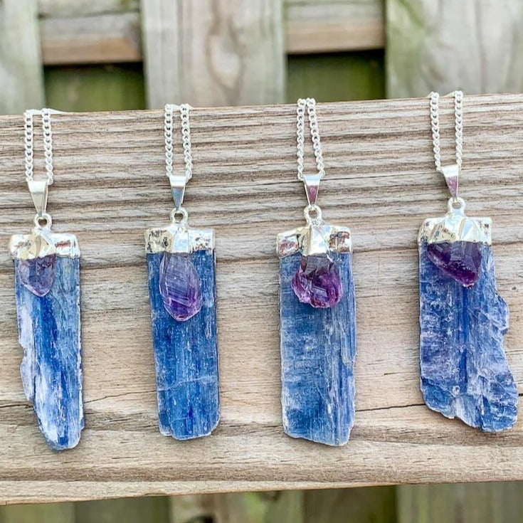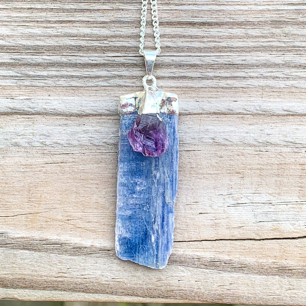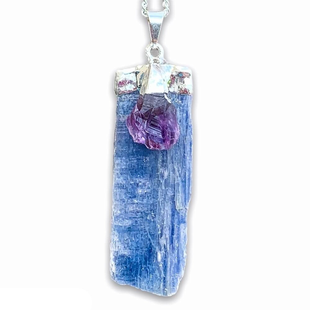 Raw Blue Kyanite Pendant Necklace with Amethyst