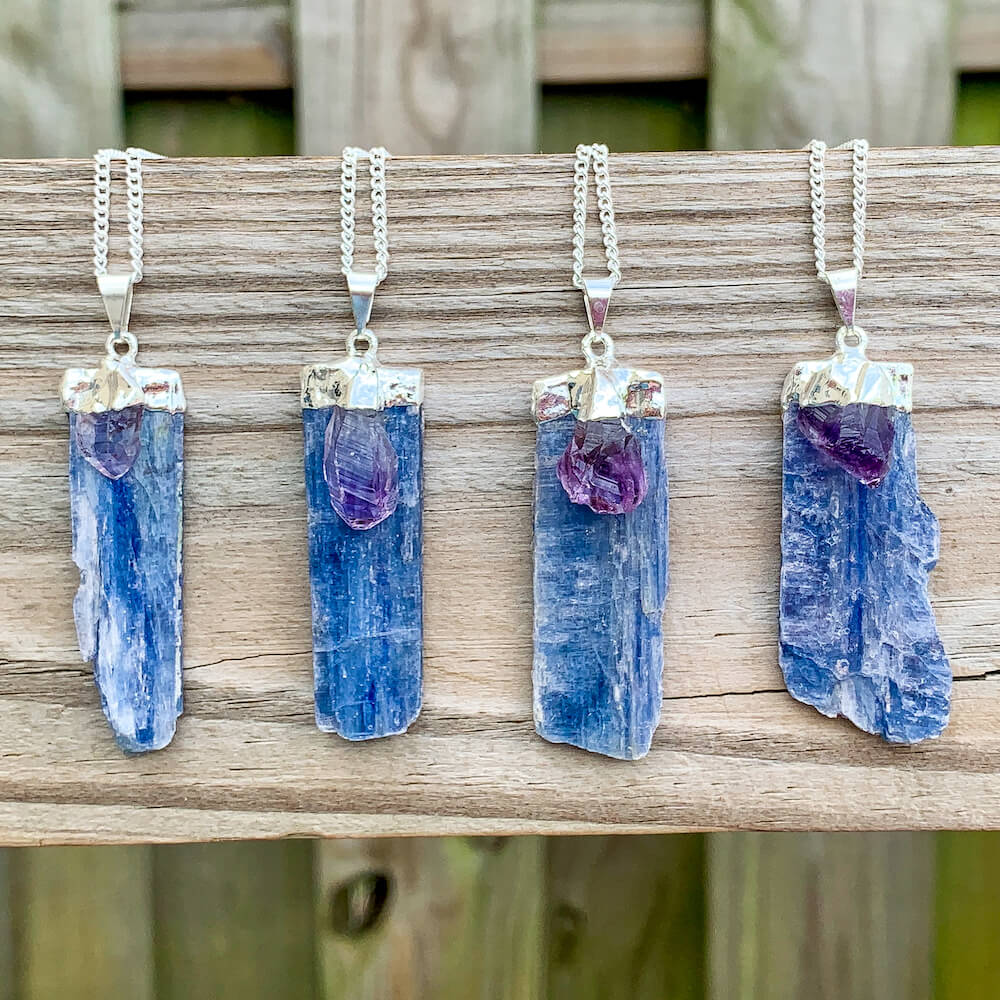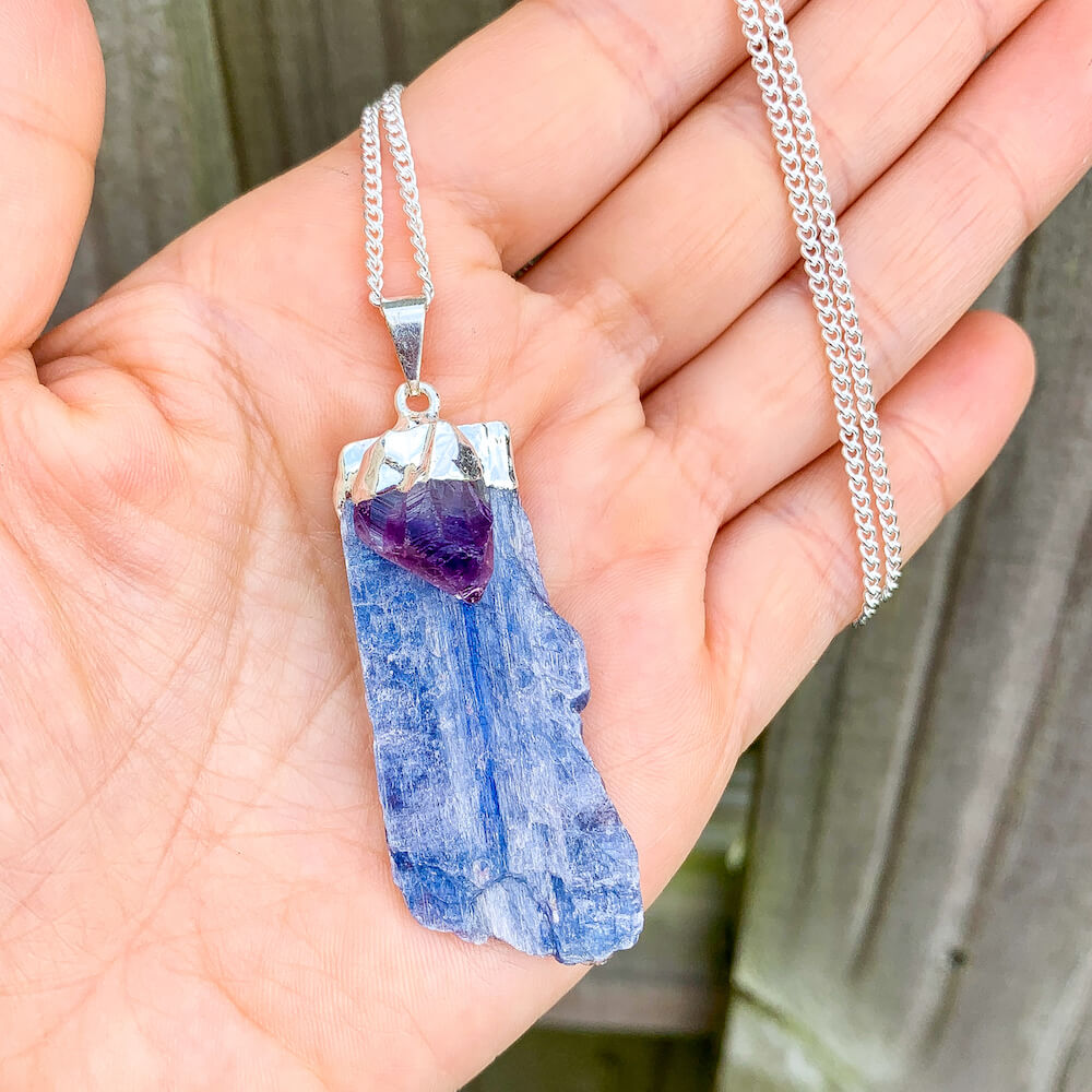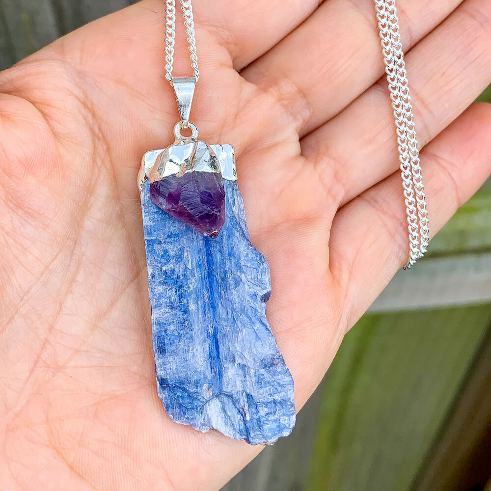 Raw Blue Kyanite Pendant Necklace with Amethyst