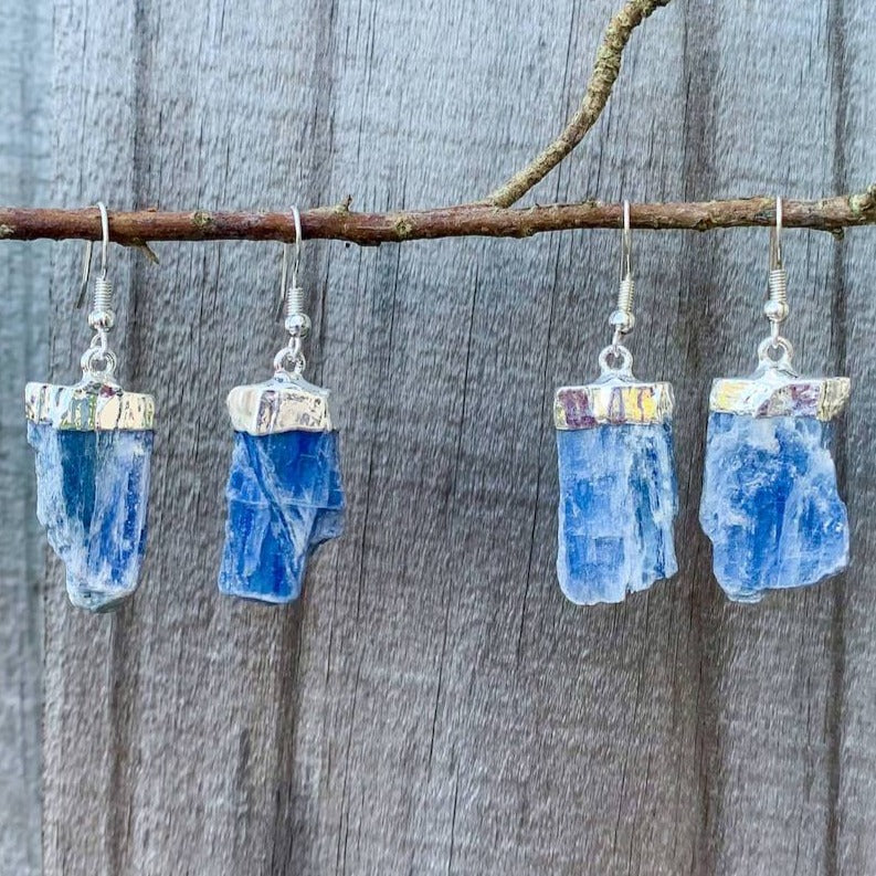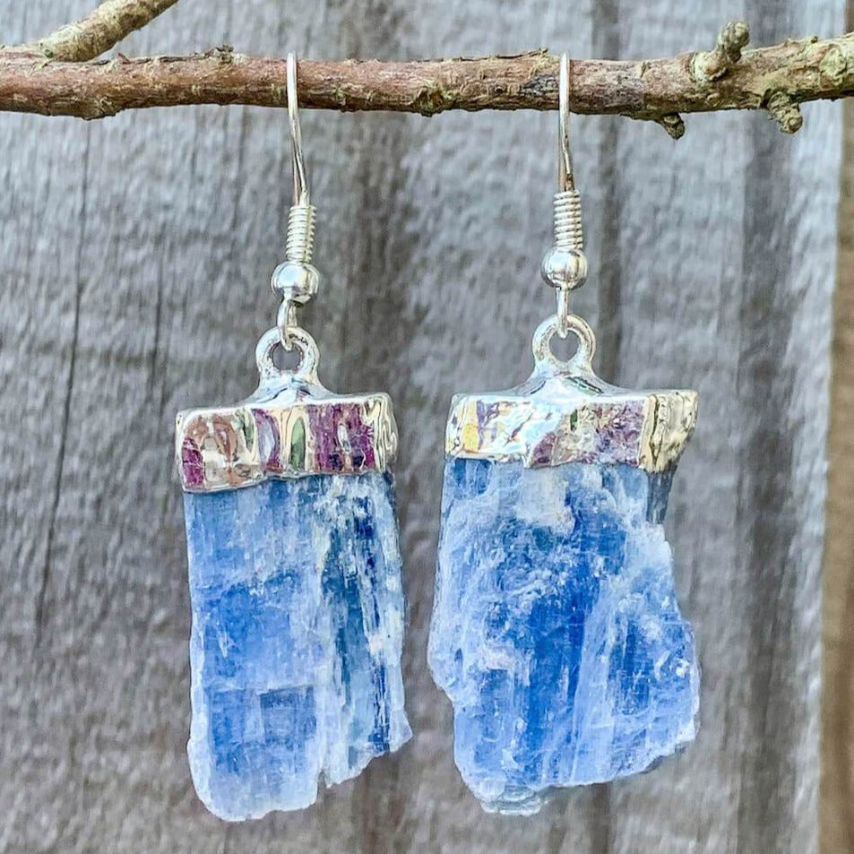 Raw Blue Kyanite Silver Earrings