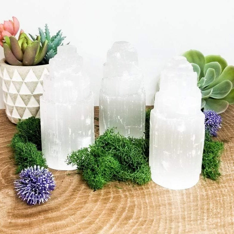 Please note that each selenite tower is as unique in appearance as every one of us. Because all of our gemstones are cut from 100% natural stone, there is always color variation. The actual selenite tower you will receive might not look the same as the one shown in the pictures above, but the color will be similar. We only stock quality gems.