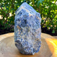 Place Sodalite next to your computer to help clear electromagnetic pollution. Sodalite works with the Throat and Third-Eye Chakras to help and guide one on their spiritual path by opening a window into the subconscious mind, pulling subtle images into the conscious mind. Sodalite can also be an aid to those studying symbolism and its role in the greater scheme, by helping one to become aware of the patterns that can occur over the course of one's life, and their meanings and purposes.