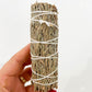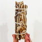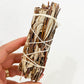 White Sage SmudgeThe most commonly used smudge is California White Sage because it burns evenly and consistently and is said to have the best results in spiritually cleansing a space. Light the end of the smudge stick with a lighter, candle, or matches then blow on until fire is extinguished. It will then begin to smoke and smolder. Hold over a firesafe dish and carrying through the house.