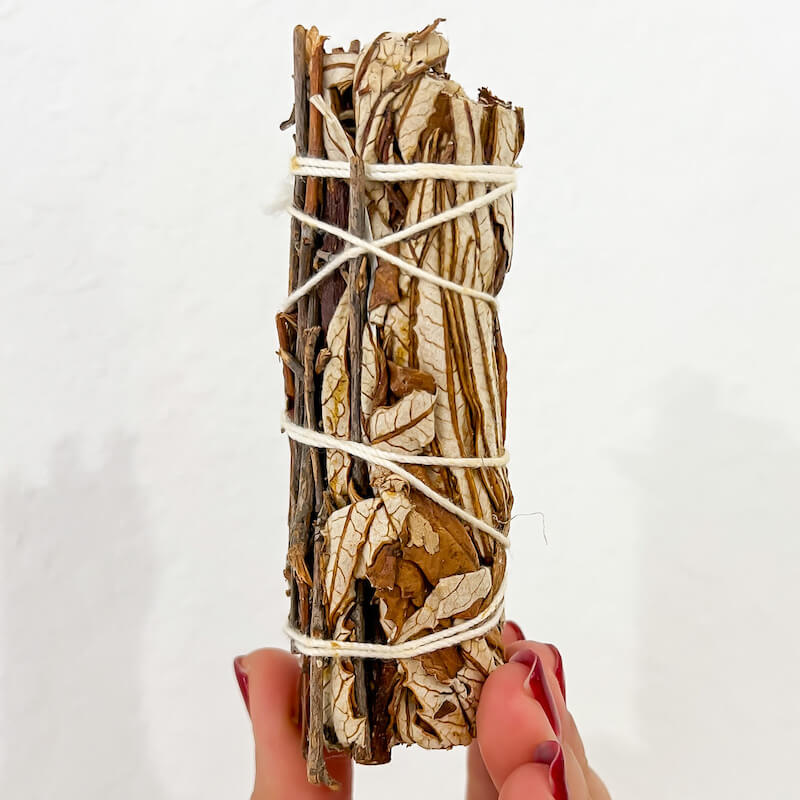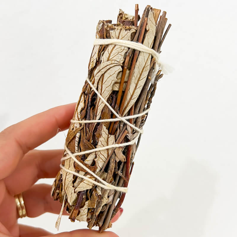 Yerba Santa Smudge: Yerba Santa is known as a holy herb. It is traditionally used for protection and setting boundaries. It is also used to promote love, growth, empowerment, purification, and beauty. It is particularly useful for releasing emotional pain that is stored in the heart. It has an uplifting scent that will help you feel calm and serene.