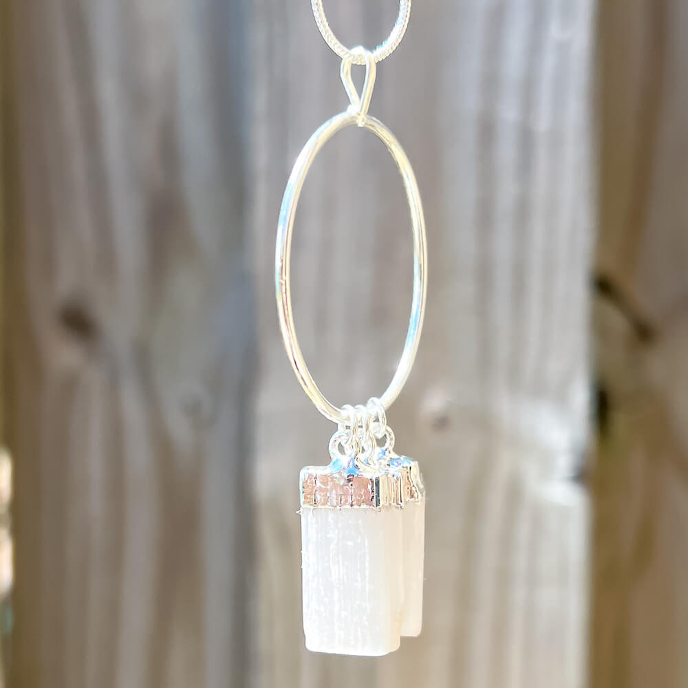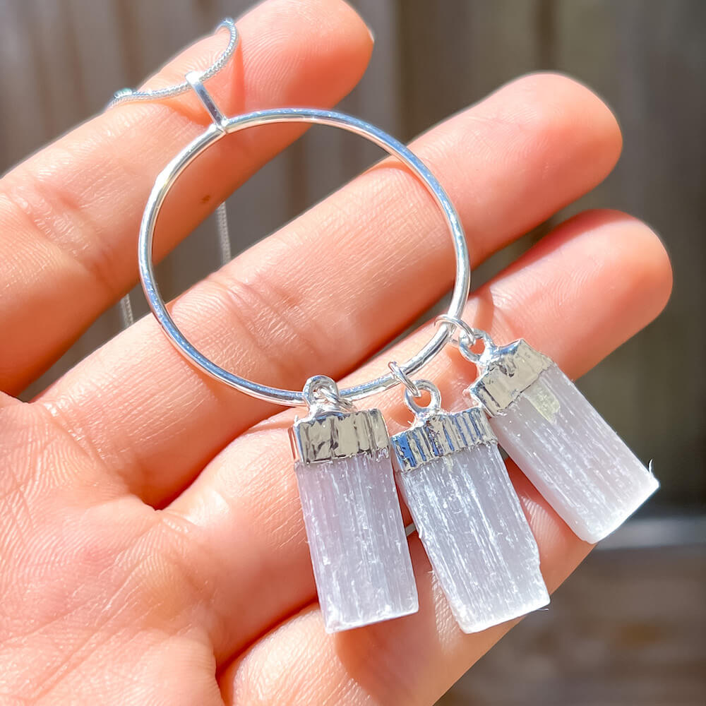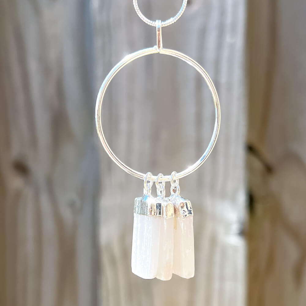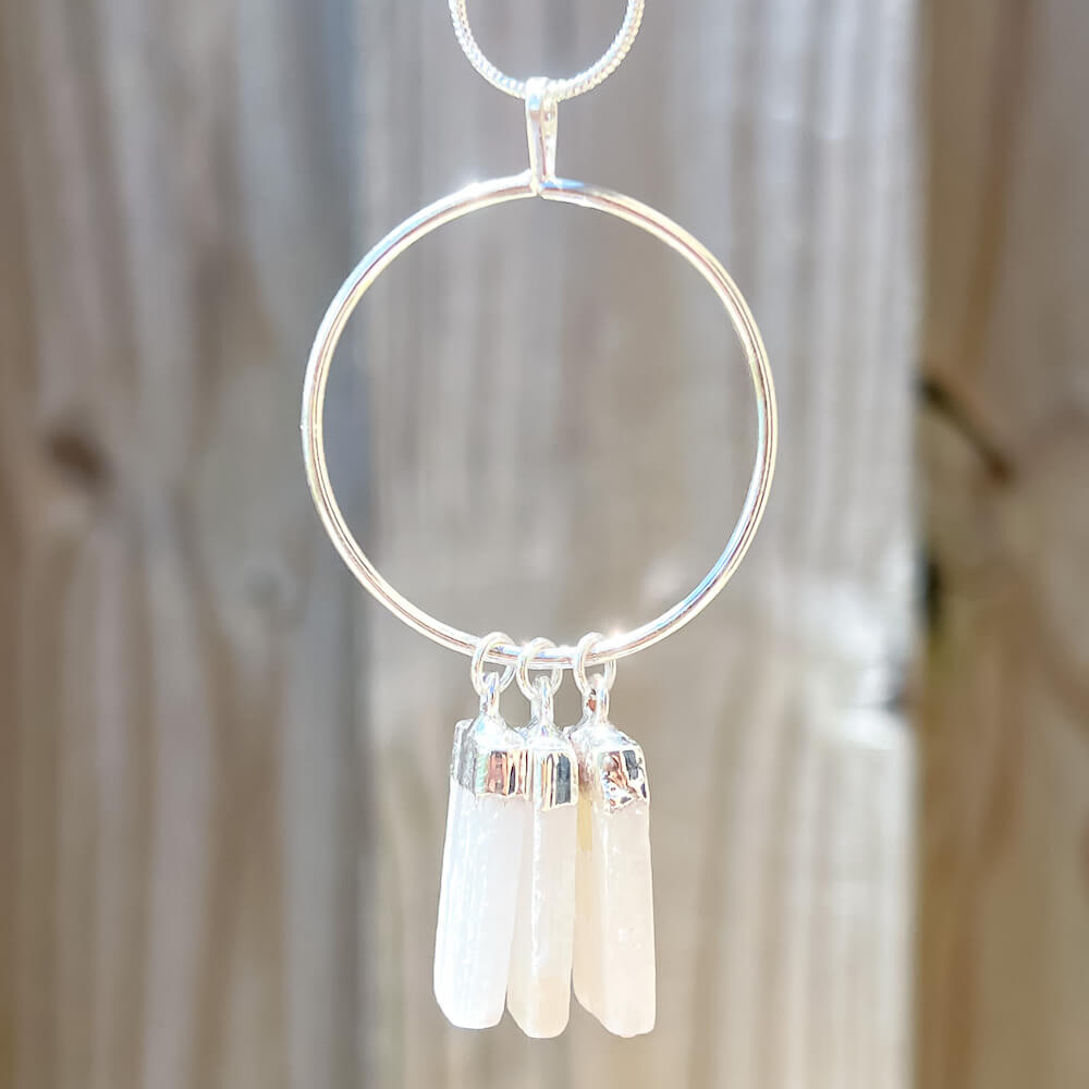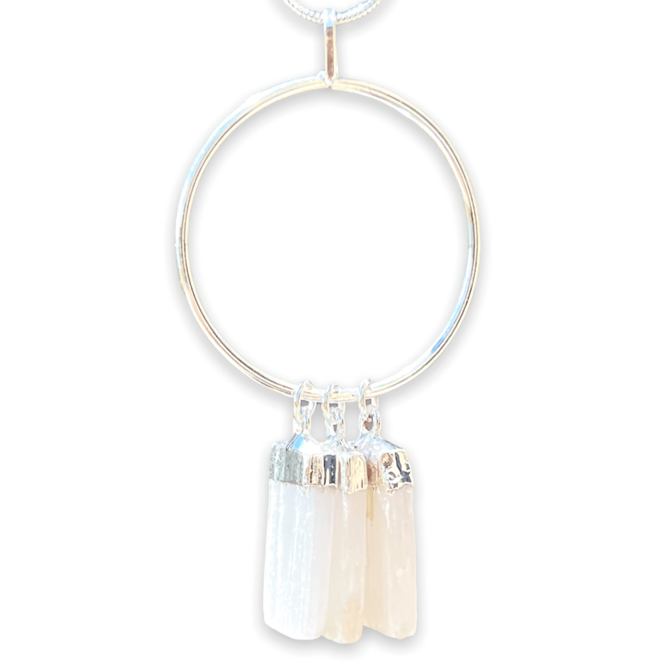 Triple Selenite Pendant Necklace