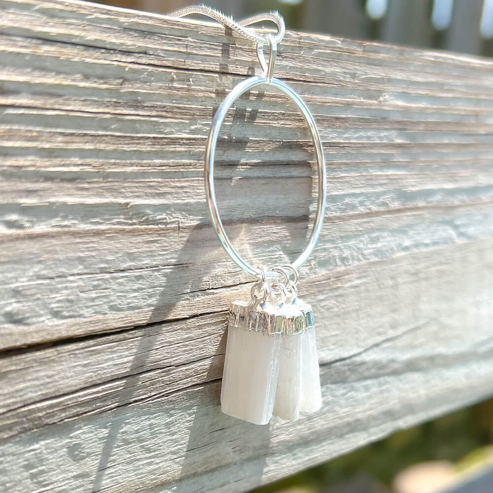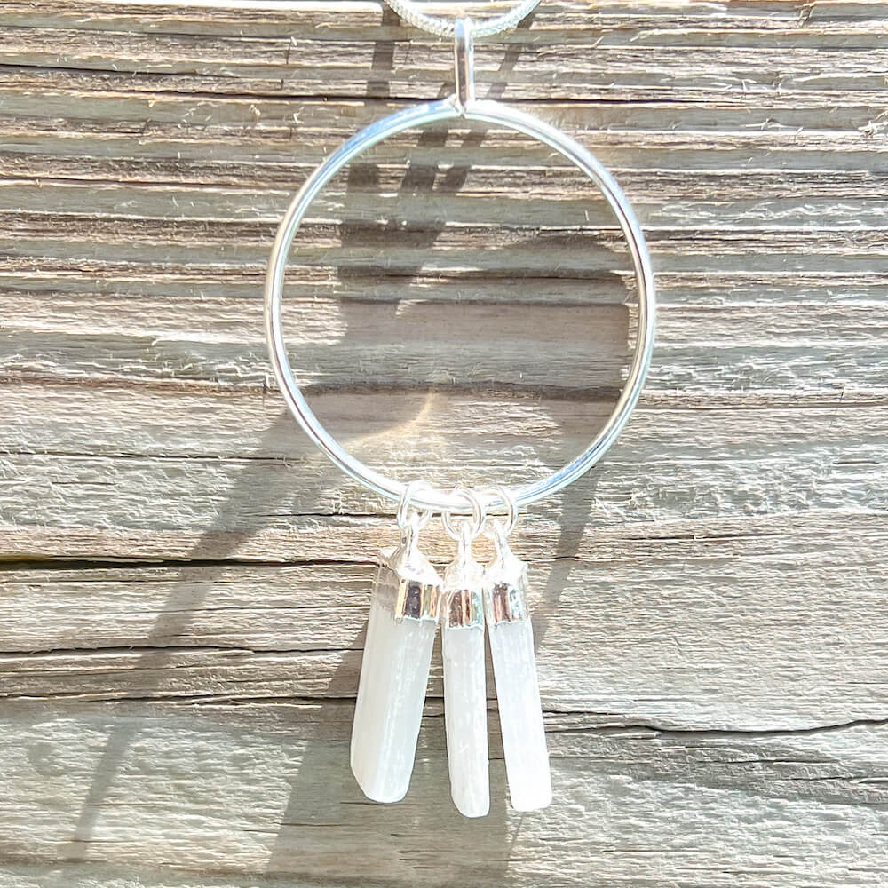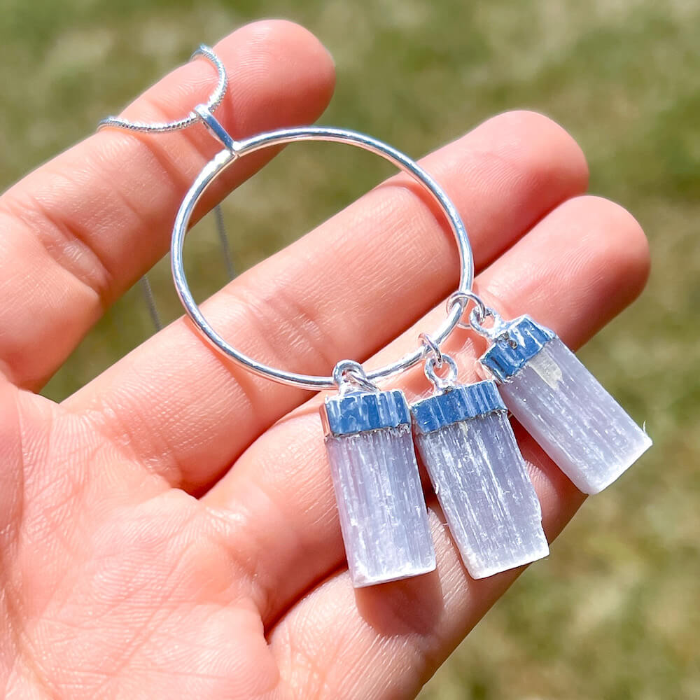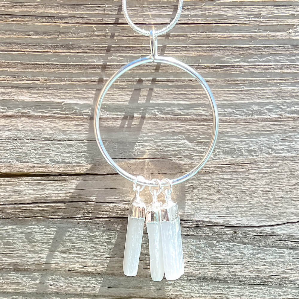 Triple Selenite Pendant Necklace