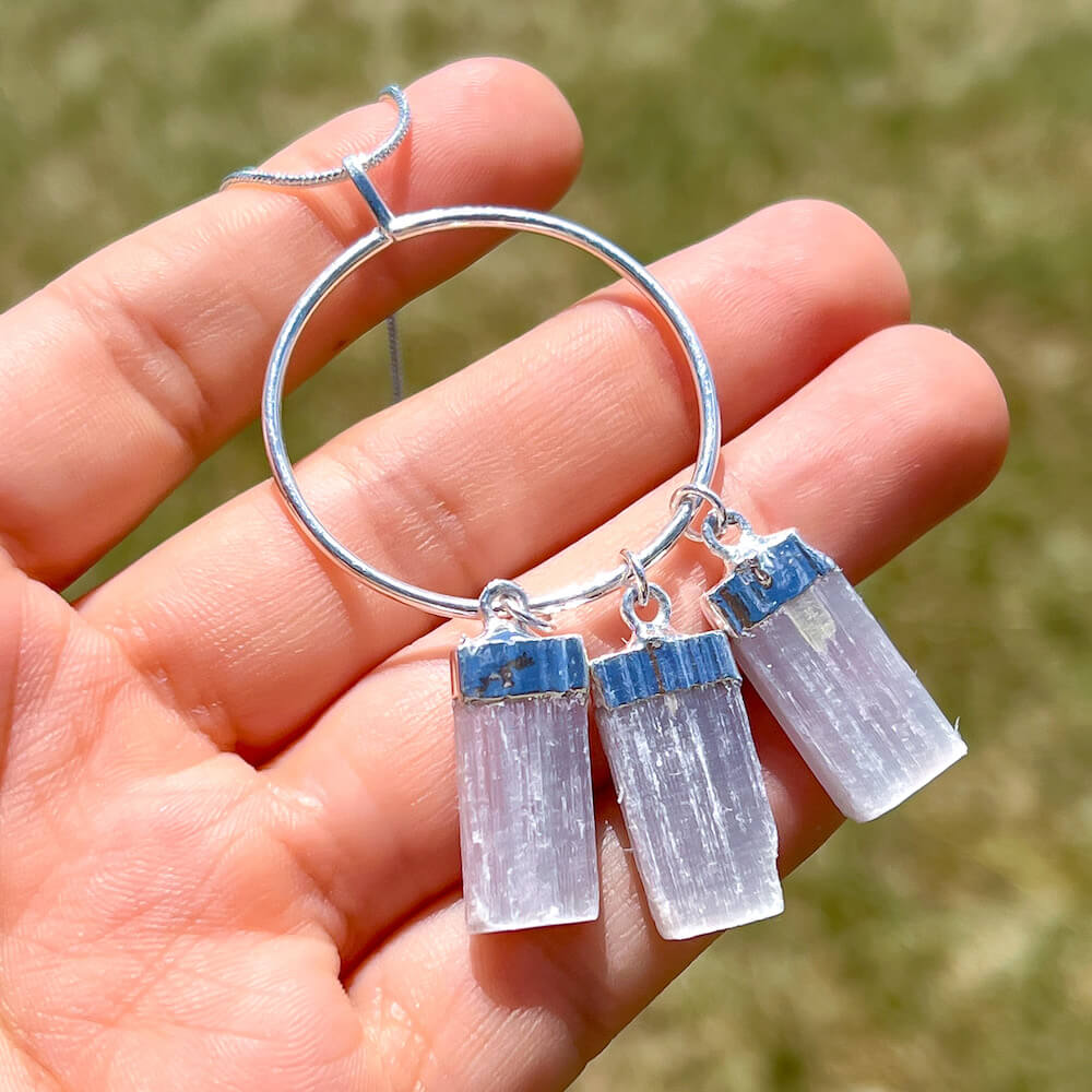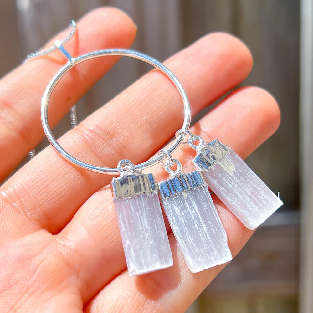 - Authentic Selenite Stone dipped in Sterling Silver